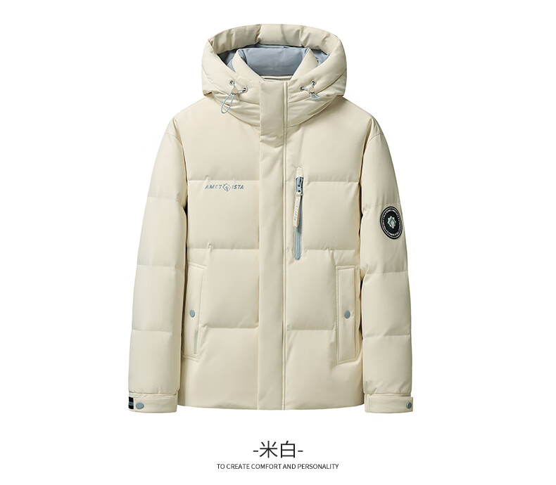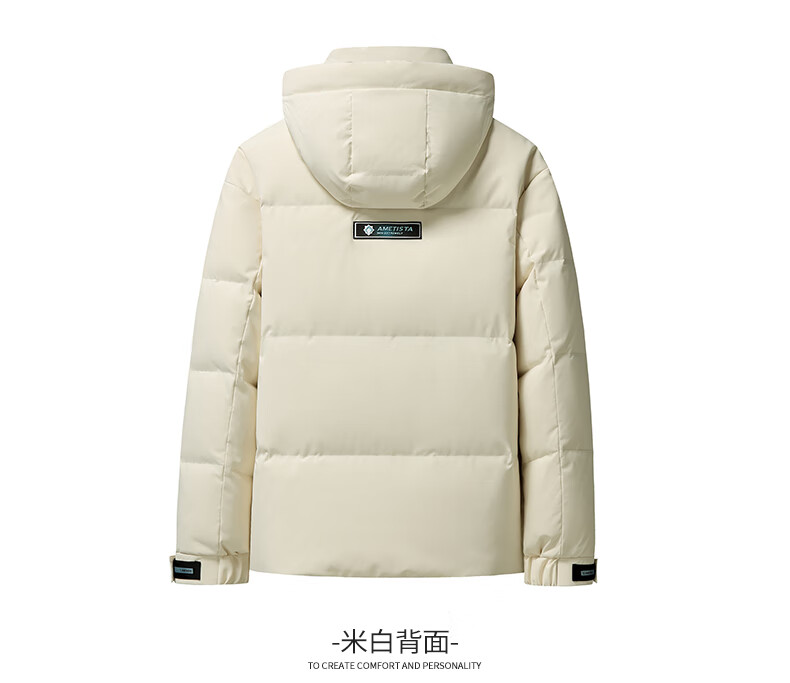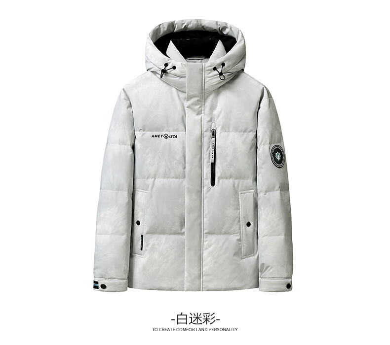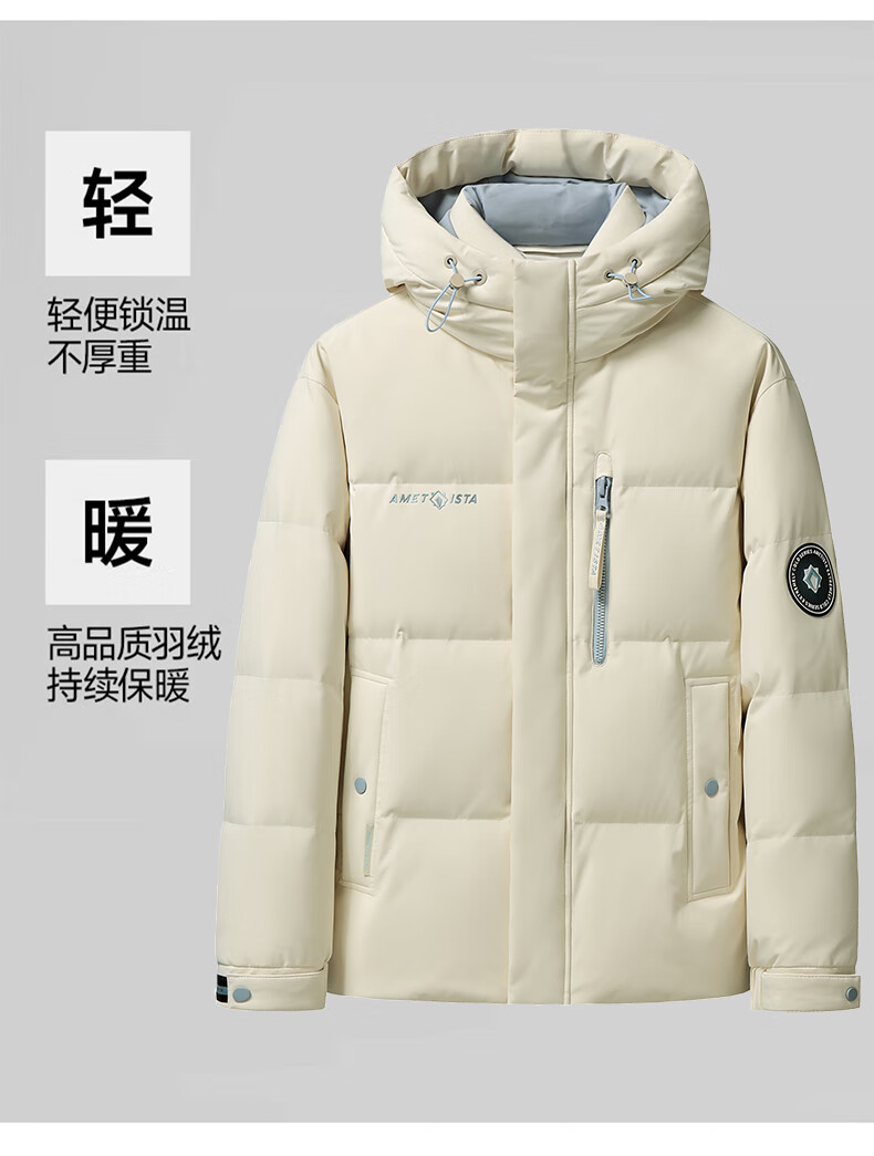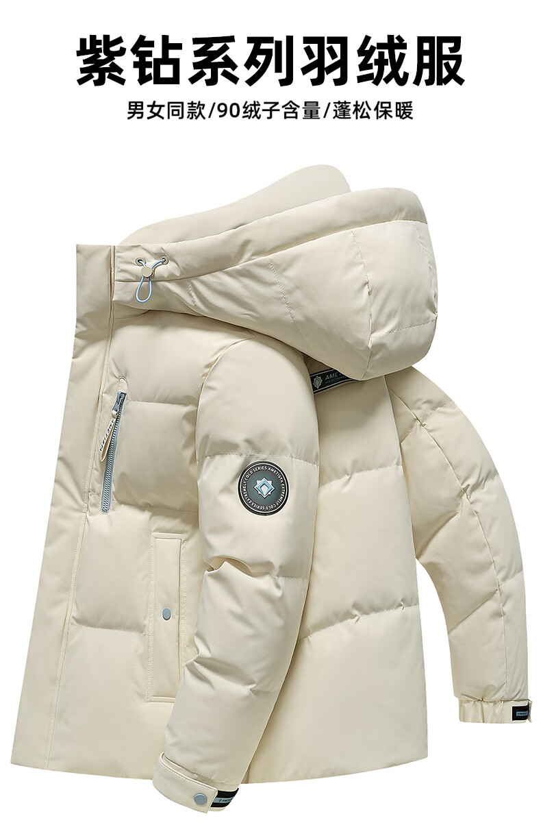 鸭鸭(YAYA)紫钻系列羽绒服男士短款冬季新款户外工装加厚防寒服迷彩青年外套 米白 L (建议130-150斤)