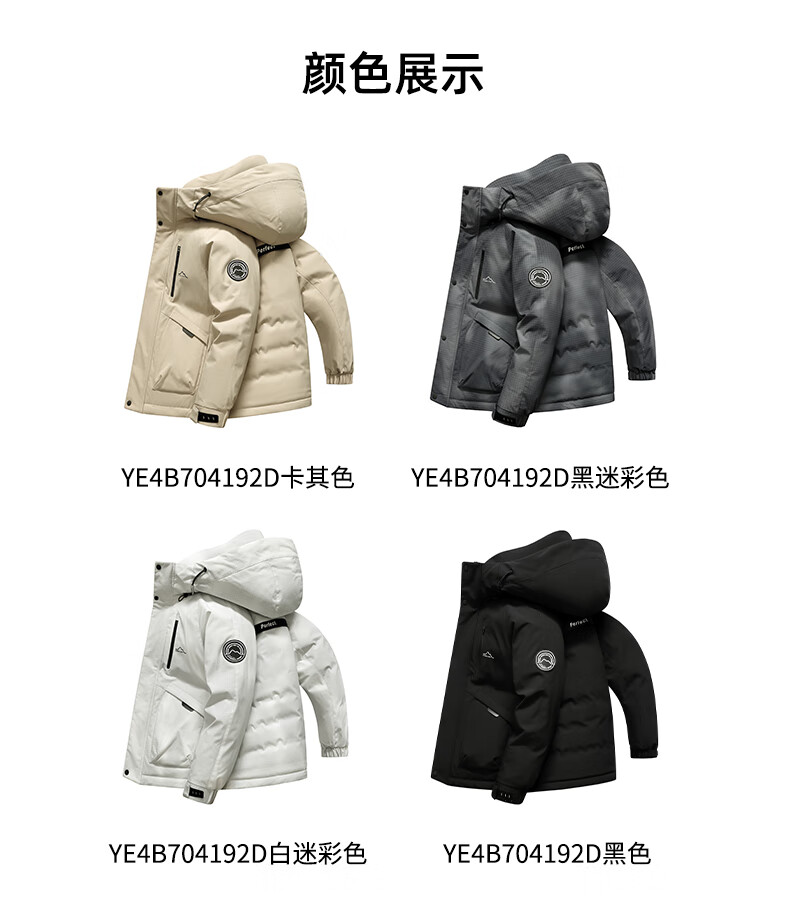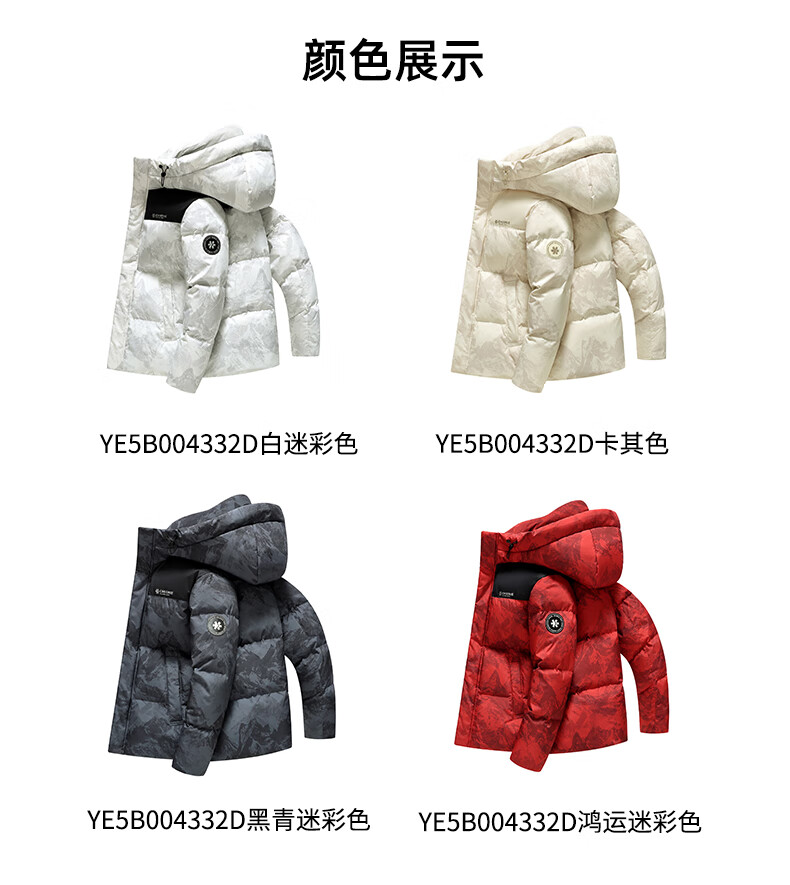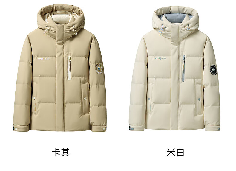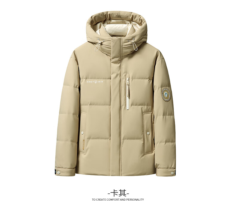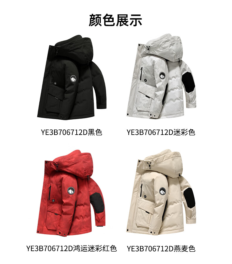 鸭鸭(YAYA)紫钻系列羽绒服男士短款冬季新款户外工装加厚防寒服迷彩青年外套 米白 L (建议130-150斤)