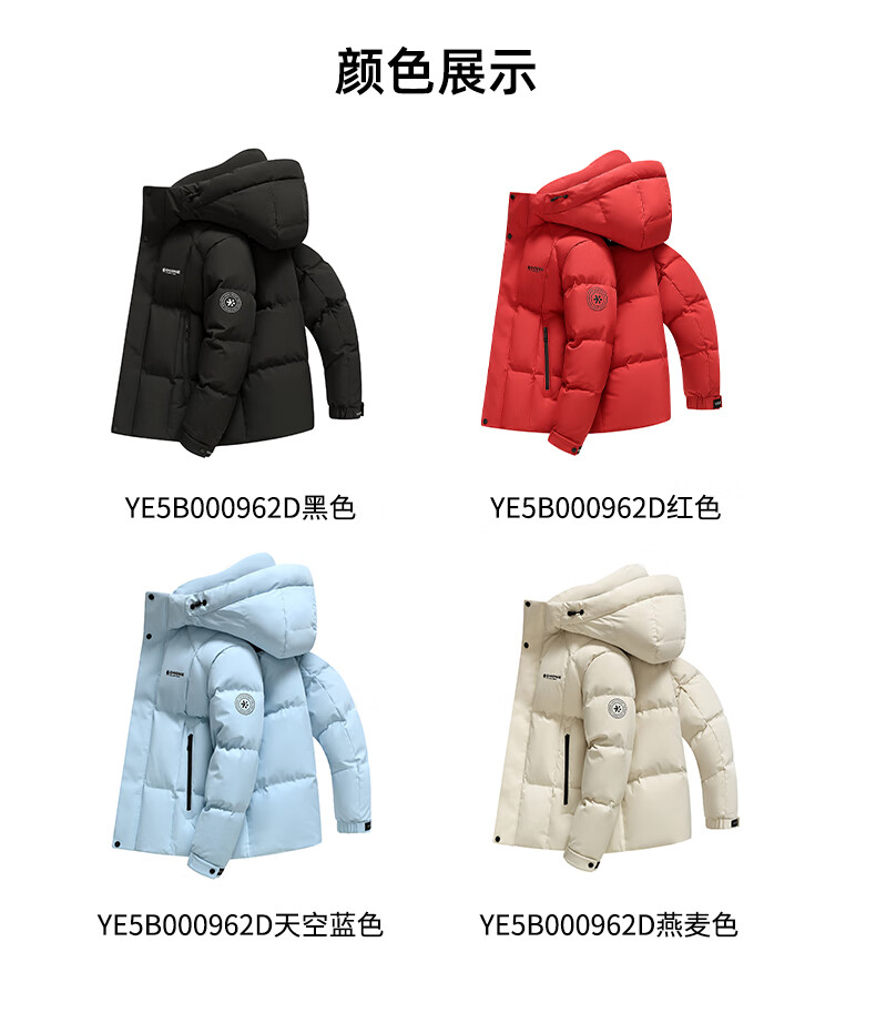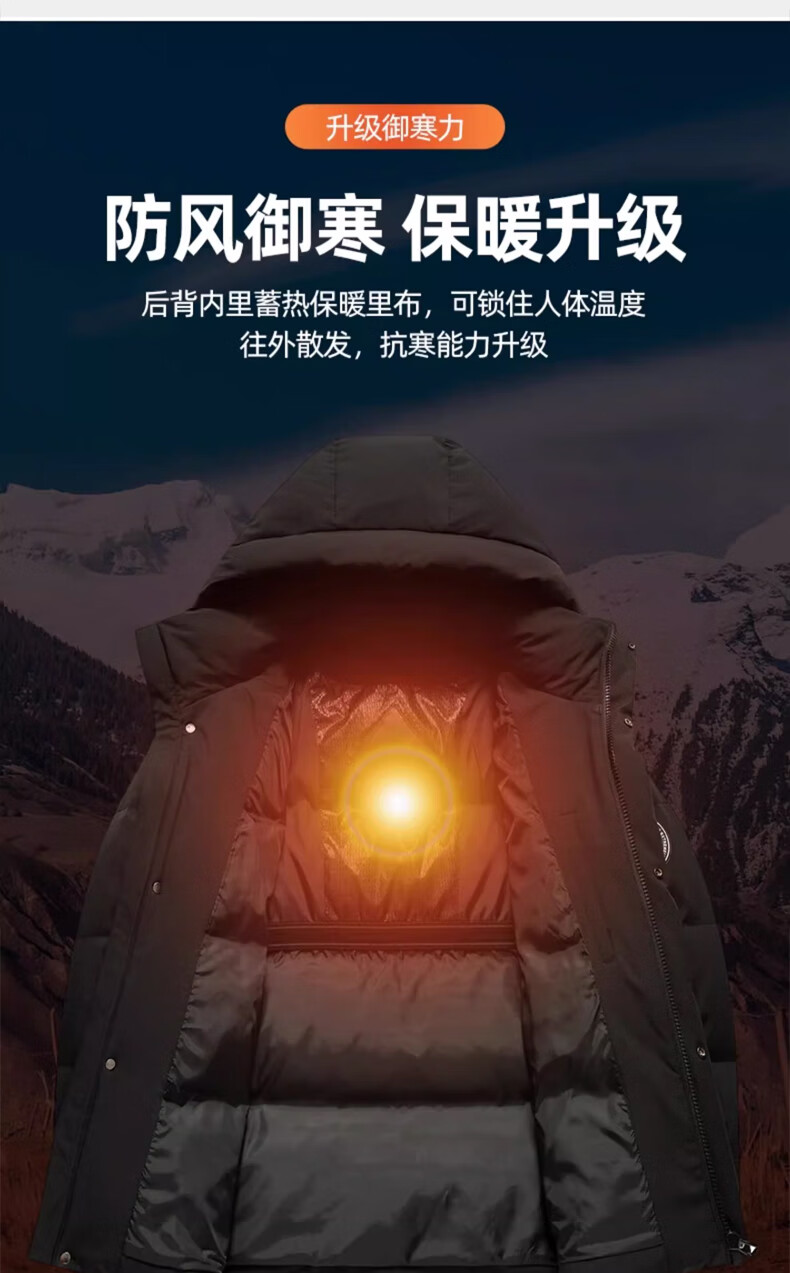 啄木鸟(TUCANO)羽绒服男款外套冬季加厚保暖防寒休闲连帽面包服上衣 灰白 XL