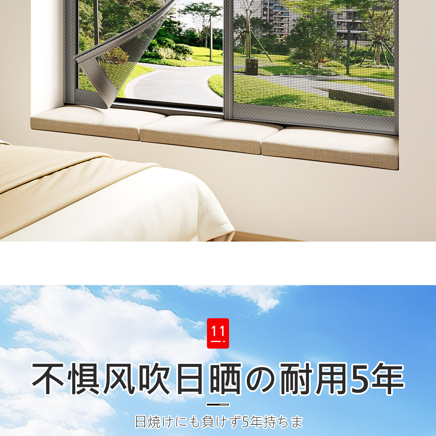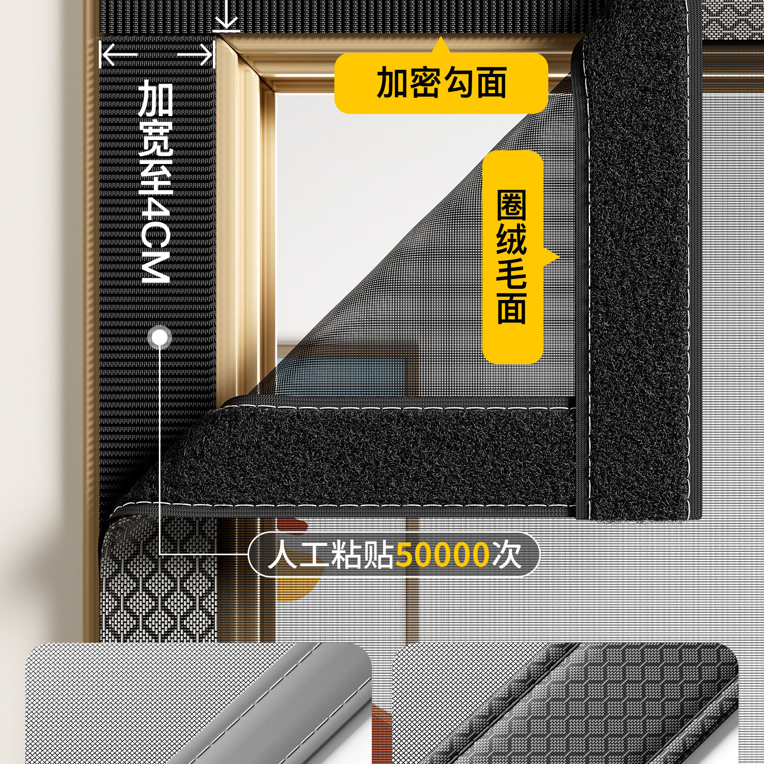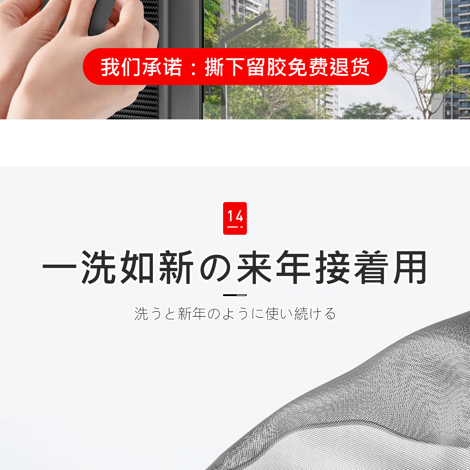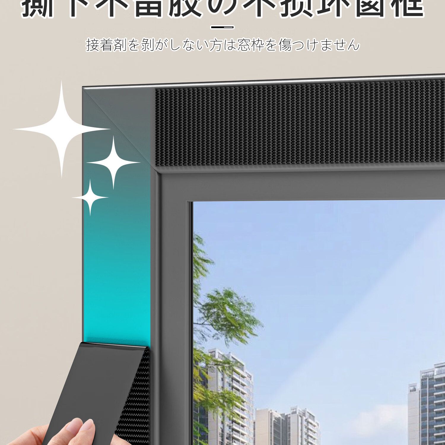 吱凡日本防蚊纱窗网家用窗纱网隐形自粘式窗户定制魔术贴自装阳台纱网 星盾纱-月影灰【免打孔安装 | 不伤门框墙面】 80x100cm