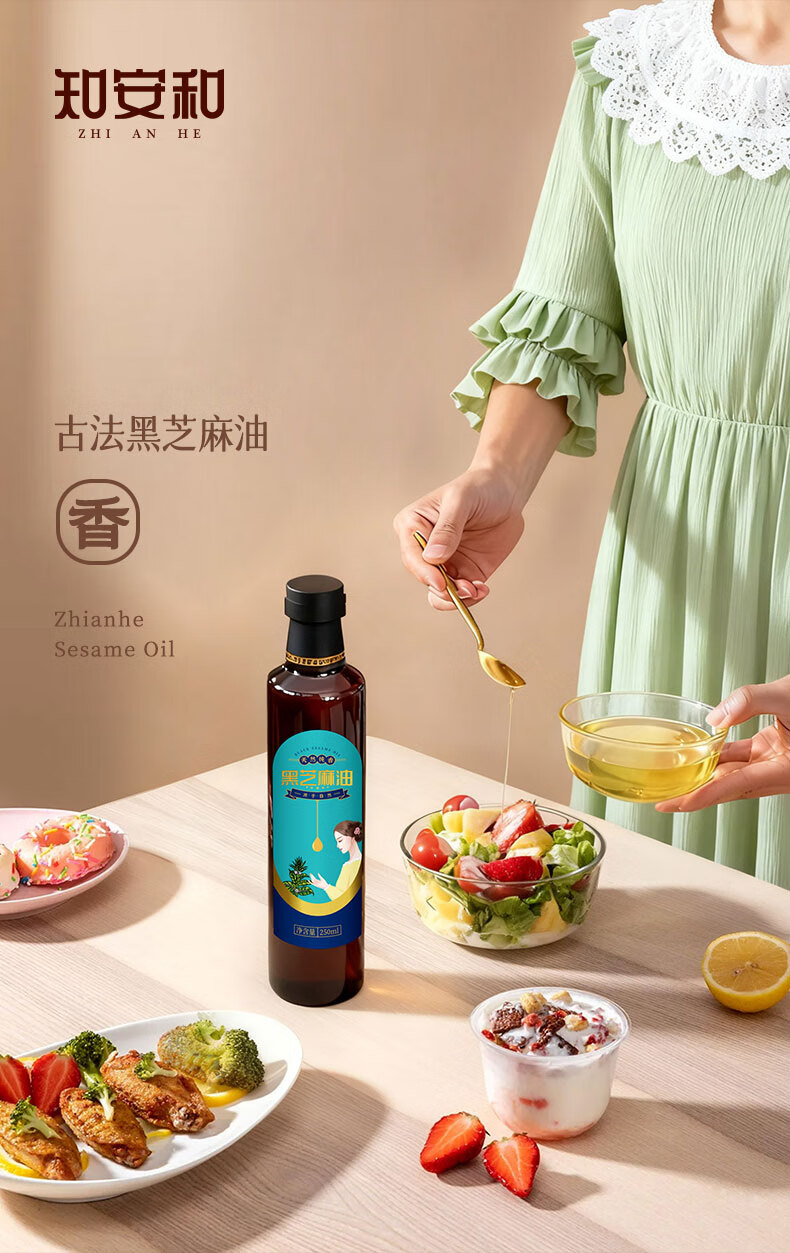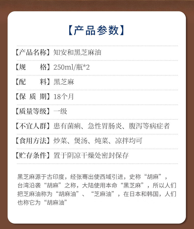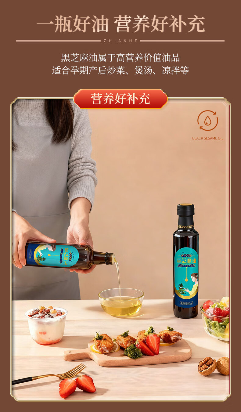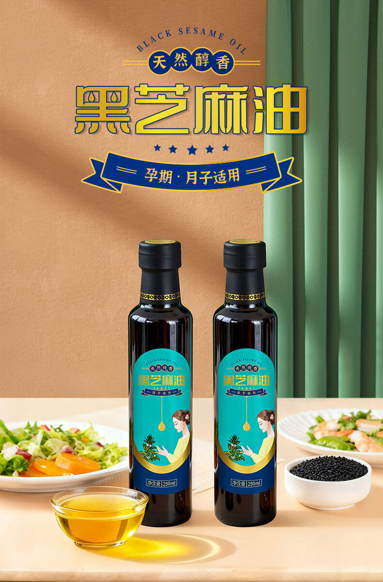 知安和月子餐黑芝麻油月子油胡麻油黑麻油产妇孕妇补品产后坐月子营养品 月子食用油250ml*2瓶装