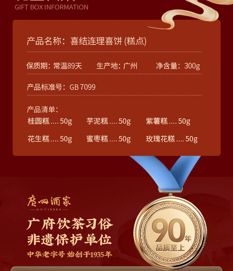 广州酒家糕点点心礼盒广东特产手信送礼饼干休闲零食中华老字号下午茶饼酥 金装经典手信礼盒424g