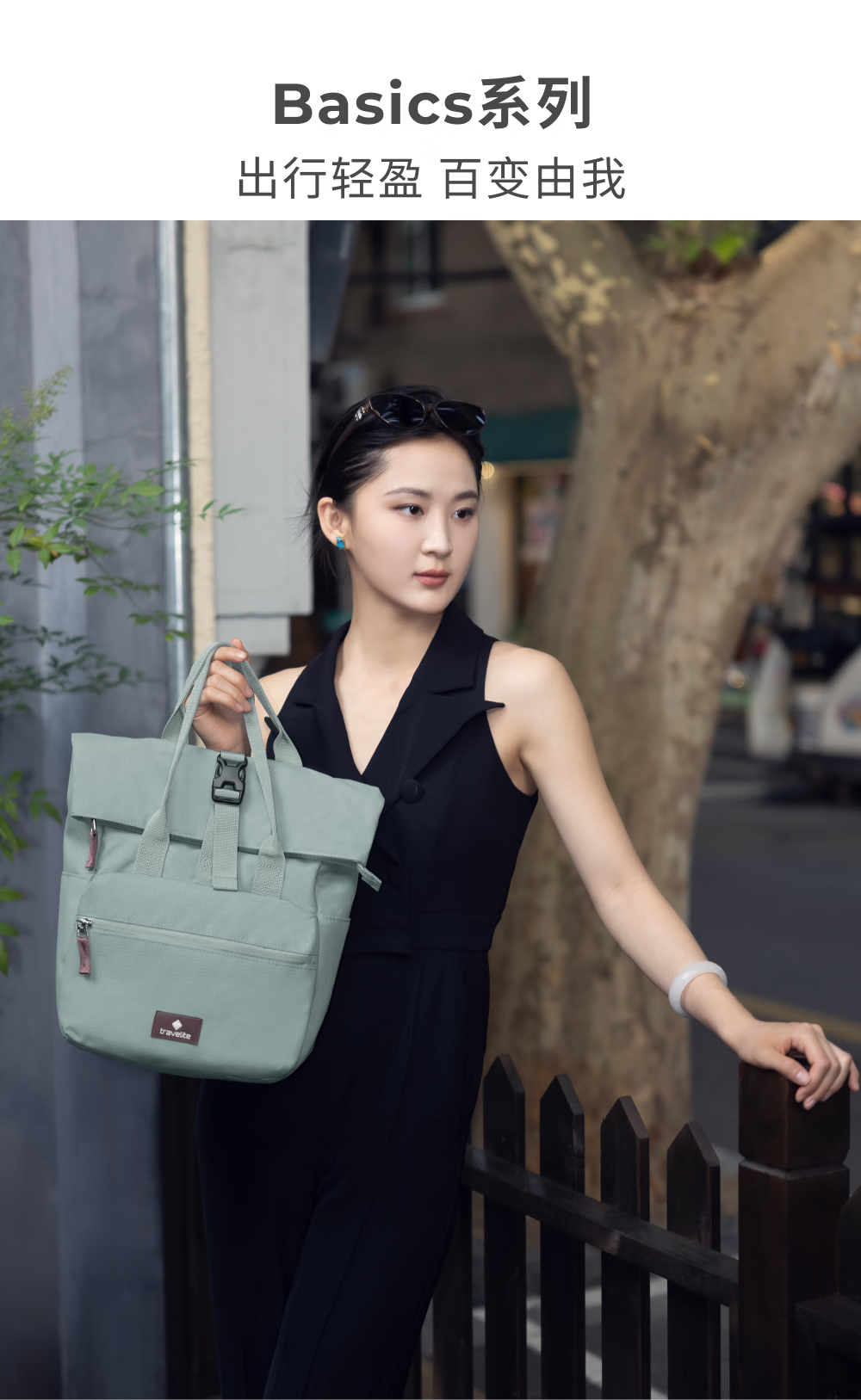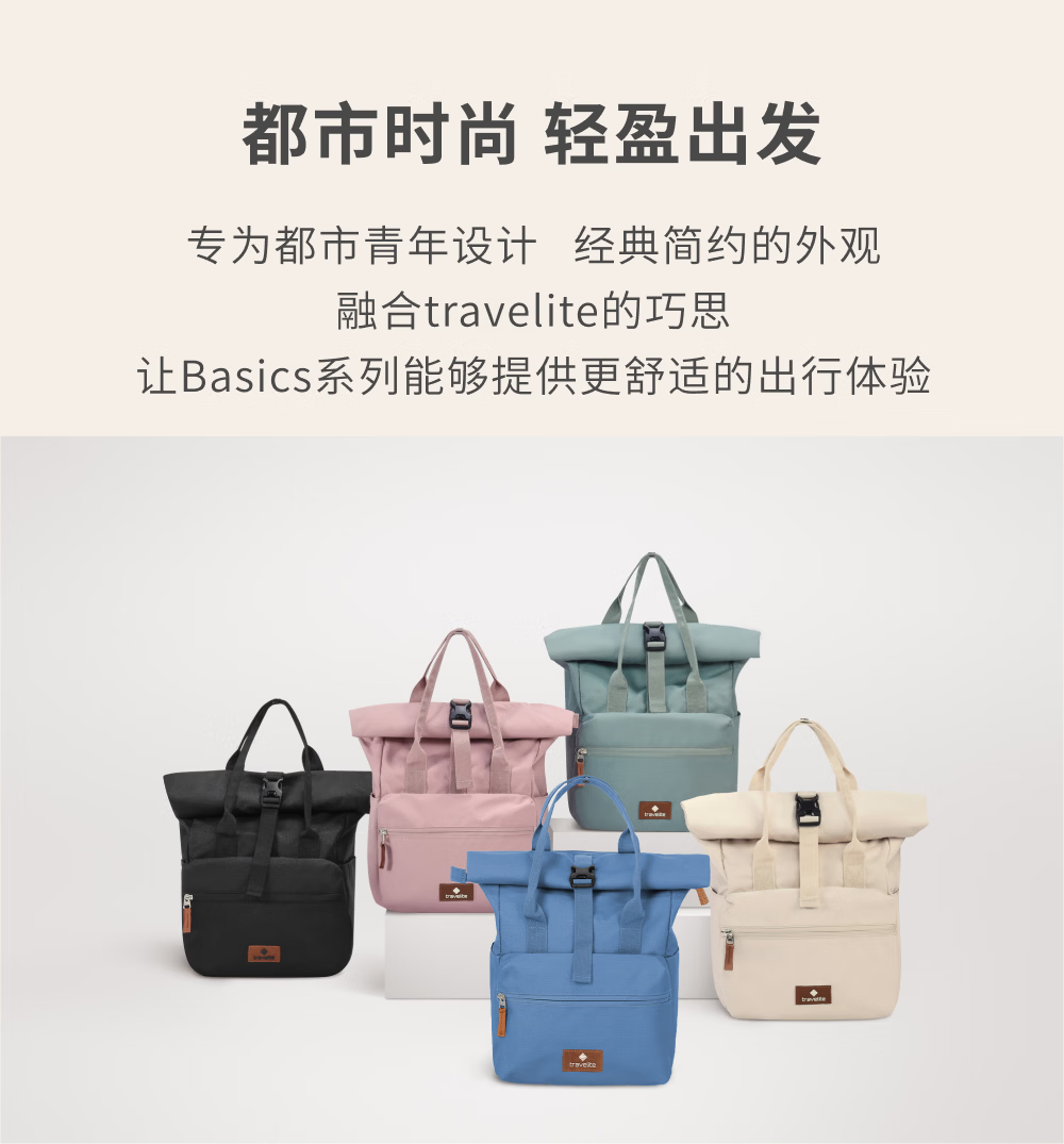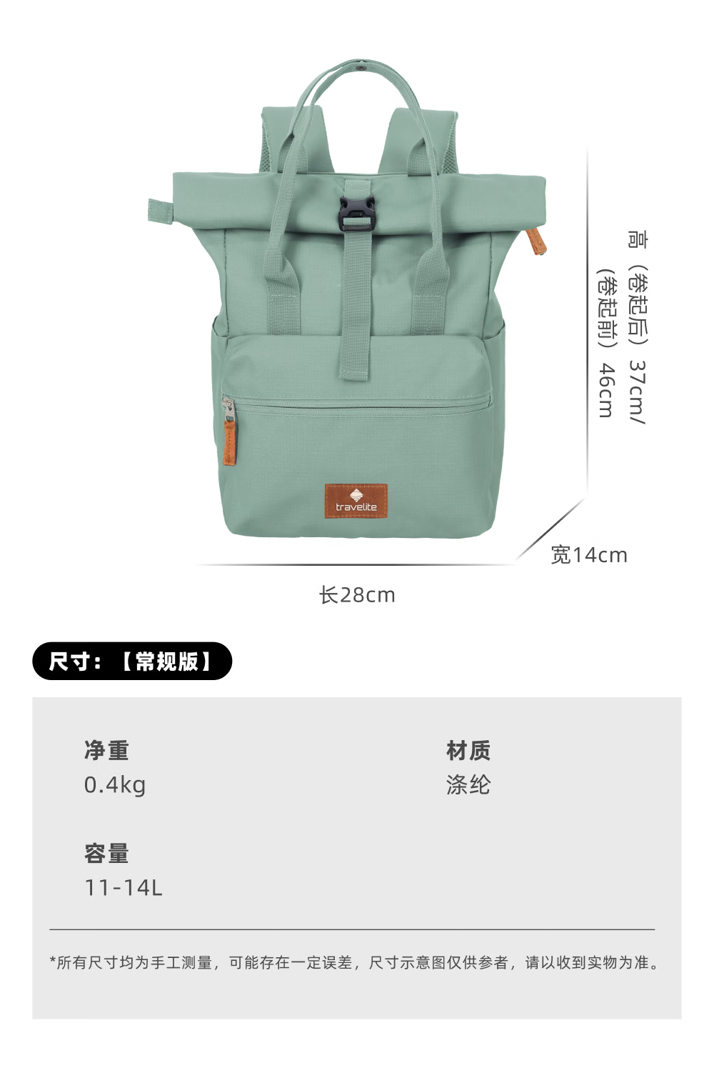 travelite旅行包 女士大容量双肩包轻盈行李包商务电脑包德国Basics送女友 乌木黑 常规尺寸 11L-14L(扩展后)