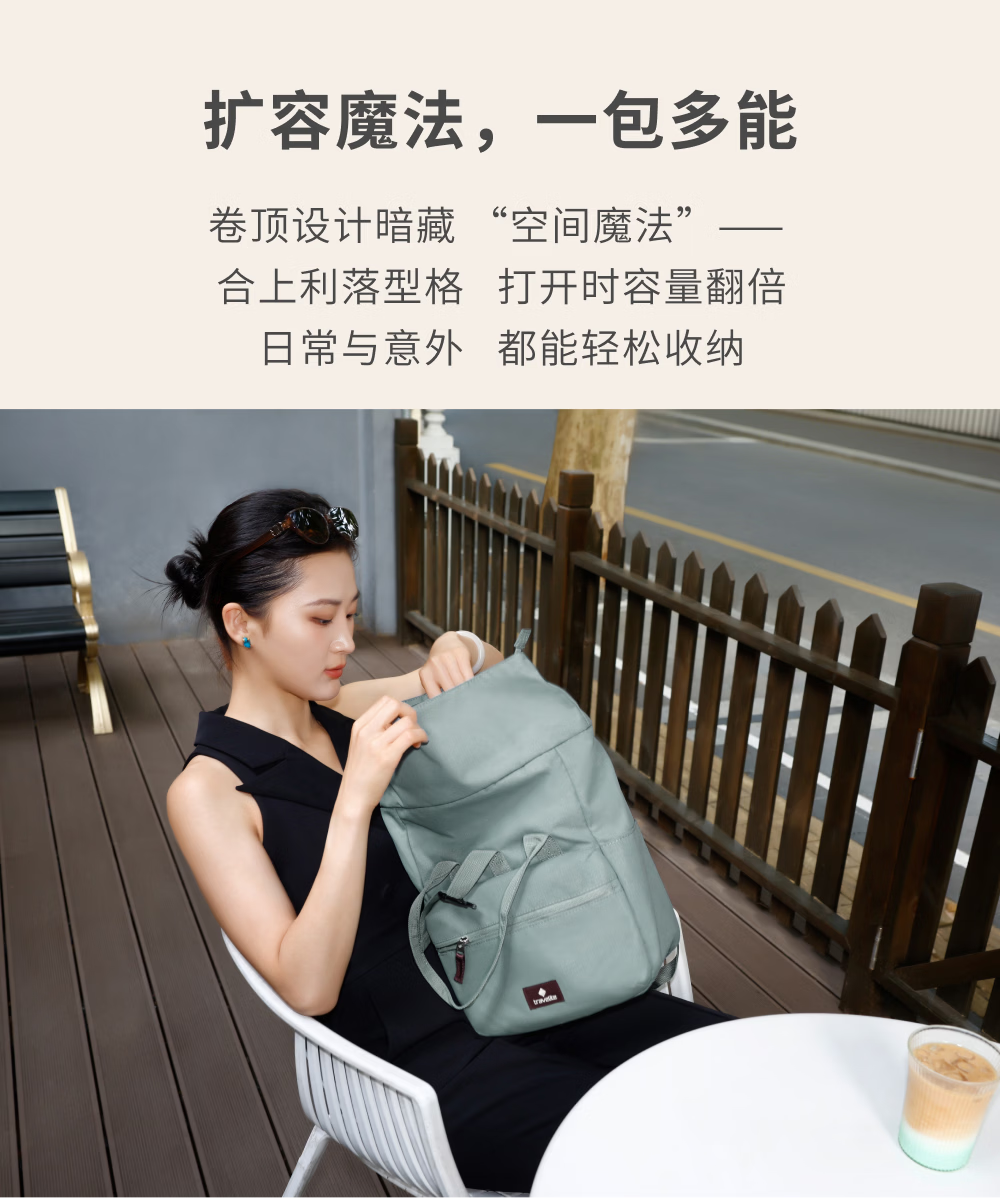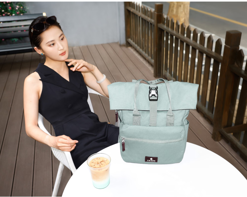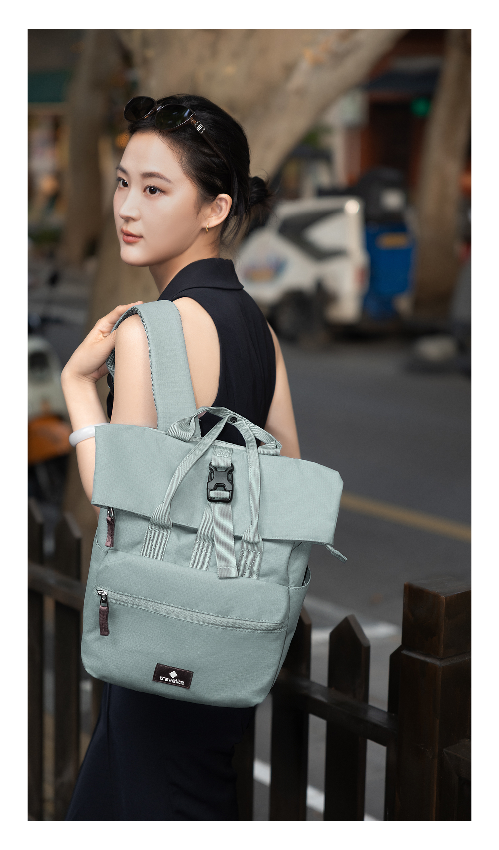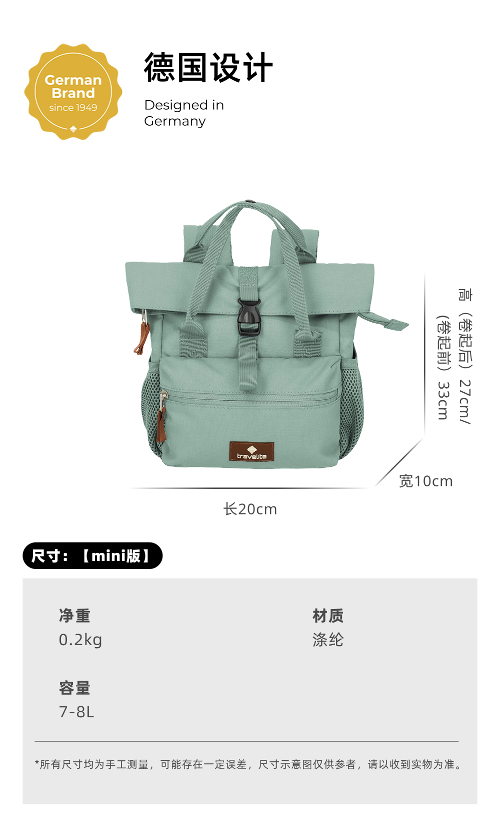 travelite旅行包 女士大容量双肩包轻盈行李包商务电脑包德国Basics送女友 乌木黑 常规尺寸 11L-14L(扩展后)