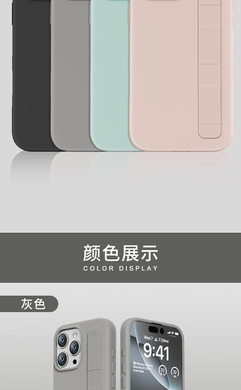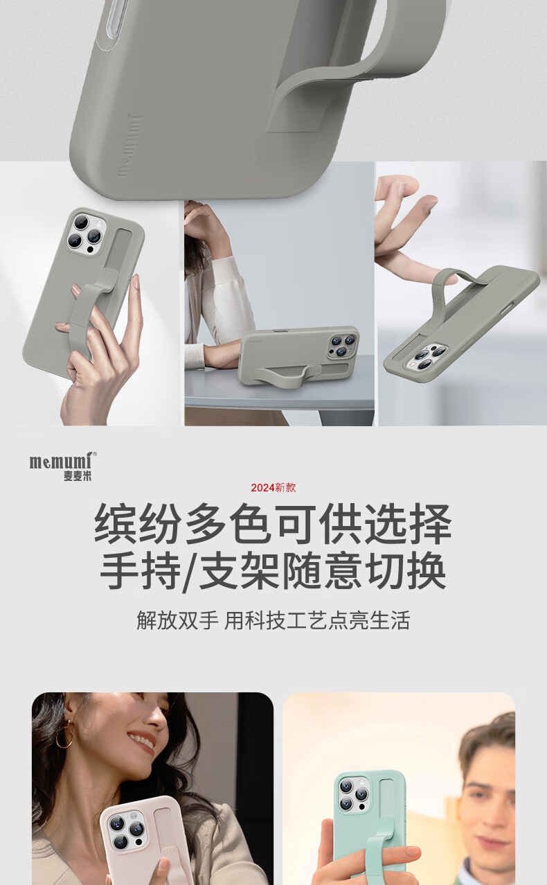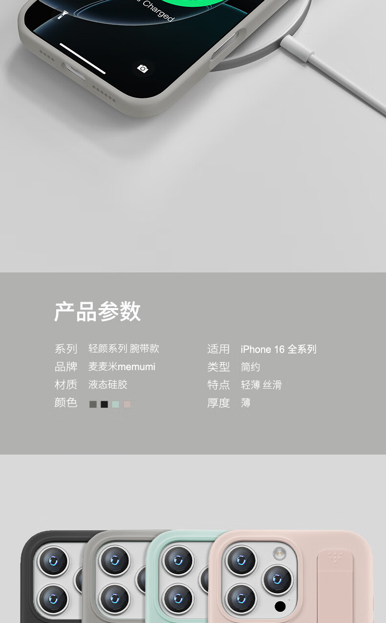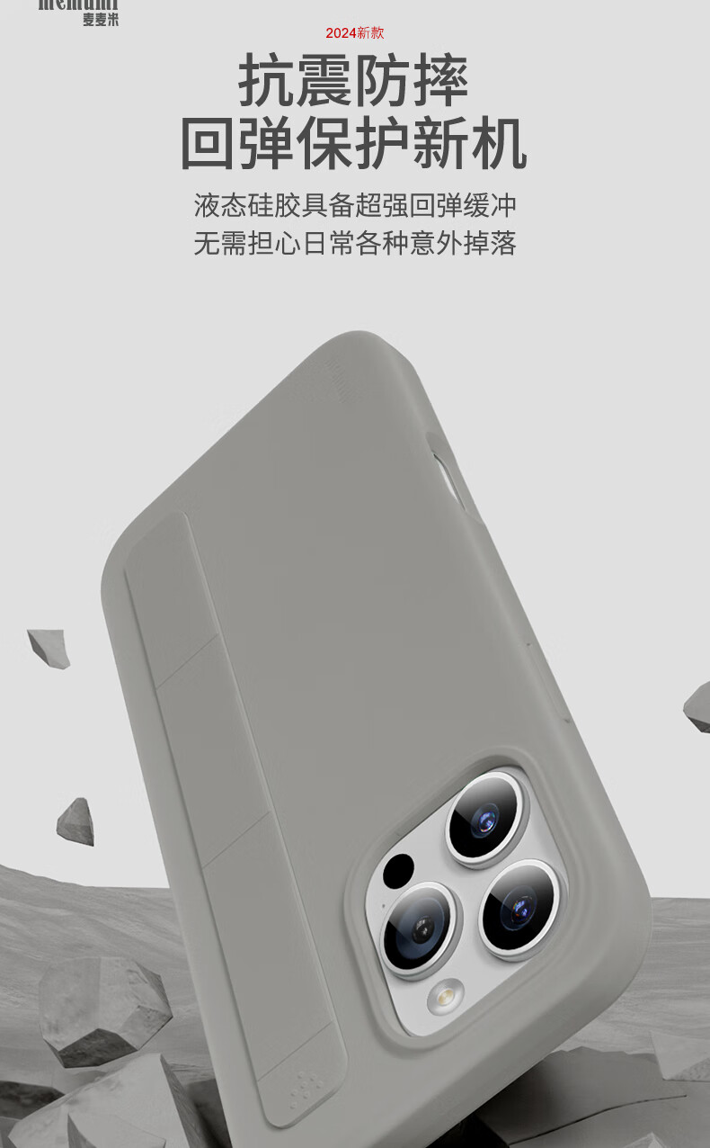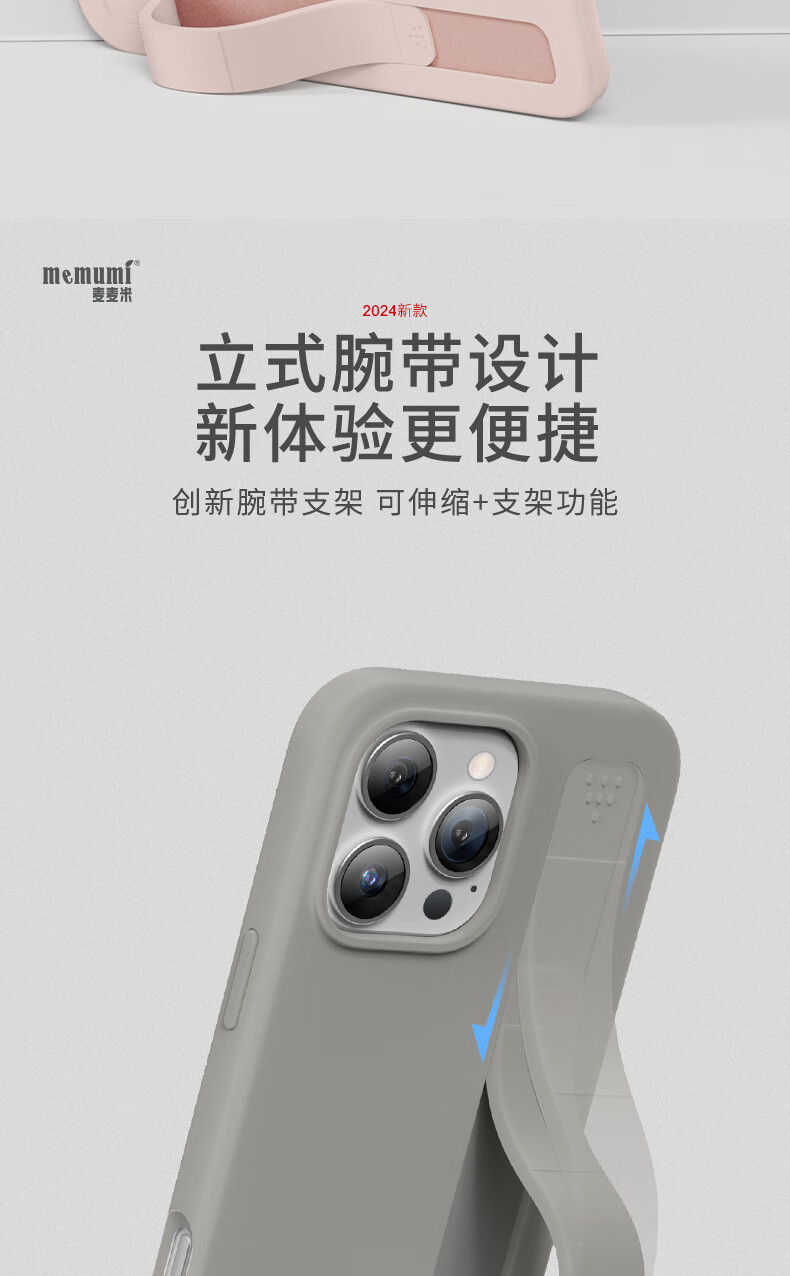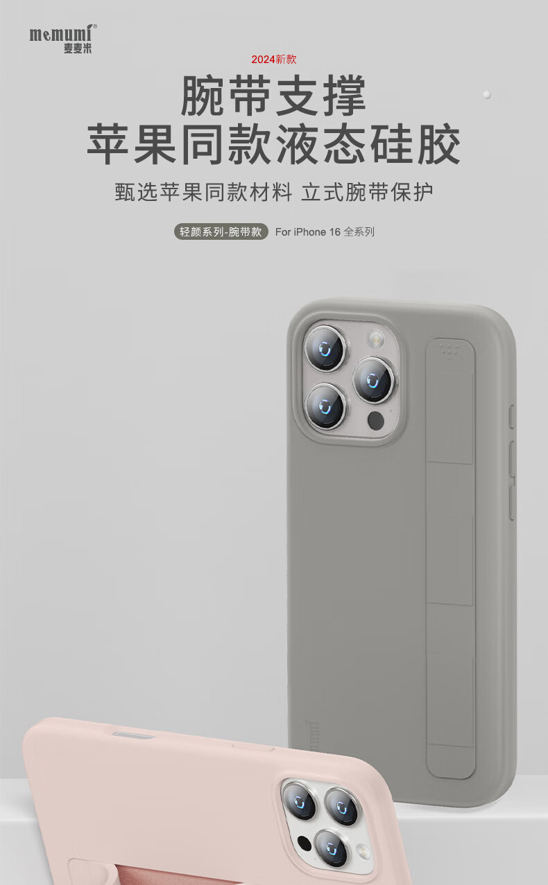 麦麦米立式腕带支架保护壳 适用iphone16promax手机壳 苹果16promax手机真液态硅胶软壳 多功能防摔新款 苹果16promax丨钛灰色丨立式腕带液态硅胶