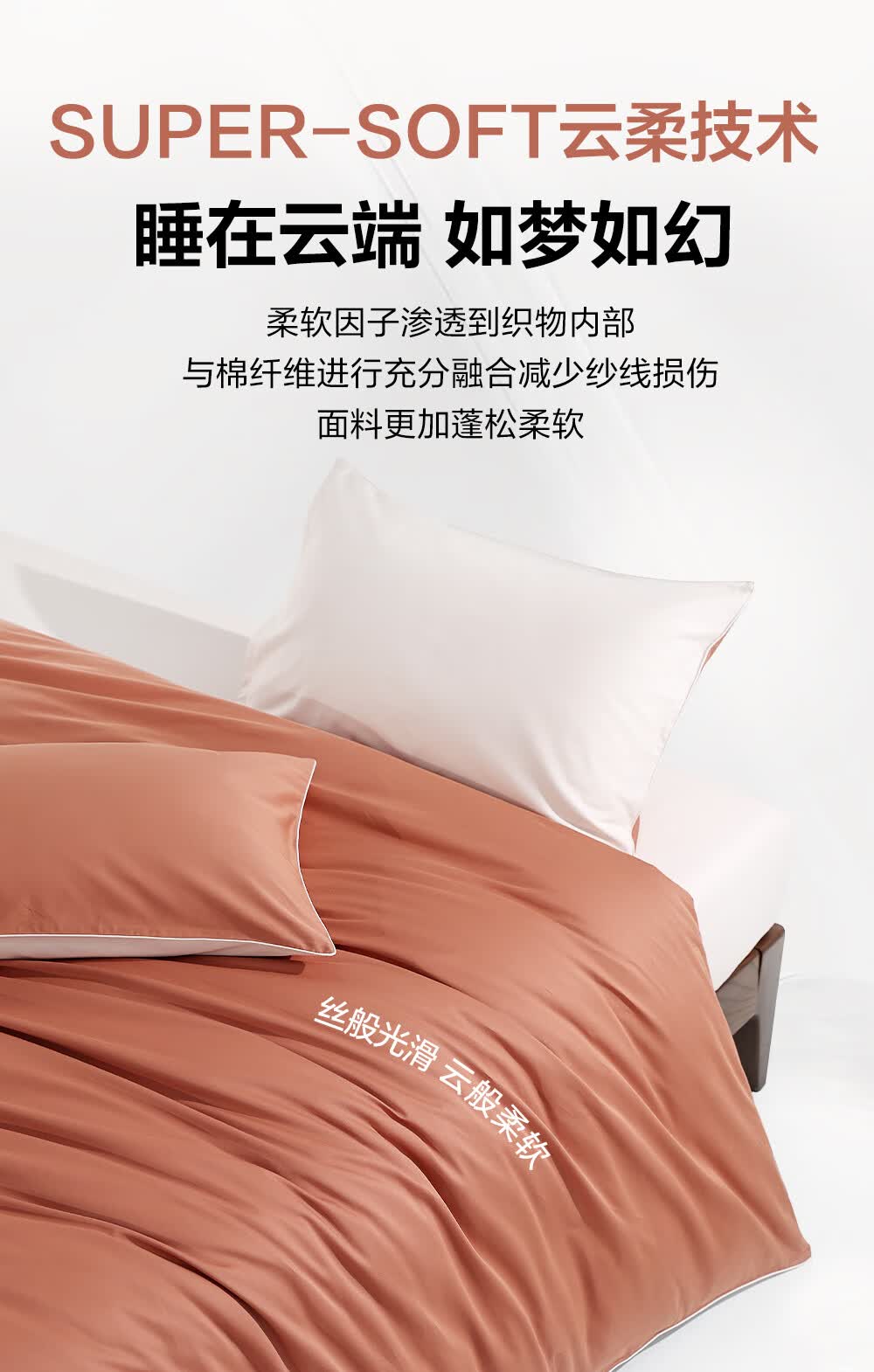 水星家纺床上深海胶原蛋白天然养肤科技四件套天丝棉a类轻奢新品套件1.8x2米床粉