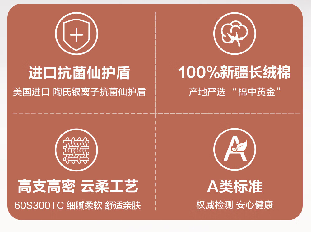 1号会员店(One's Member)60支A类抗菌新疆长绒棉纯棉四件套 摩卡慕斯 1.5m床单款 家用