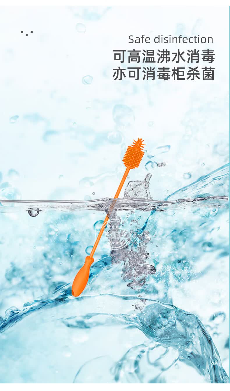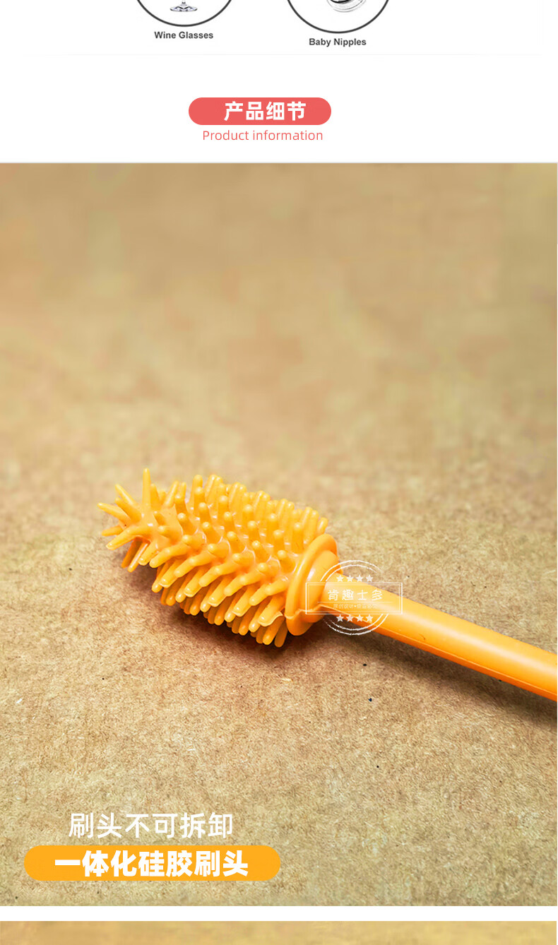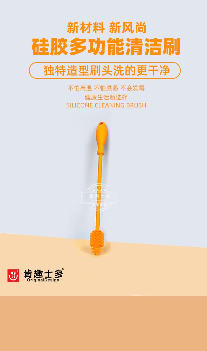 肯趣士多杯盖清洁刷一体化硅胶小刷头耐高温保温杯家用奶瓶清洗 橙色(24CM两只装)