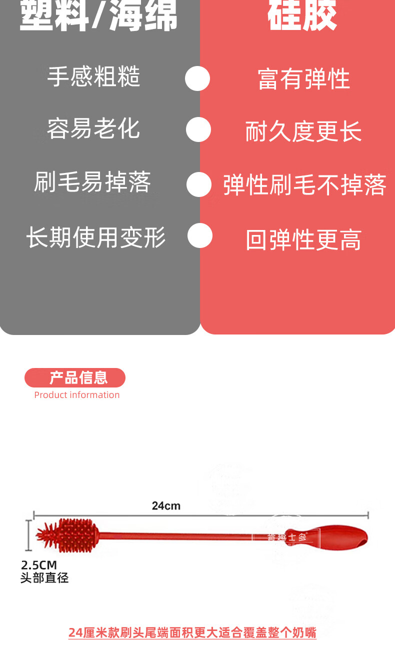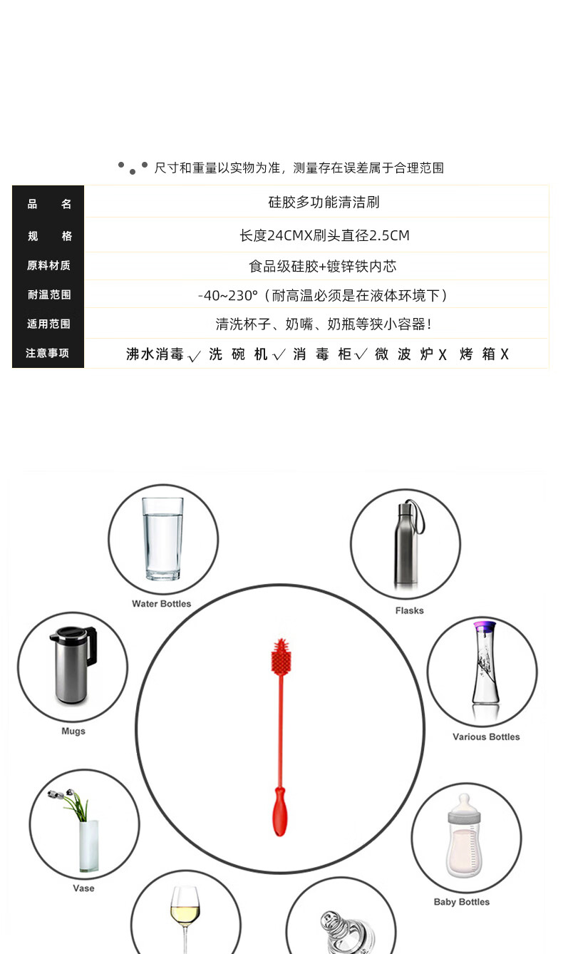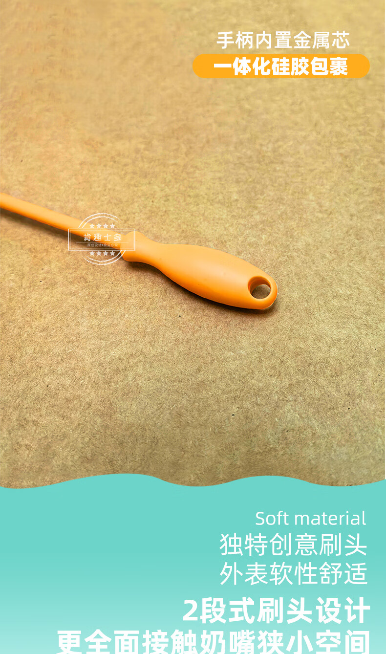 肯趣士多杯盖清洁刷一体化硅胶小刷头耐高温保温杯家用奶瓶清洗 橙色(24CM两只装)