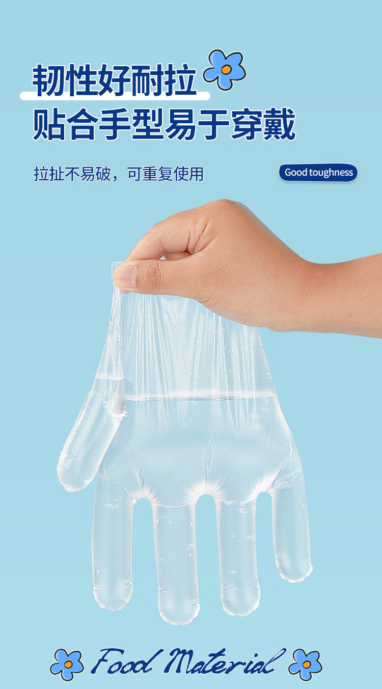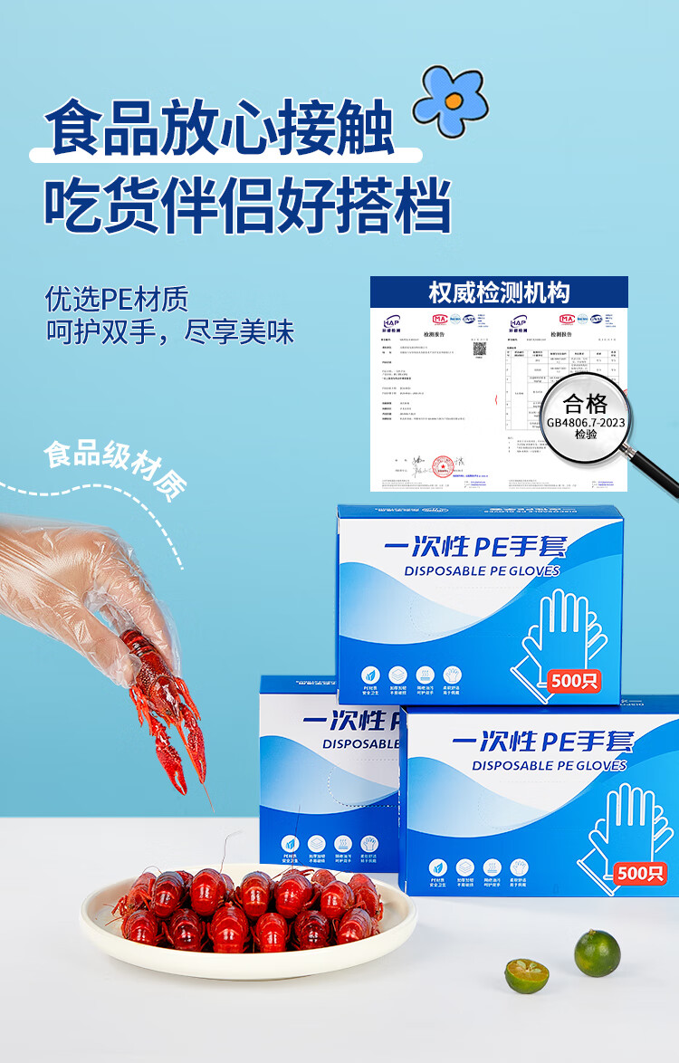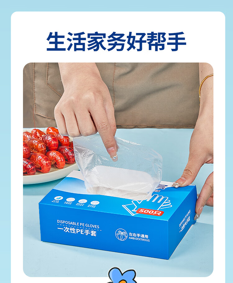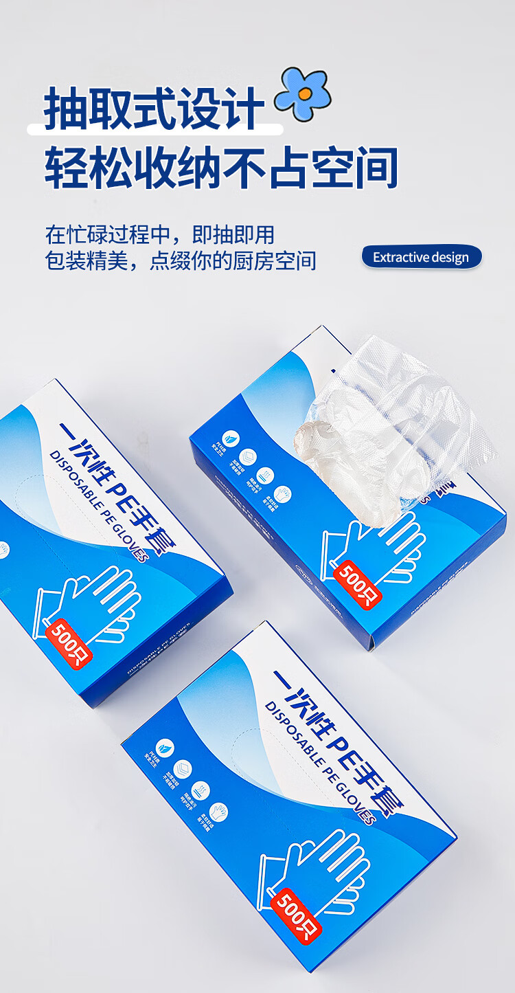 SHUANG YU一次性手套500只食品级手套防漏PE卫生手套加厚塑料透明手套