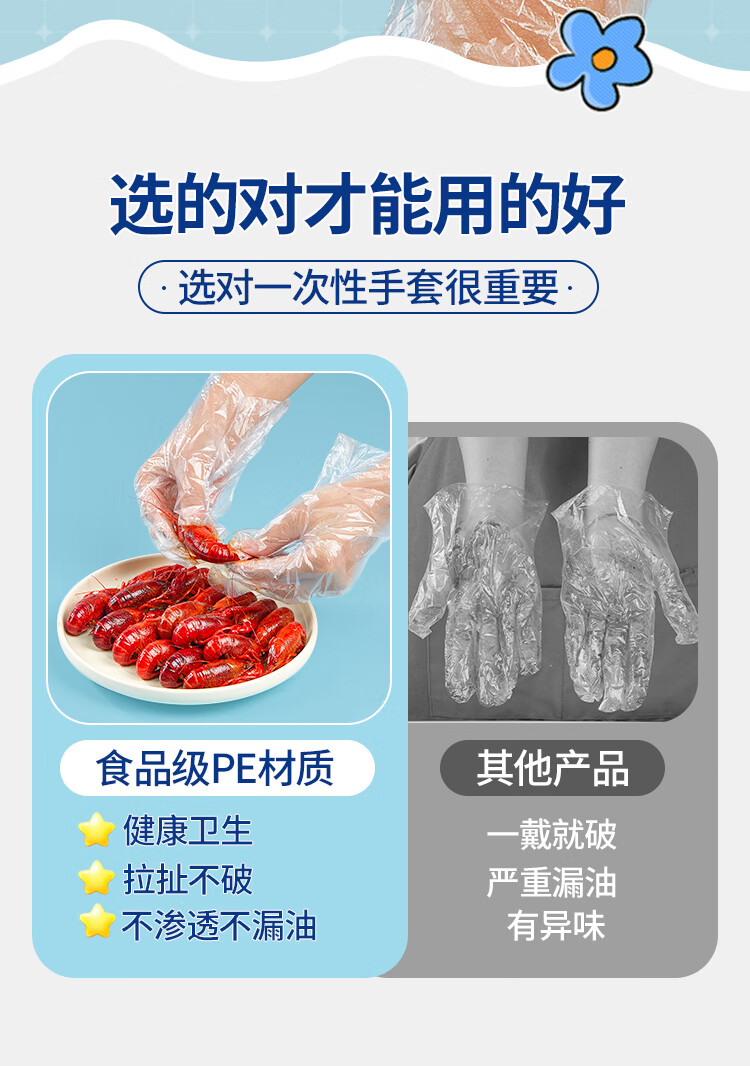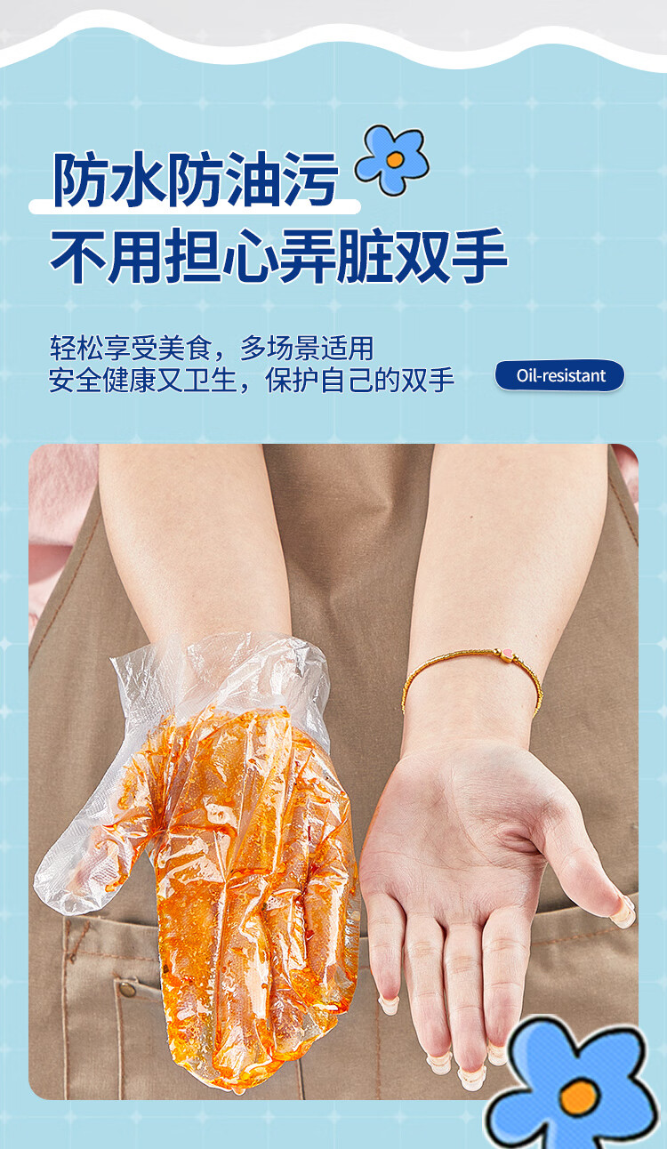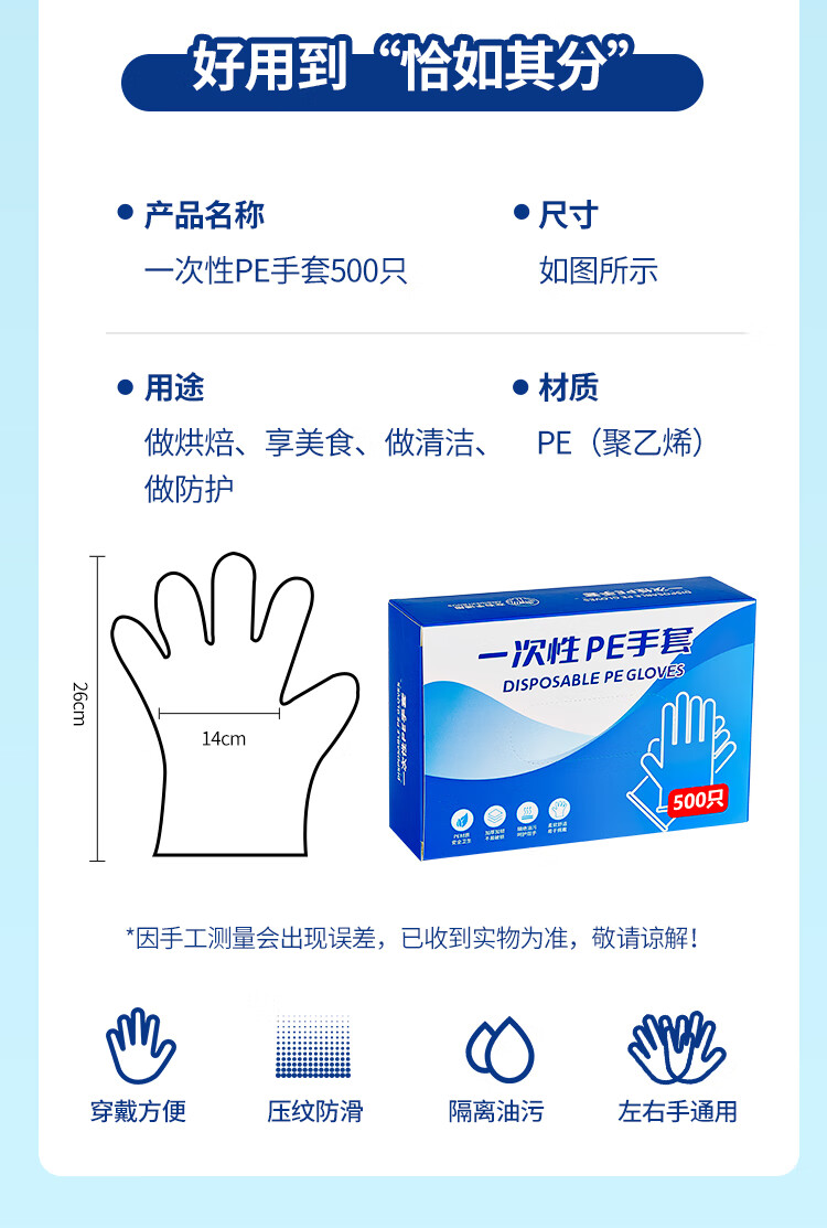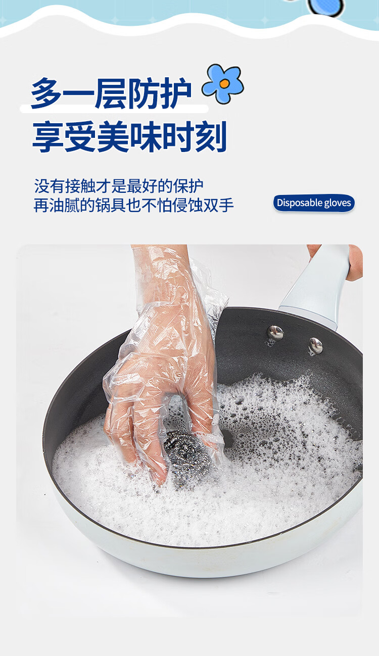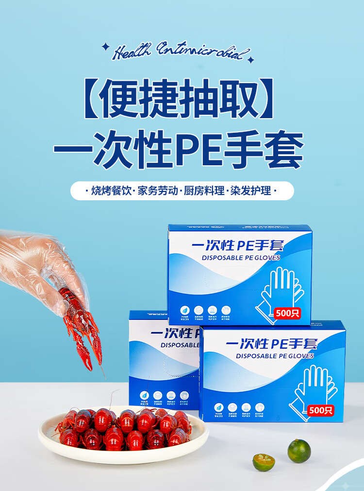 SHUANG YU一次性手套500只食品级手套防漏PE卫生手套加厚塑料透明手套