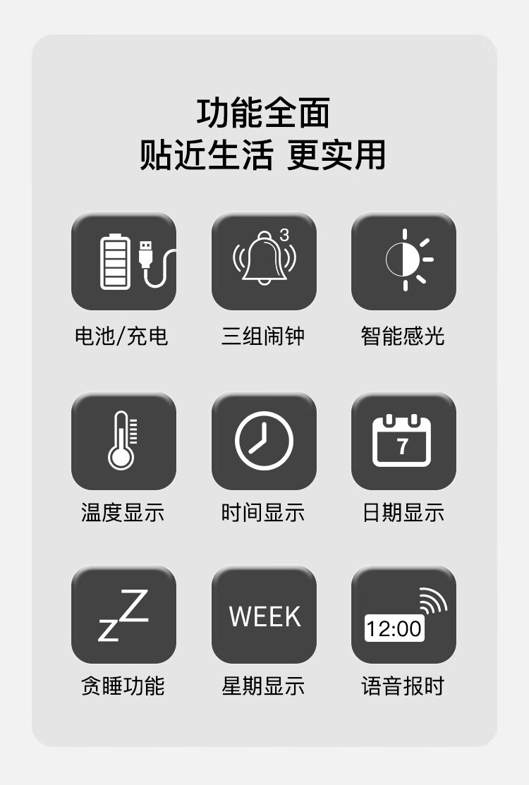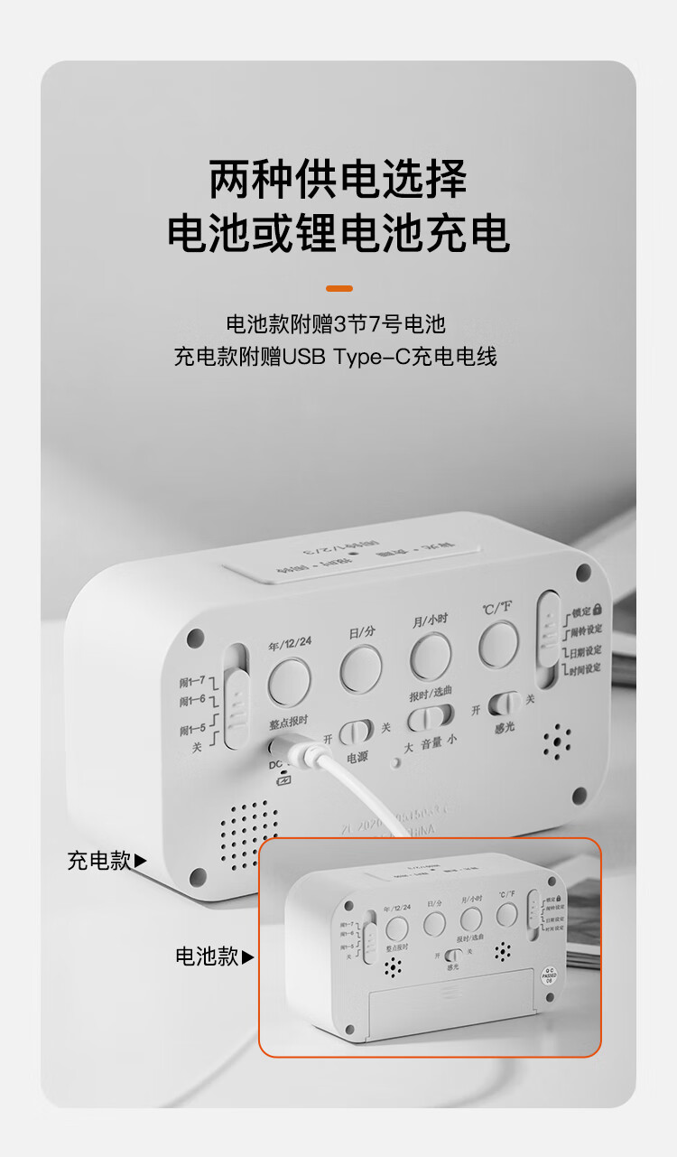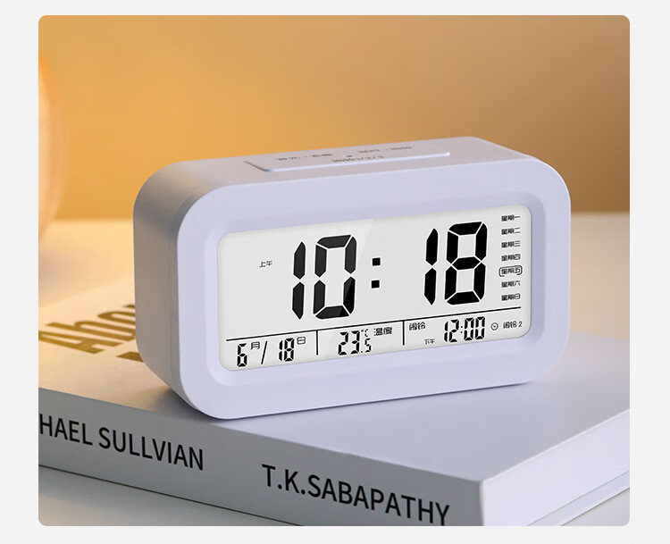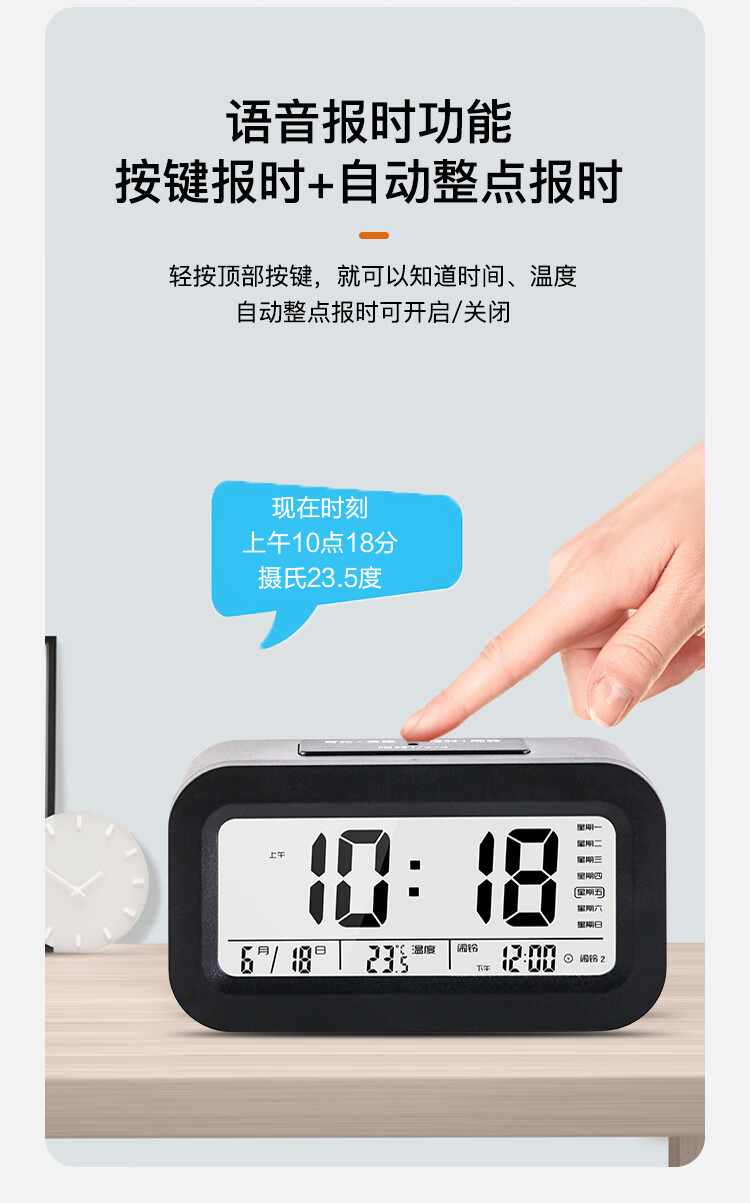 康巴丝(Compas)电子闹钟夜光智能语音报时起床神器闹铃强力叫醒儿童学生床头钟开学必备 2139 白色充电款开学季