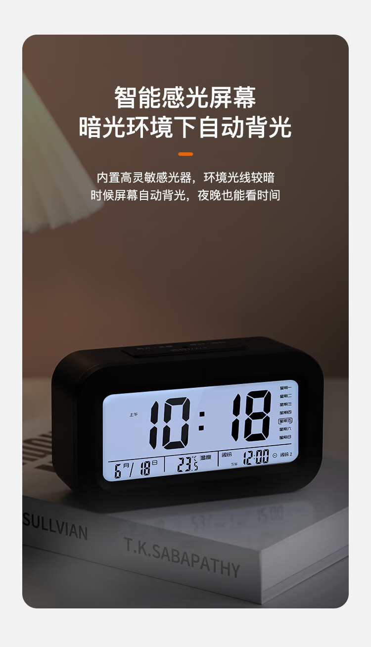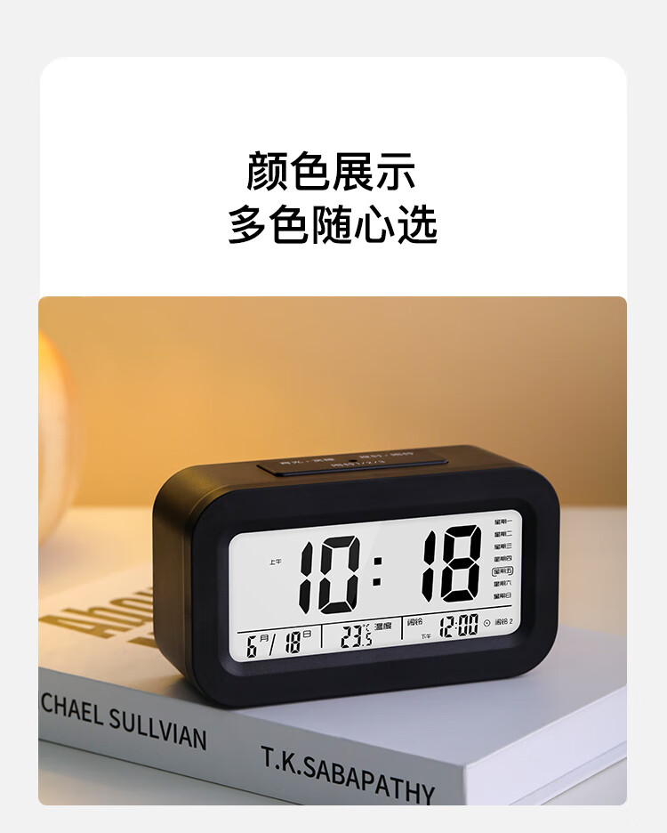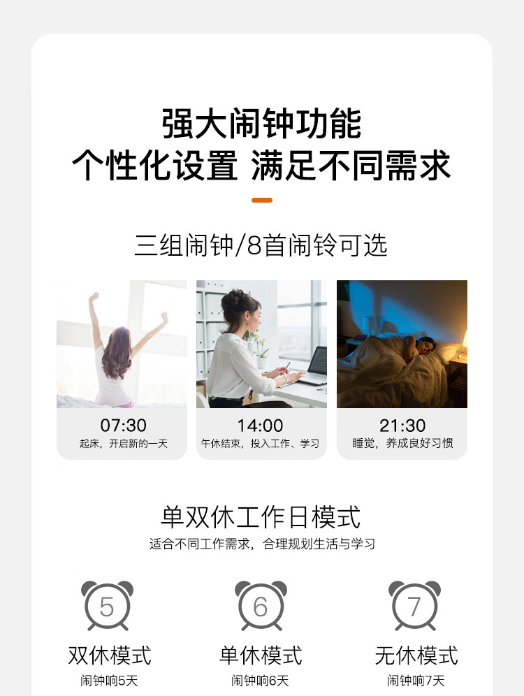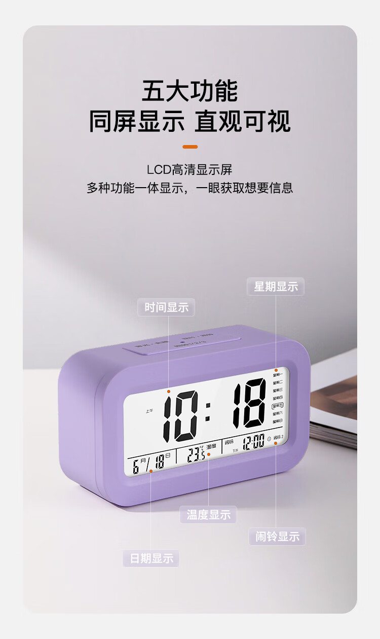康巴丝(Compas)电子闹钟夜光智能语音报时起床神器闹铃强力叫醒儿童学生床头钟开学必备 2139 白色充电款开学季