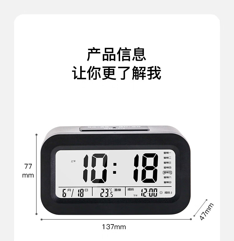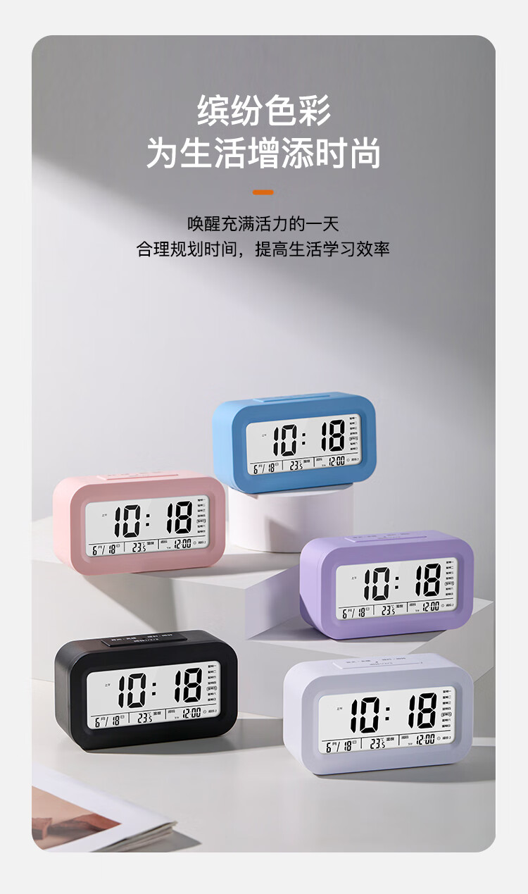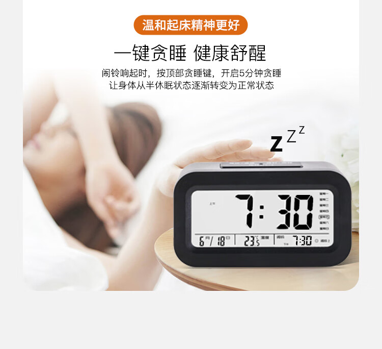 得力(deli)迷你小夜灯闹钟家庭卧室床头钟儿童学生专用起床神器开学必备白色LE333开学开学季礼物