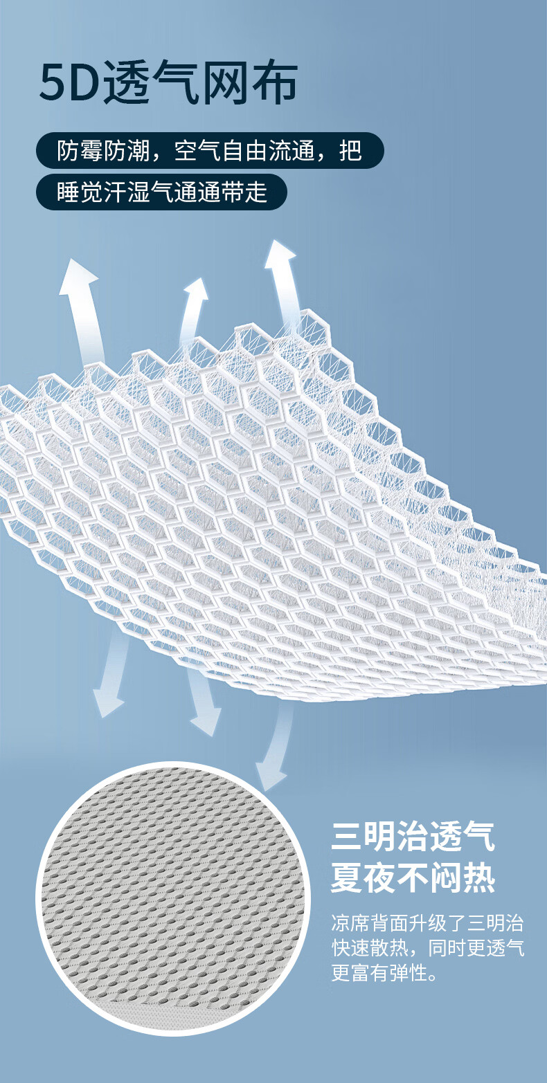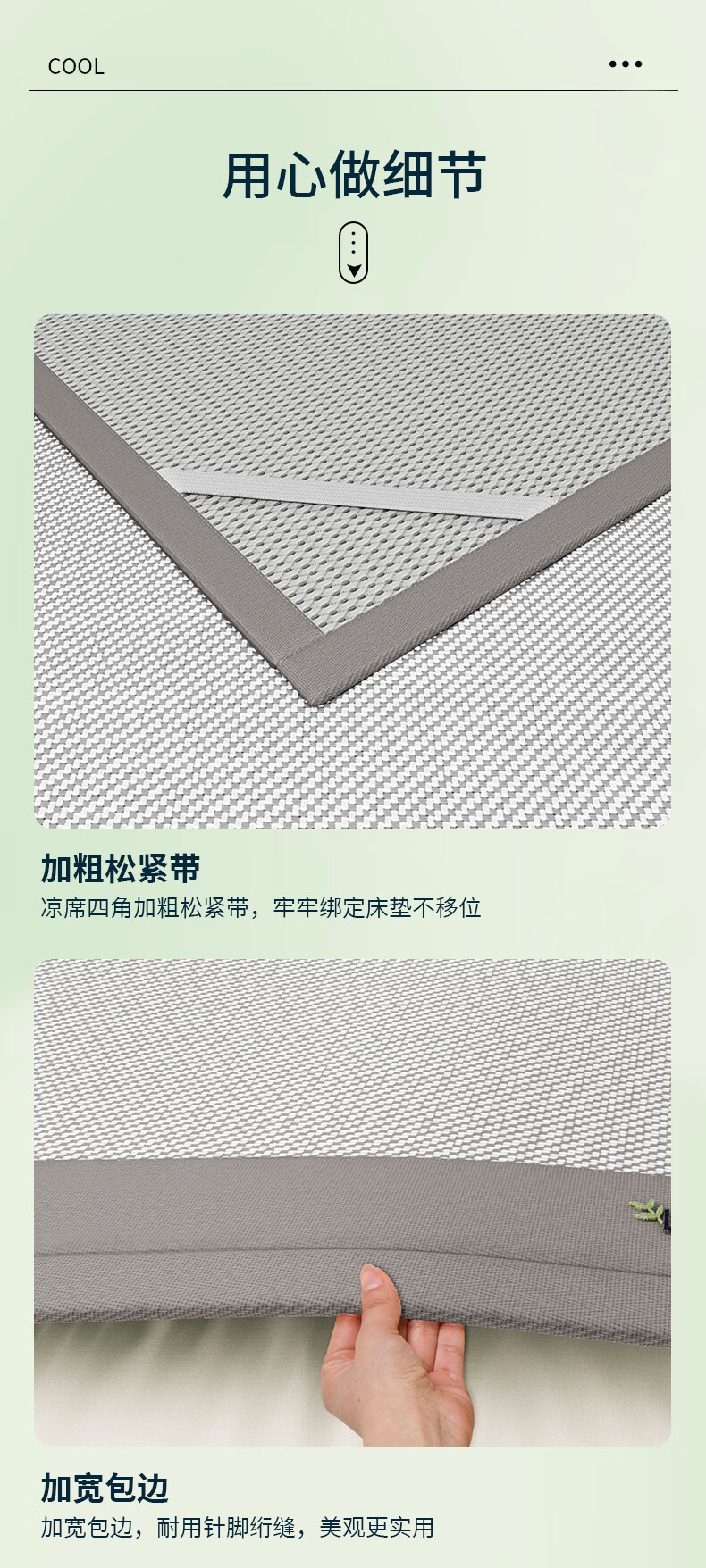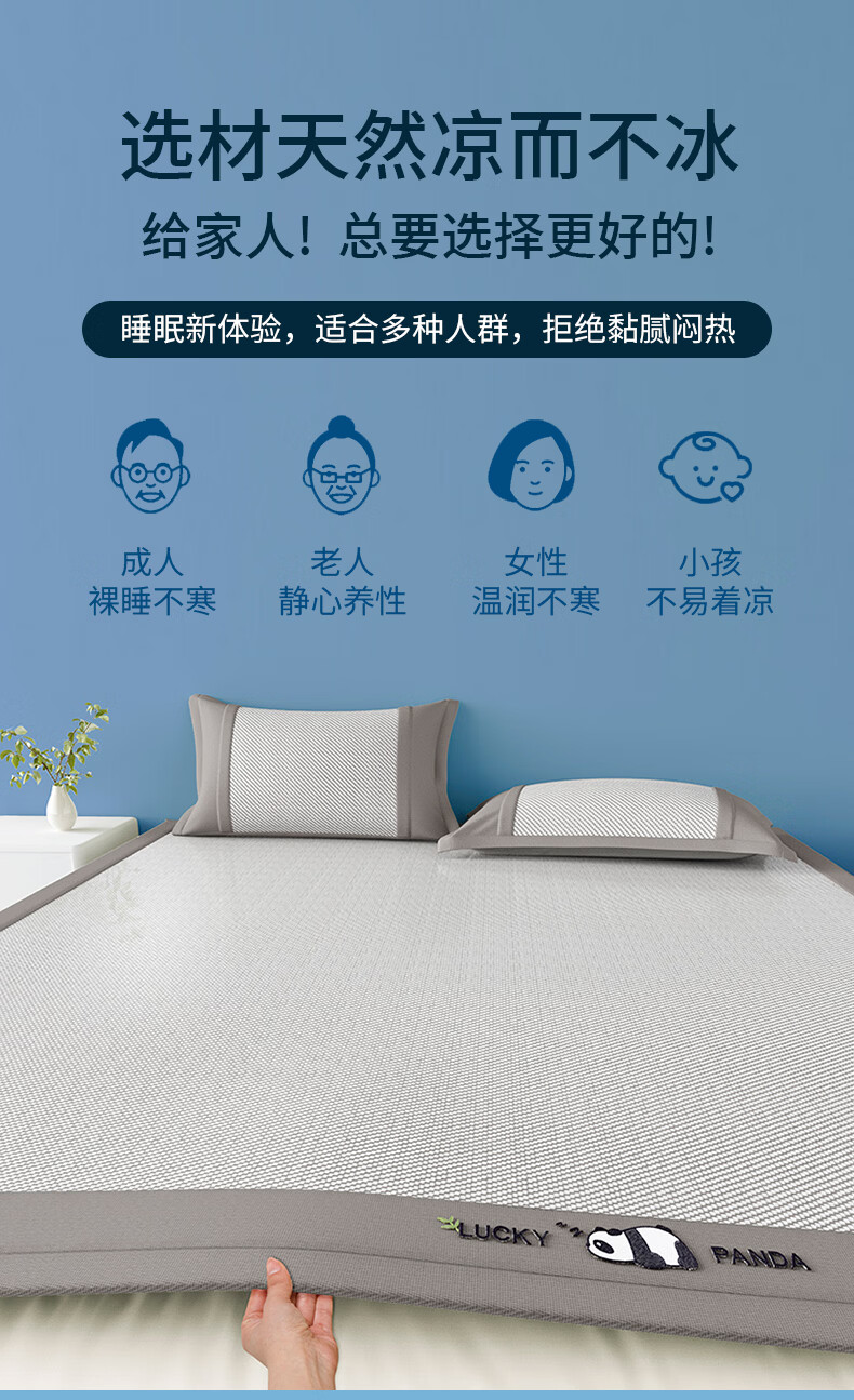 水星家纺北欧·海岸可水洗冰丝席/床笠式提花冰丝席升级款 北欧·海岸可水洗提花冰丝席升级款(灰蓝色) 195cm*90cm
