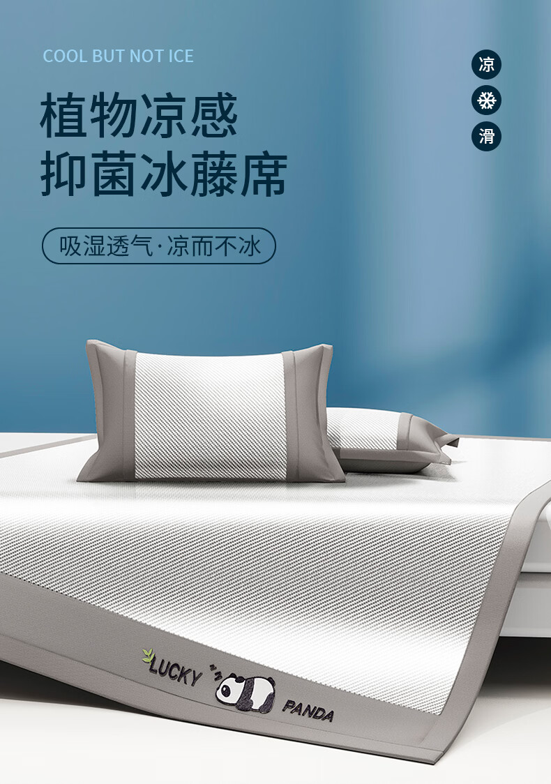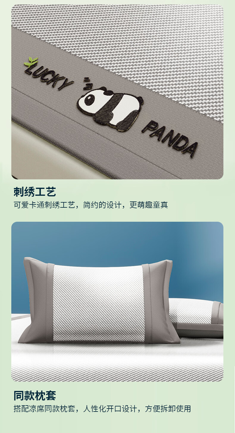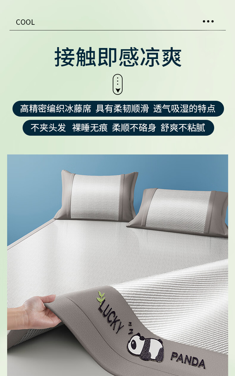VJE夏天冰丝凉席藤席2026新款夏季软席子床笠可水洗草席竹席婴儿可用 帕帕狗-绿色【婴幼儿可用 A类抗菌】 三件套 150cm*200cm 席子+枕套两只