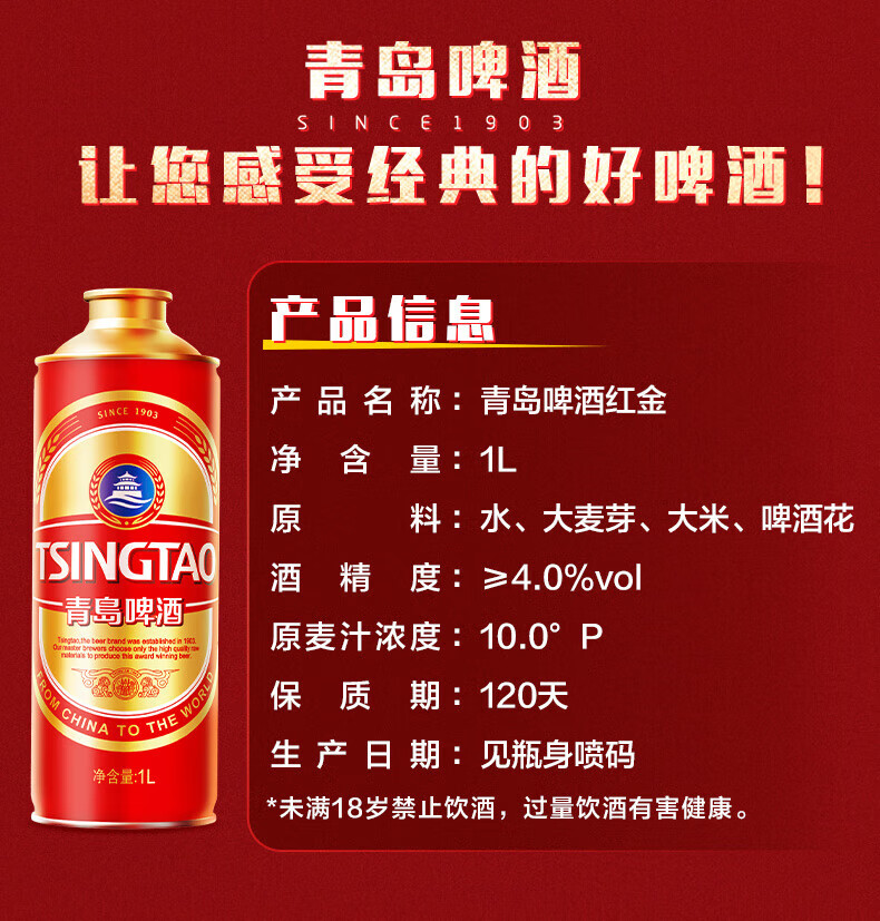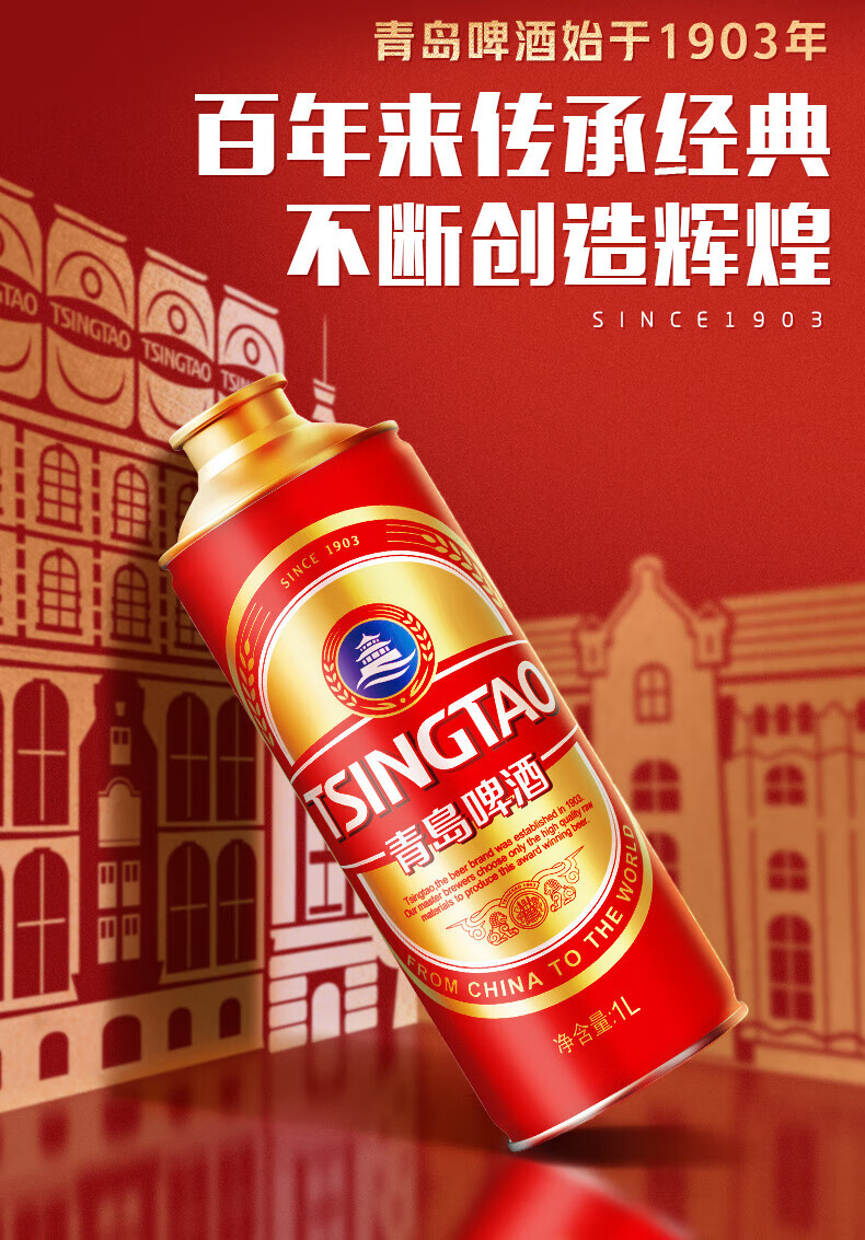 青岛啤酒升级款大容量经典1903 经典原麦汁浓度10°P啤酒 550mL 15罐