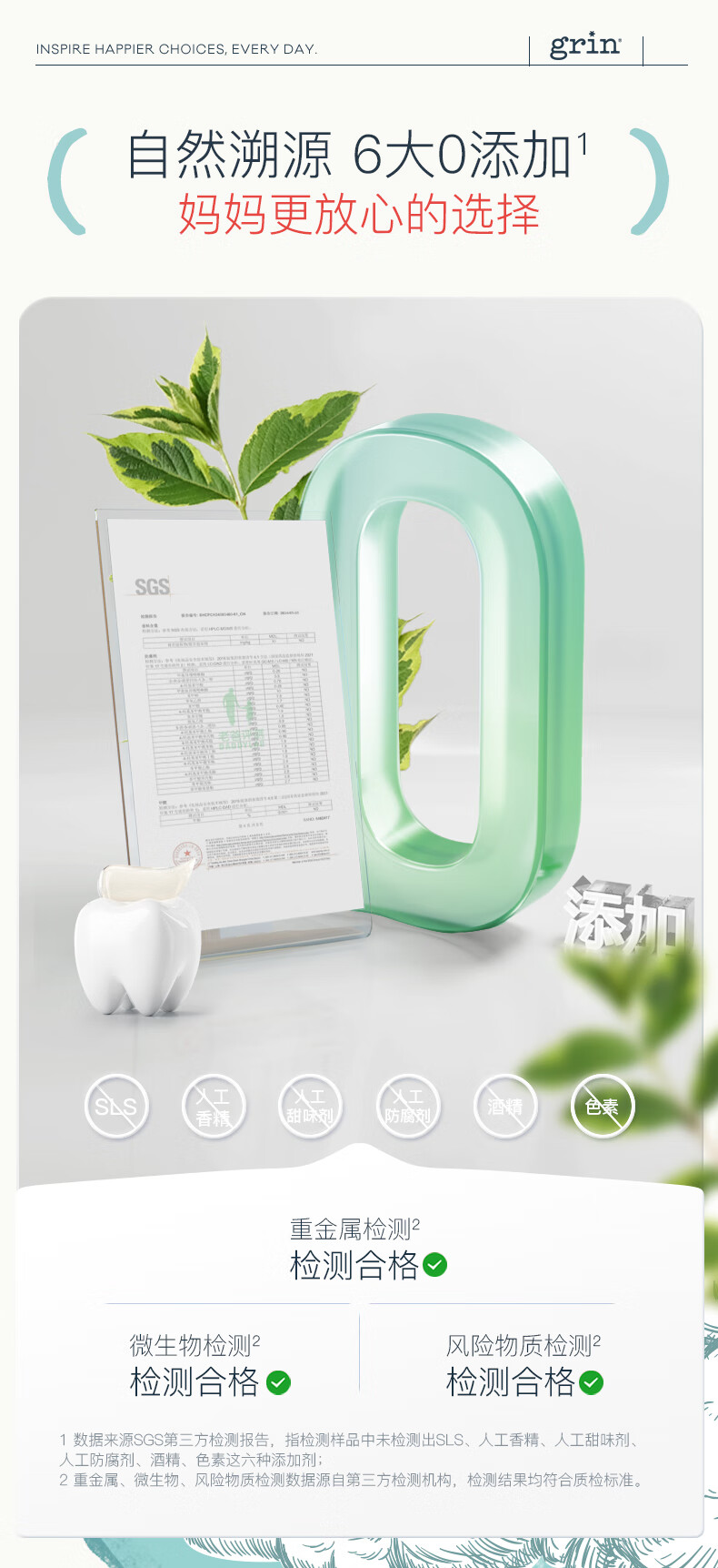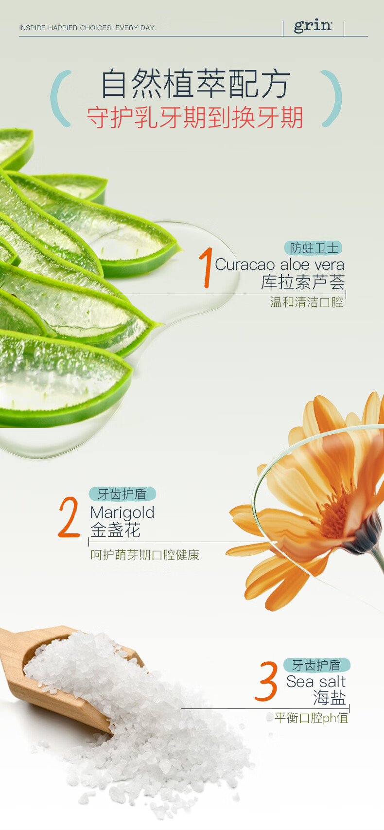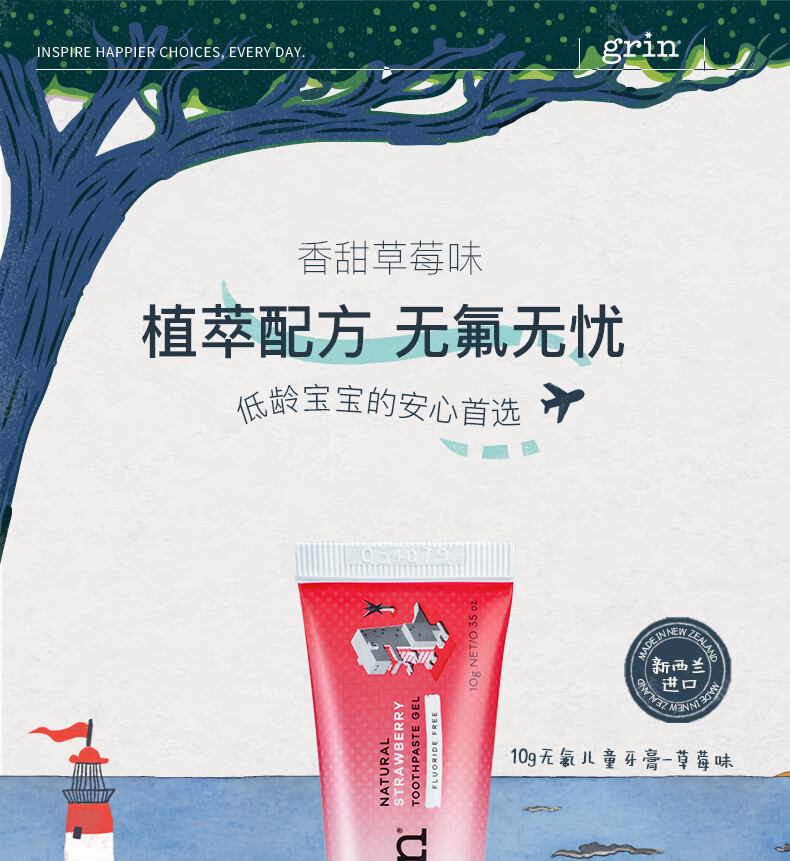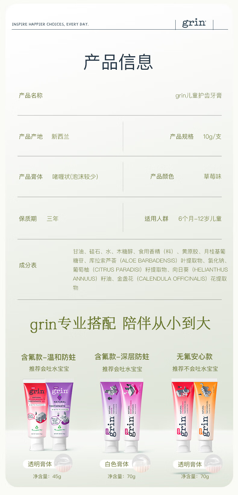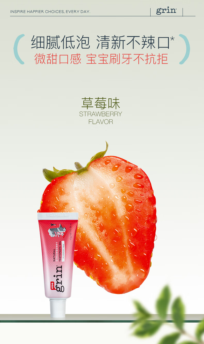 grin宝宝儿童牙膏无氟不含氟防蛀1支10g草莓味