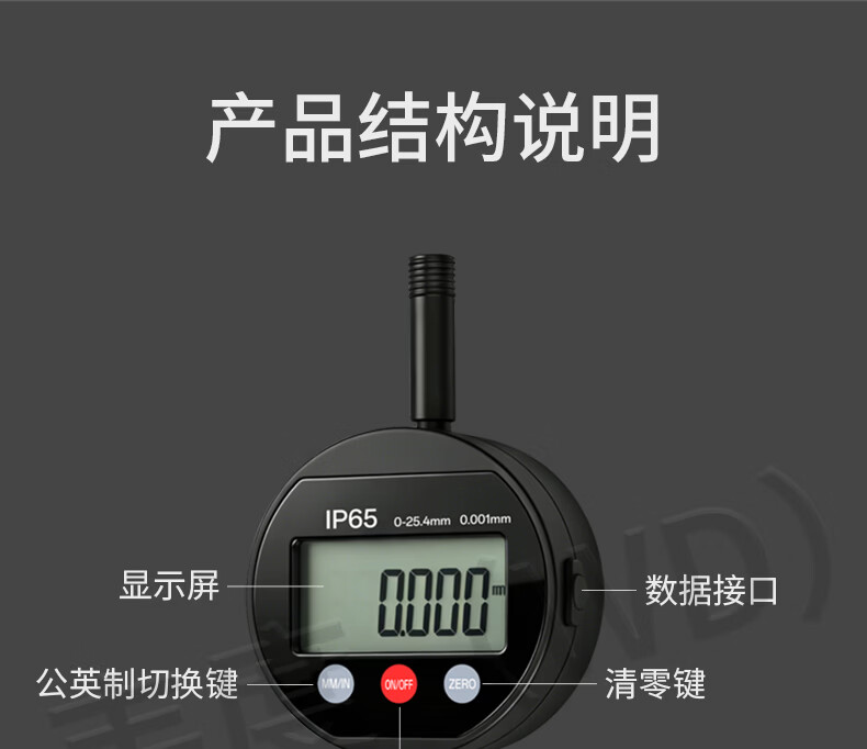 韦度(WD)触摸款数显百分表电子千分表高精度充电款高度规计测厚仪深度仪 触摸数显百分表0-12.7