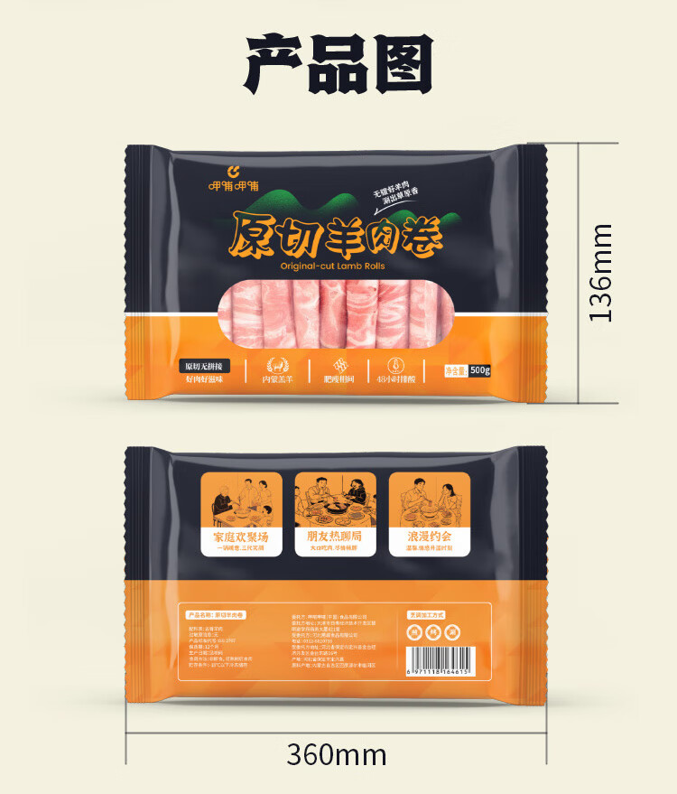 呷哺呷哺内蒙古原切羔羊肉卷火锅涮肉食材肥羊卷生鲜羊肉片中秋聚餐礼品 呷哺呷哺原切羔羊肉卷3斤