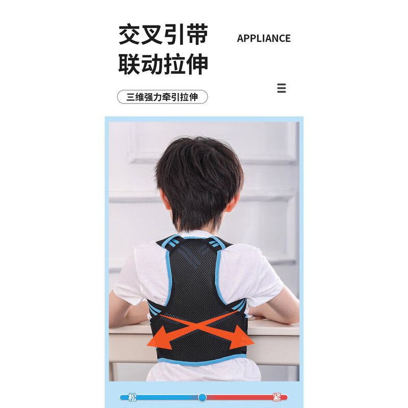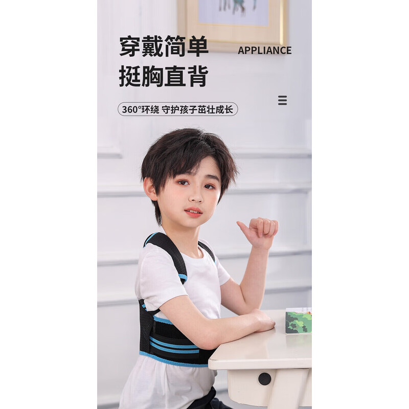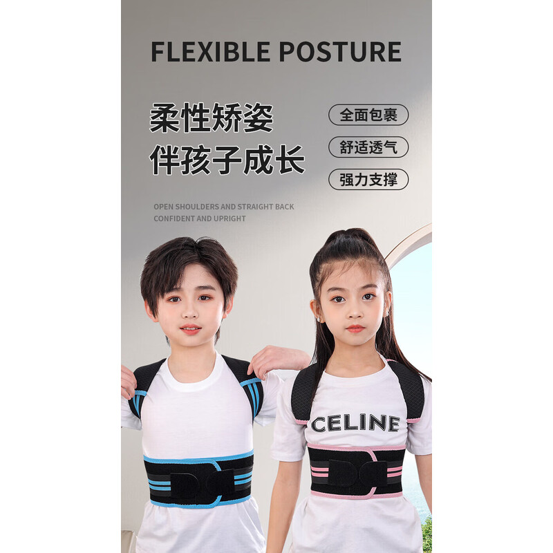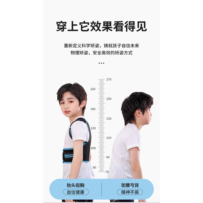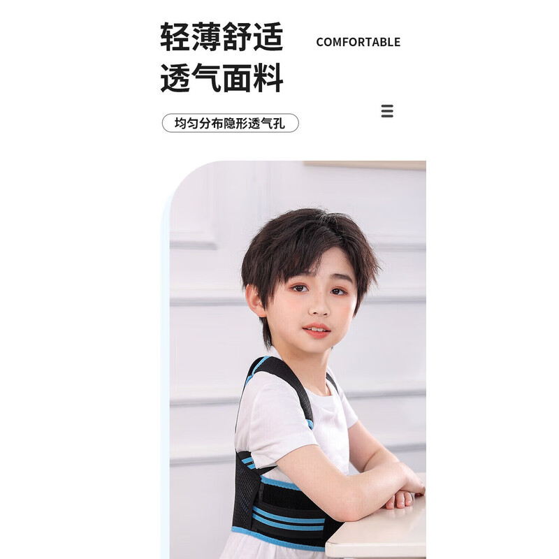 背背佳轻薄透气儿童6到12岁-16岁驼背矫正12岁-18学生青少年驼背矫正器 帅气蓝【轻薄透气款】 L【推荐65~90斤】