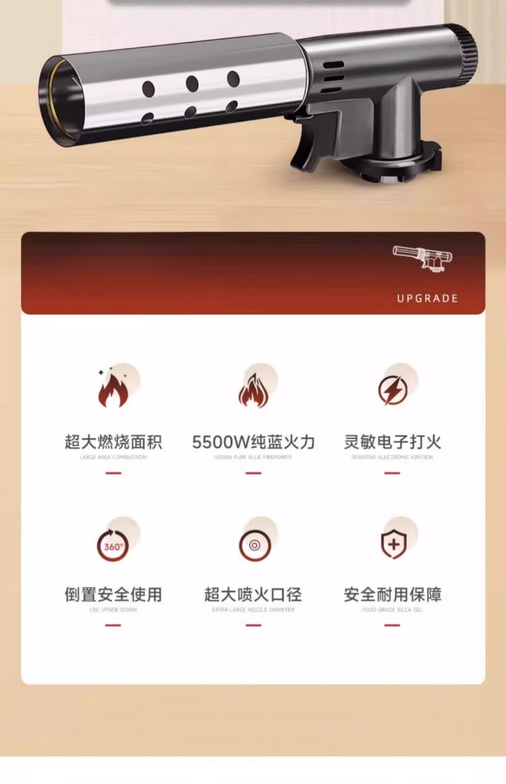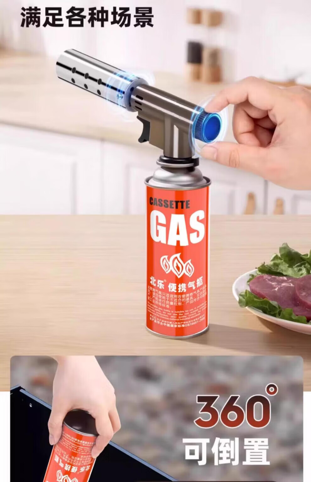 JCZS喷枪喷火烤枪卡式气罐家用烧毛喷火枪点火打火器烘焙手持喷火器枪 金属防爆款(可倒置/调节软硬火)+2瓶气