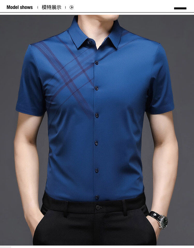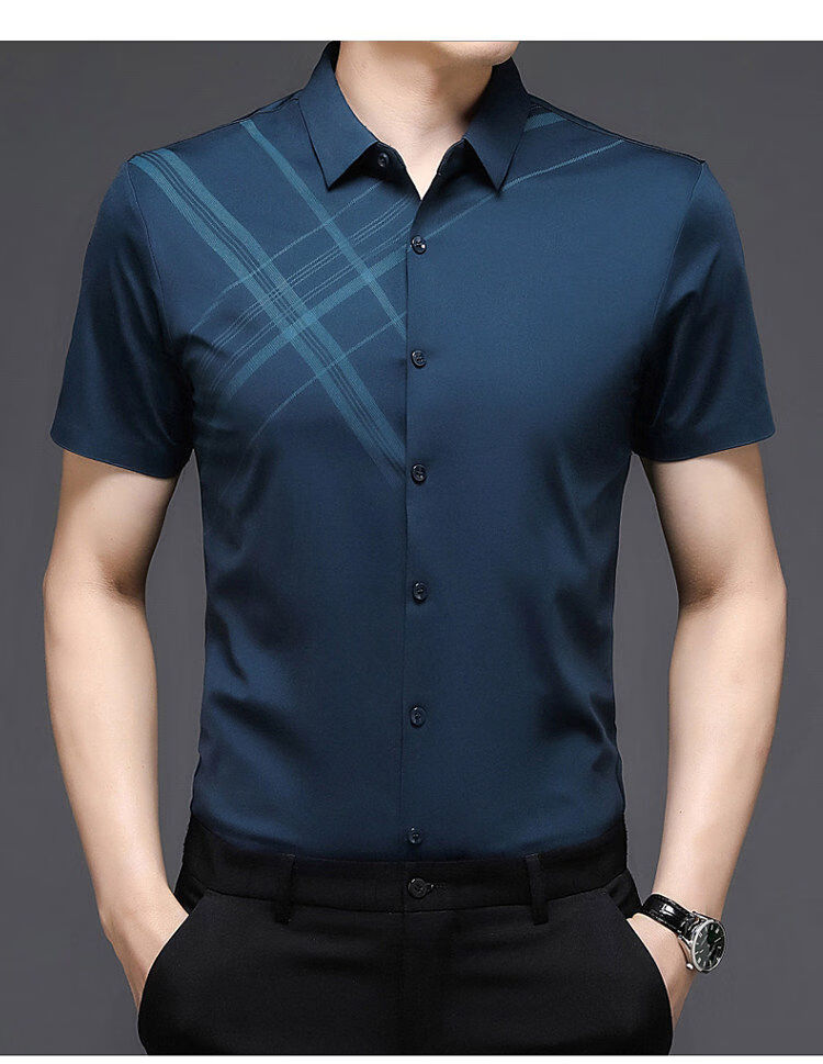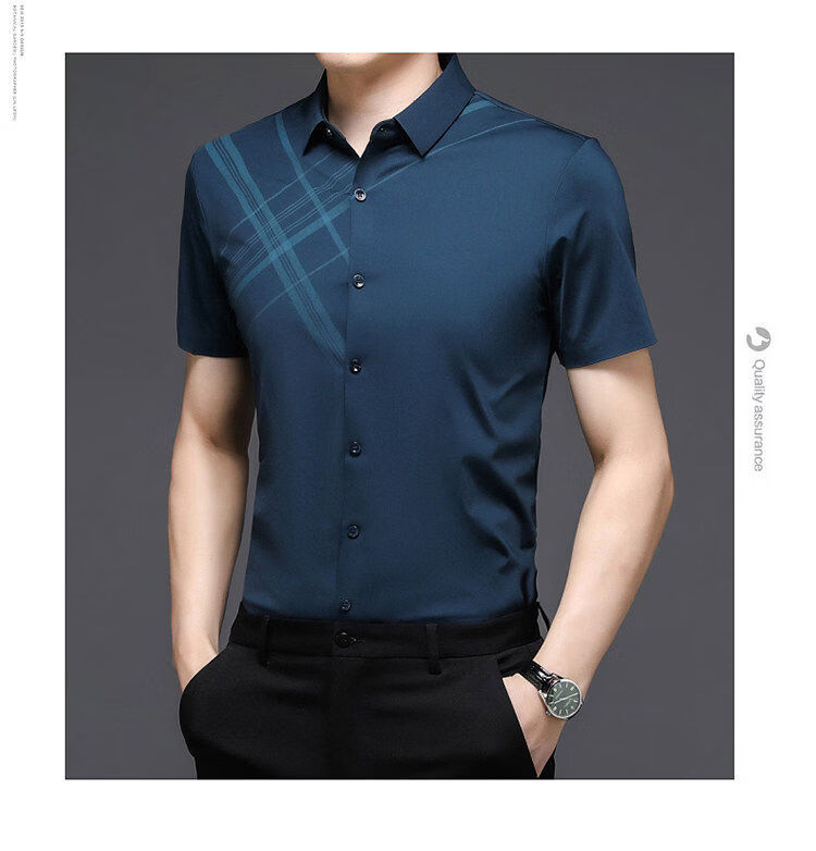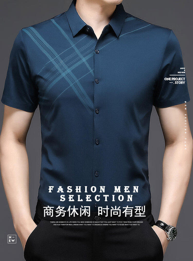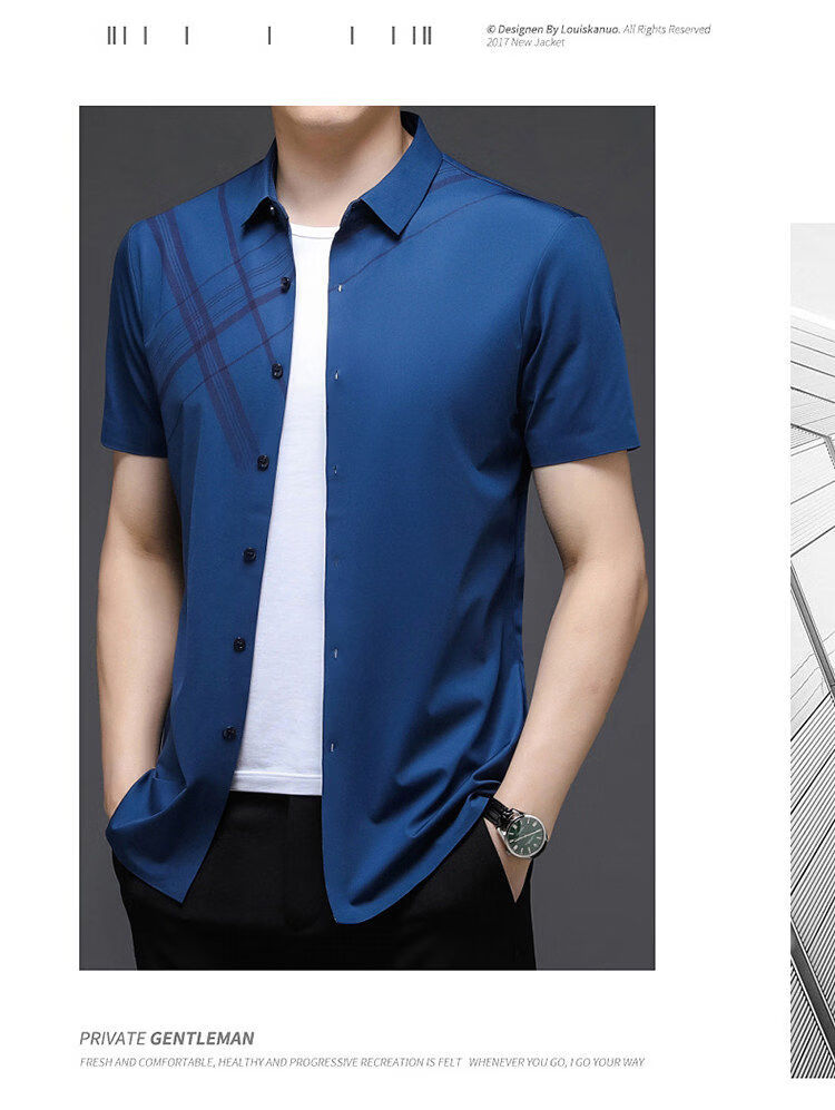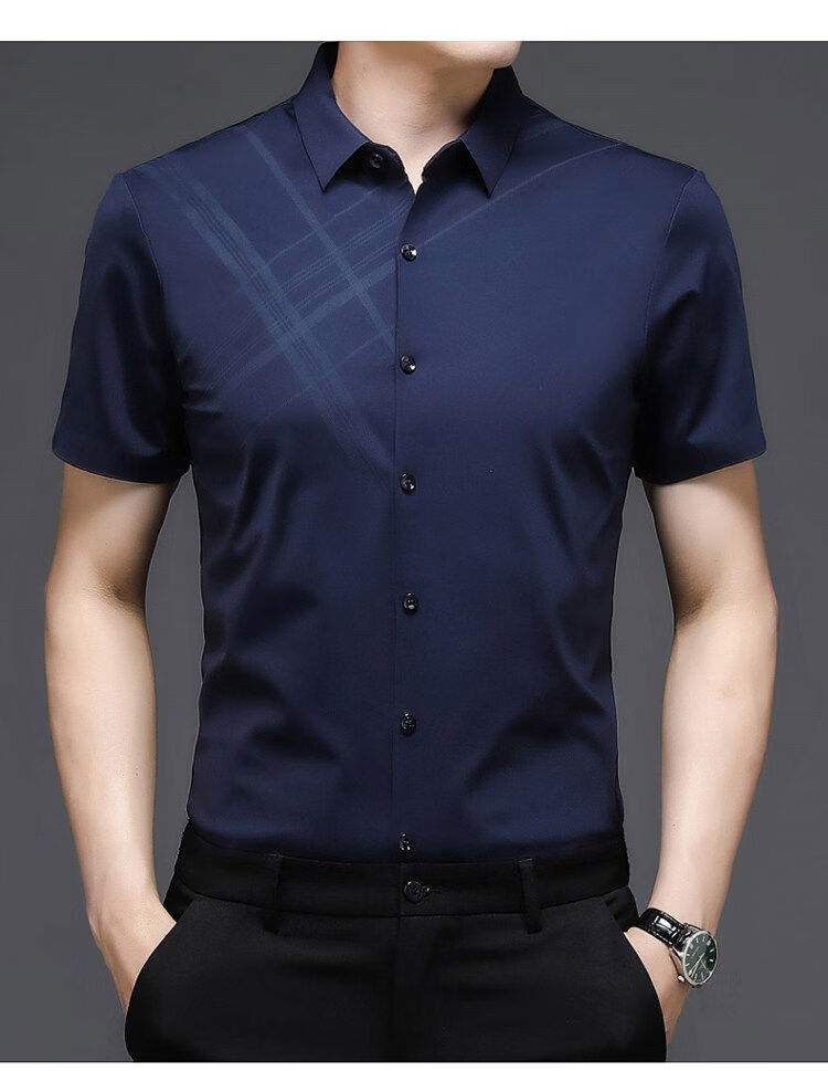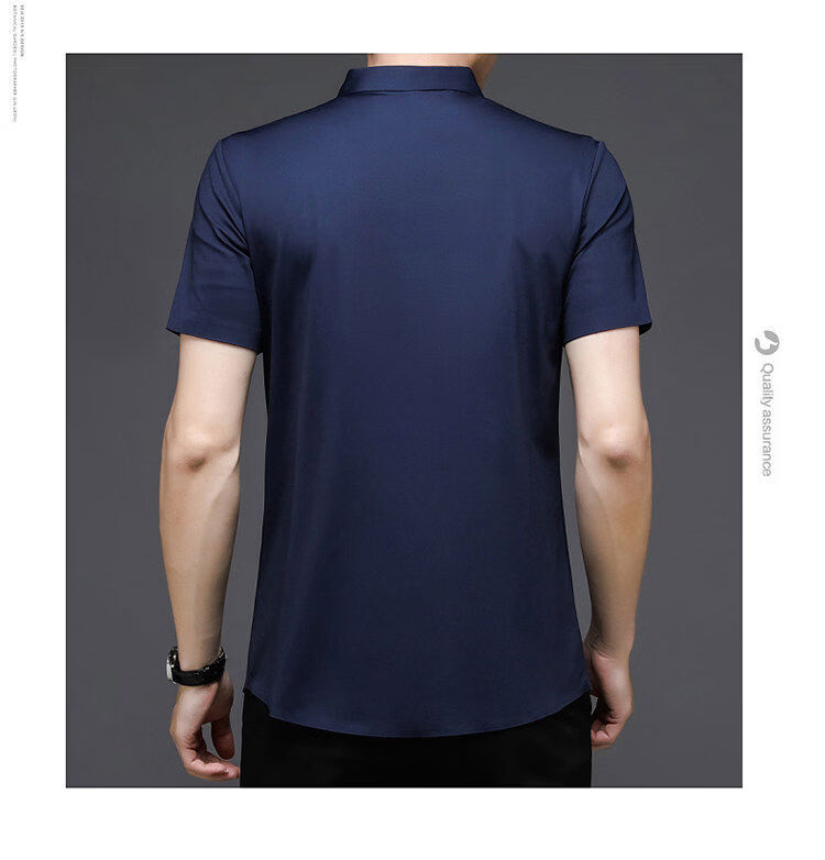 阿玛尼(ARMANI)商务男装短袖衬衫高端桑蚕丝休闲凉感衬衣 9996深蓝-桑蚕丝 3XL 190【建议180-210斤】