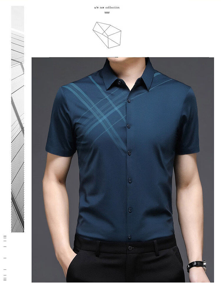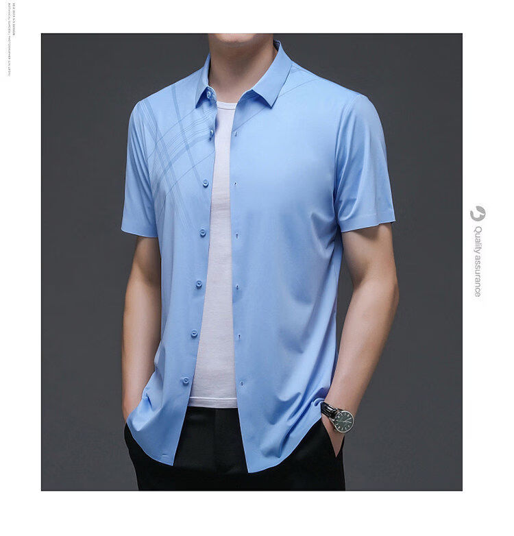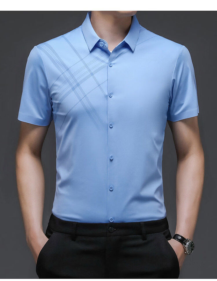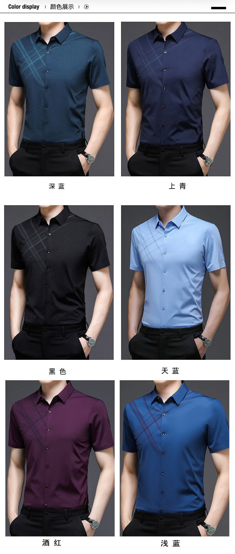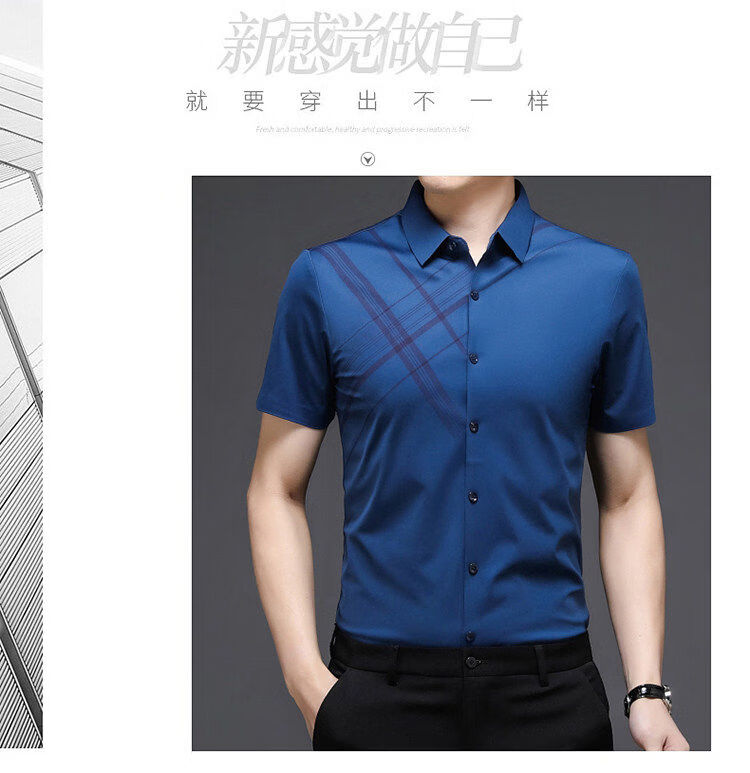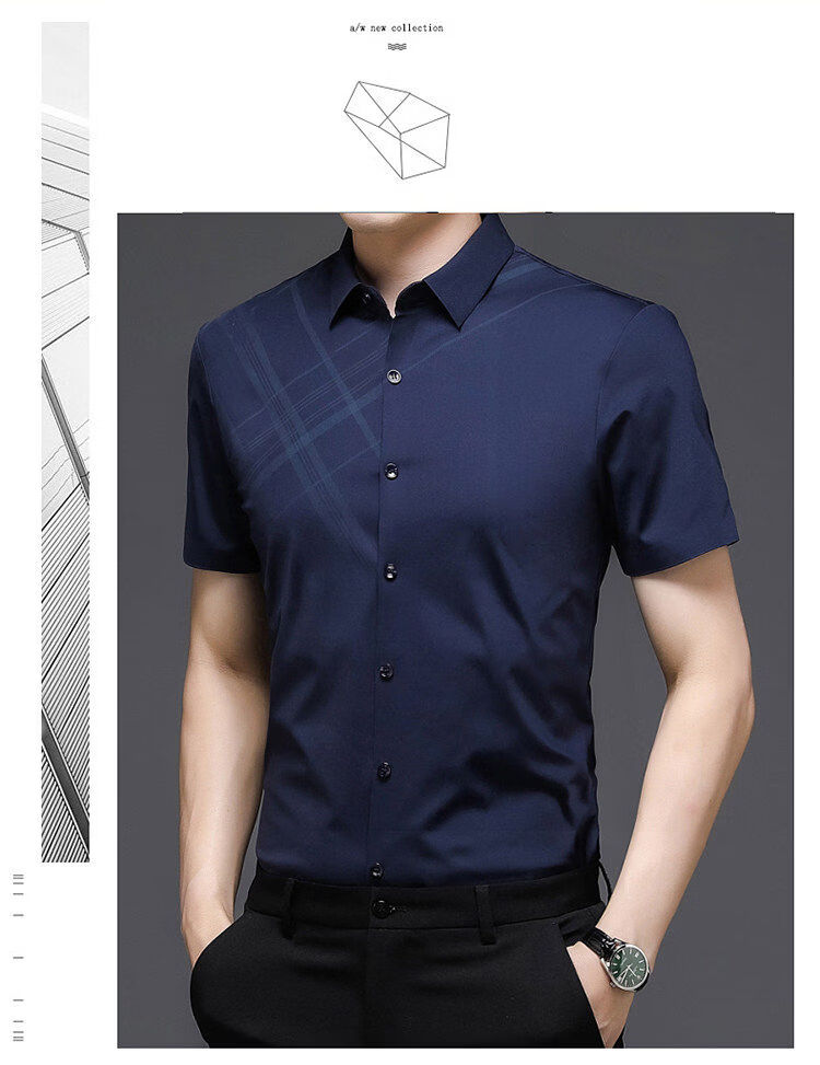 阿玛尼(ARMANI)商务男装短袖衬衫高端桑蚕丝休闲凉感衬衣 9996深蓝-桑蚕丝 3XL 190【建议180-210斤】