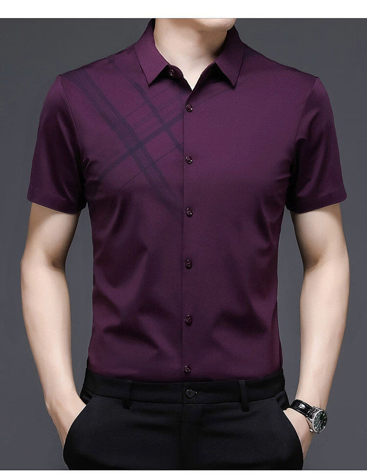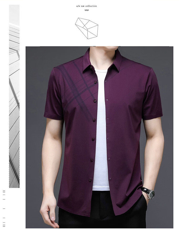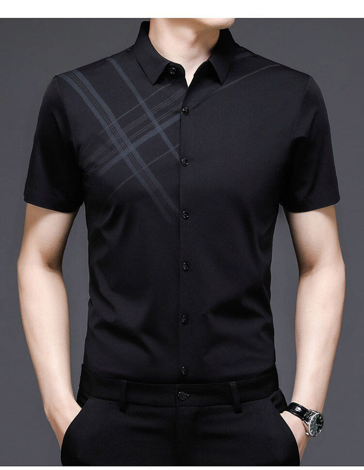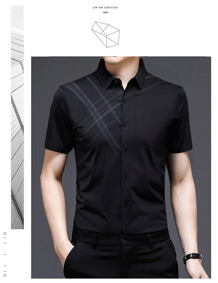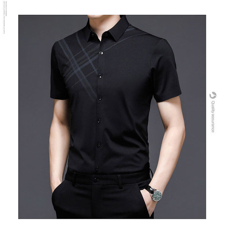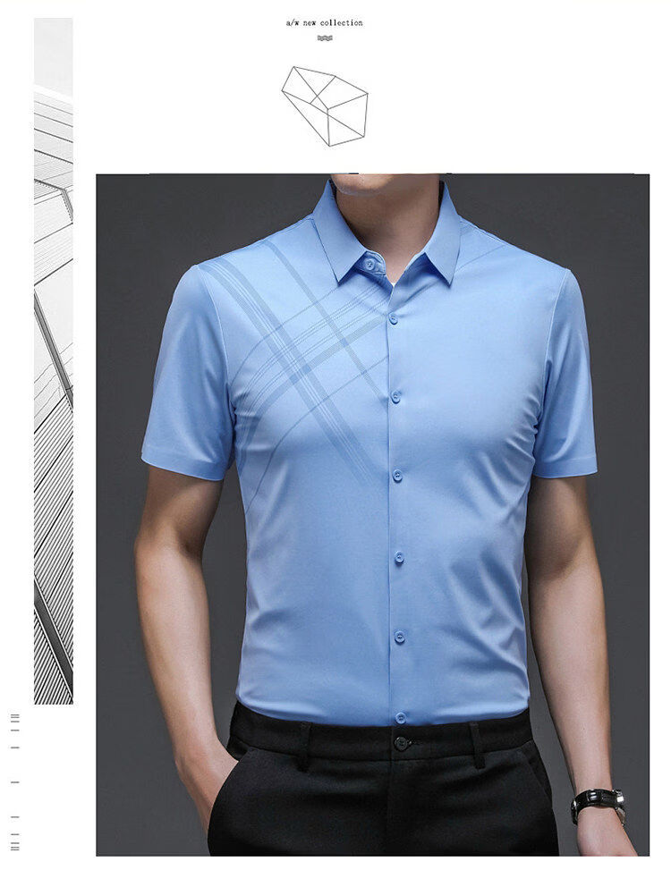 阿玛尼(ARMANI)商务男装短袖衬衫高端桑蚕丝休闲凉感衬衣 9996深蓝-桑蚕丝 3XL 190【建议180-210斤】