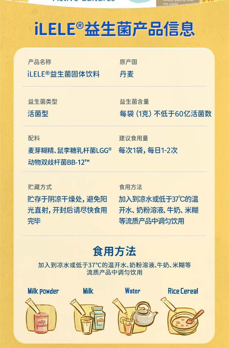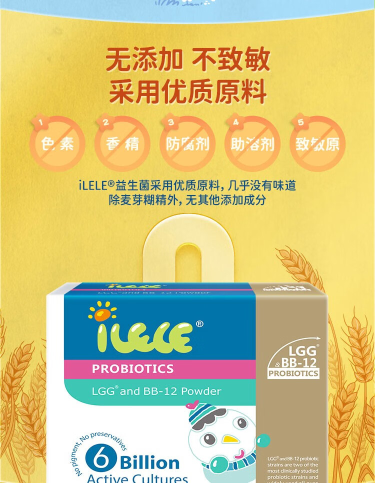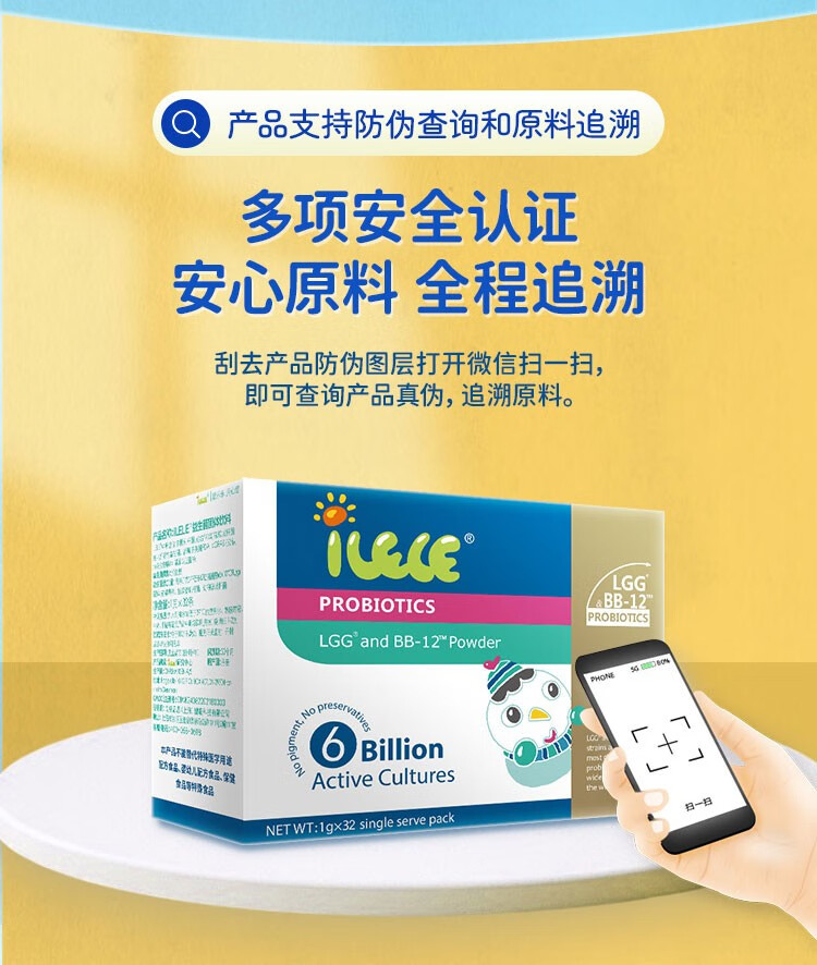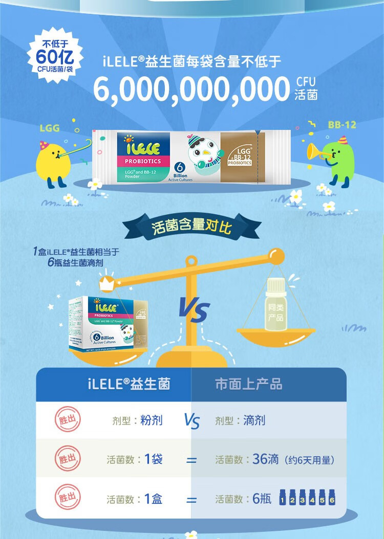 iLELE爱乐乐 益生菌婴儿 宝宝肠胃益生菌 鼠李糖乳杆菌LGG双歧杆菌BB12 【6周囤货装】96袋 0岁可用丨 32条*3盒