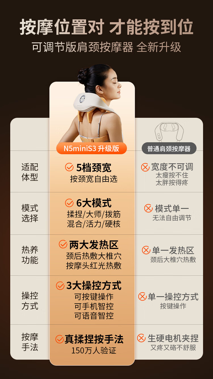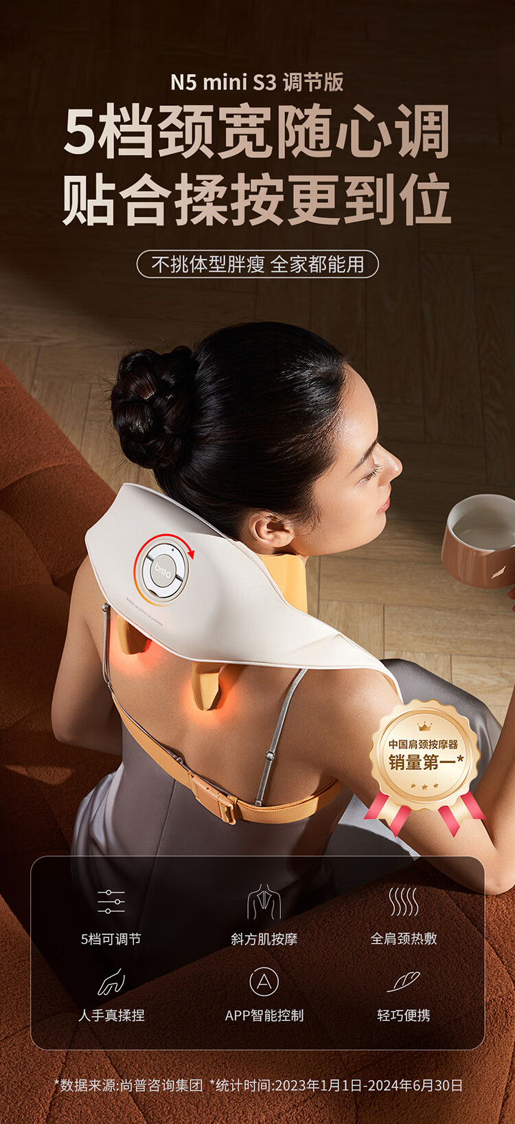 倍轻松N5miniS3【颈宽可调节】颈椎按摩器按摩披肩肩颈按摩器腿腰颈部 送男女朋友生日圣诞礼物