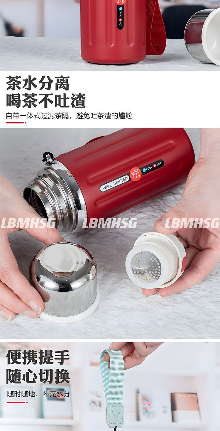 泰禧阁不锈钢保温杯高颜值男女水杯大容量茶水分离泡茶杯便捷户外罗马杯 大钢炮-氧气绿600ML 【智能显温款】