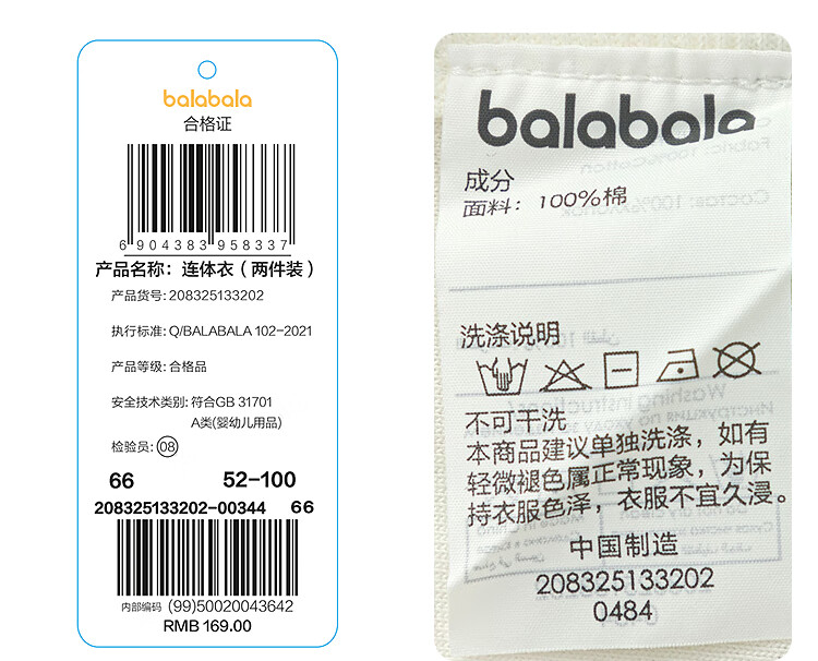 巴拉巴拉婴儿连体衣宝宝睡衣新生儿爬服哈衣2025全棉两件装萌208325133202