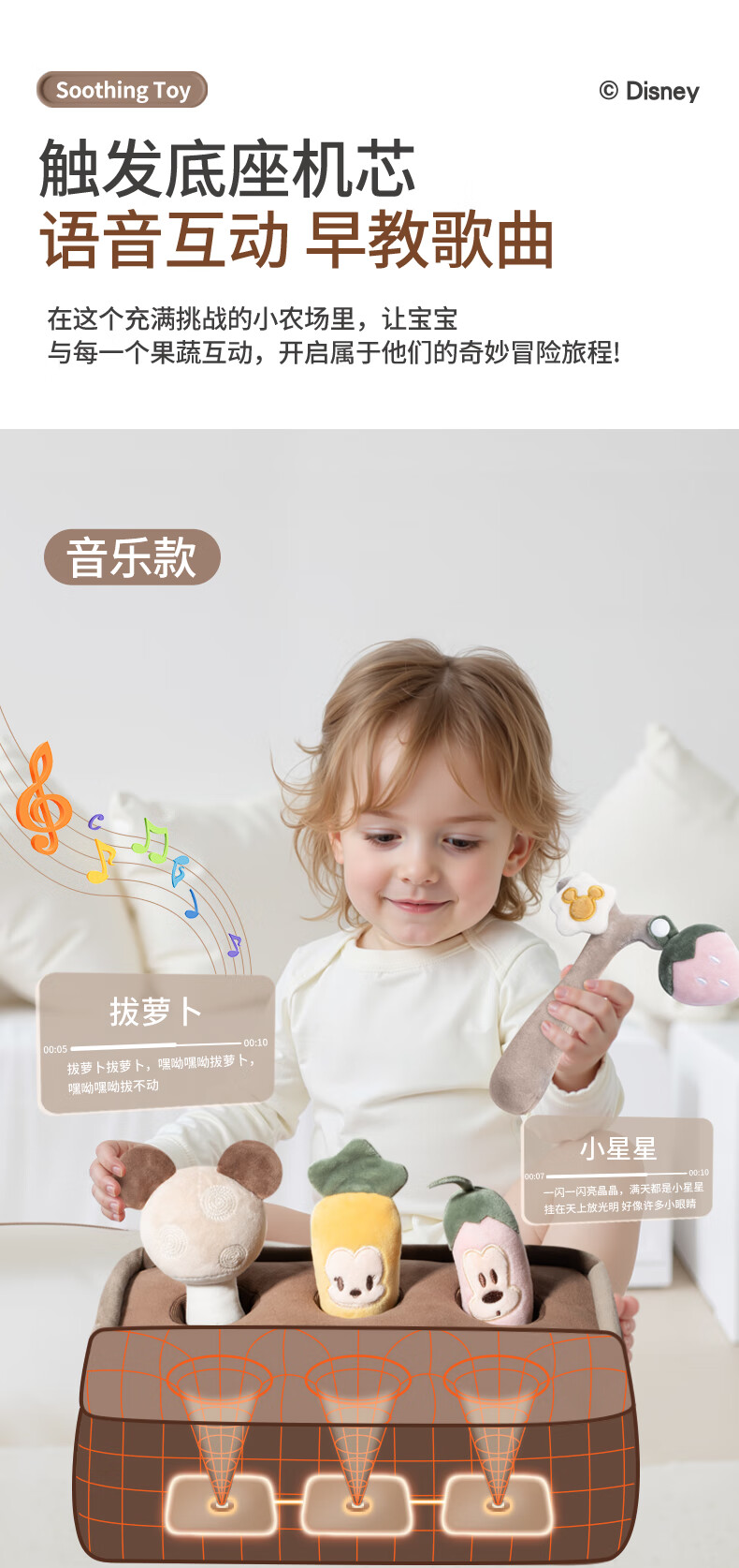 迪士尼拔萝卜玩具婴儿过家家可啃咬宝宝早教训练抽纸玩具送礼物