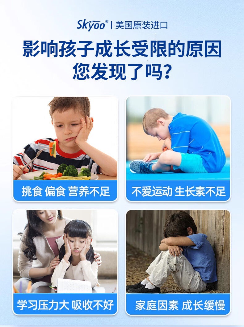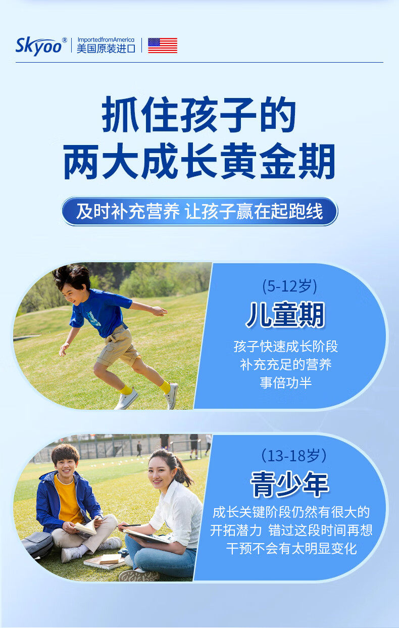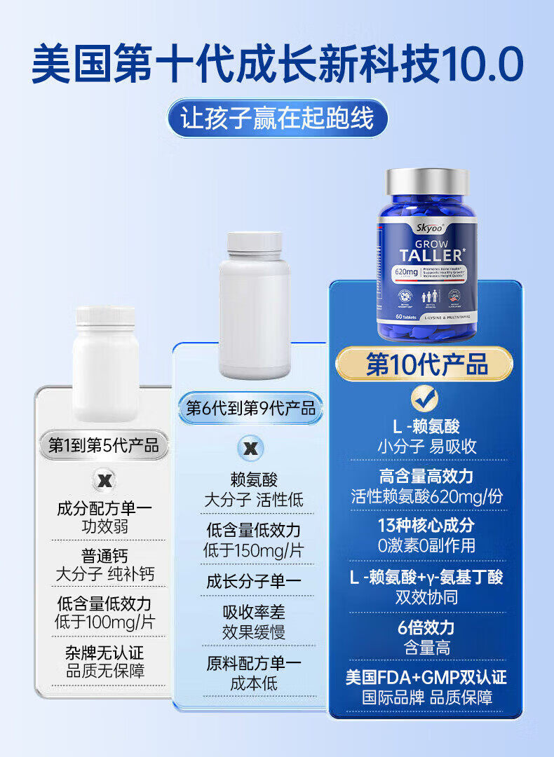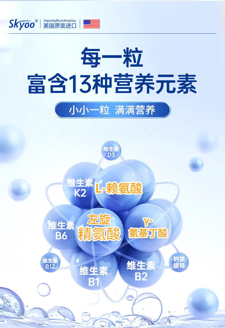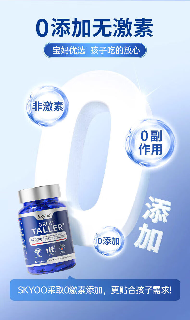 Skyoo美国进口赖氨酸钙片青少年补钙助长维生素k2d3氨基丁酸生长 1瓶【体验装】 1瓶*1瓶