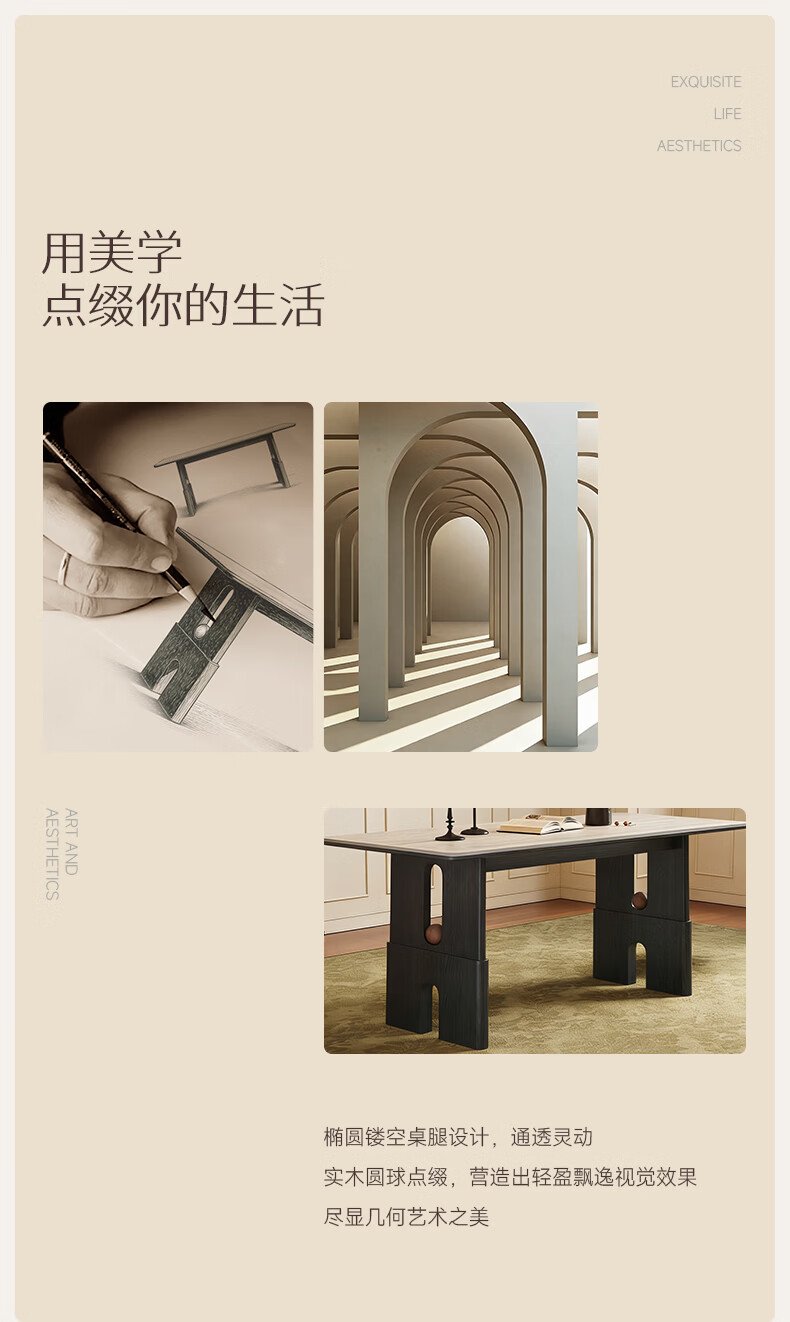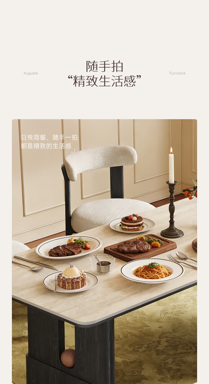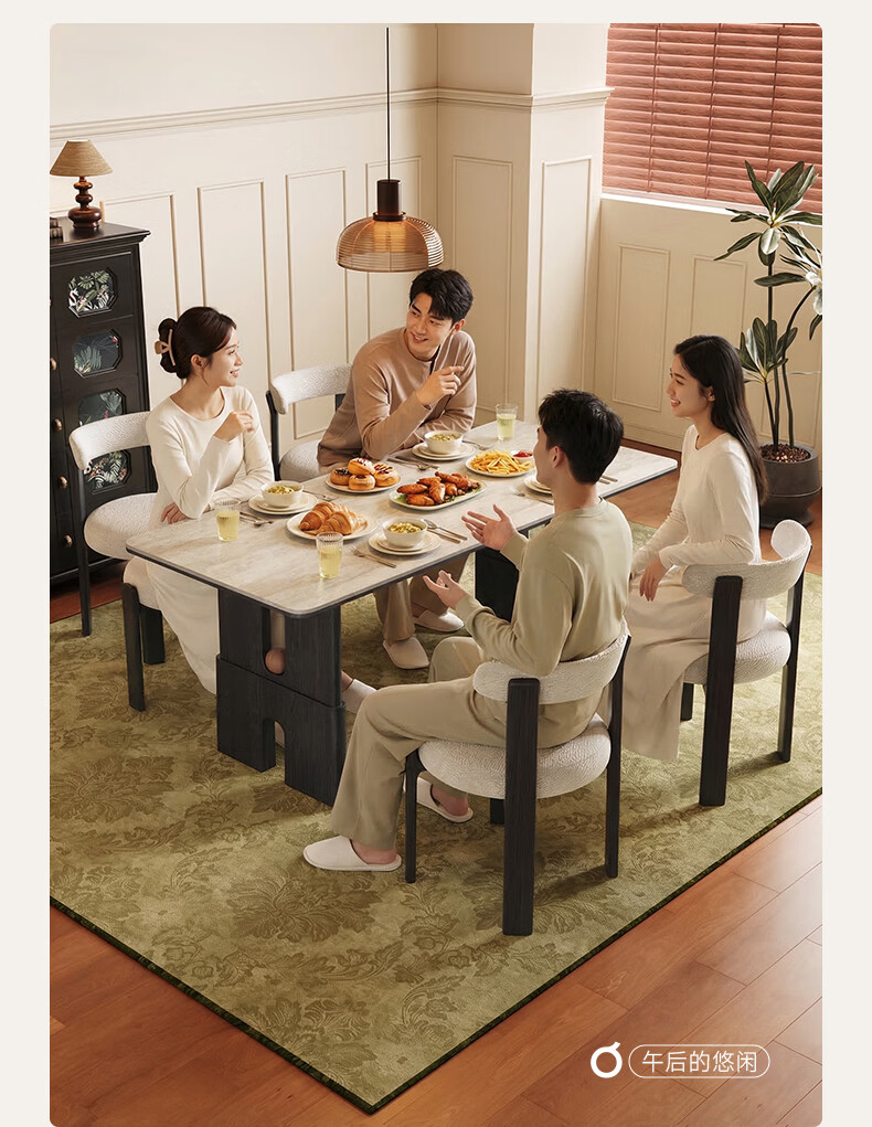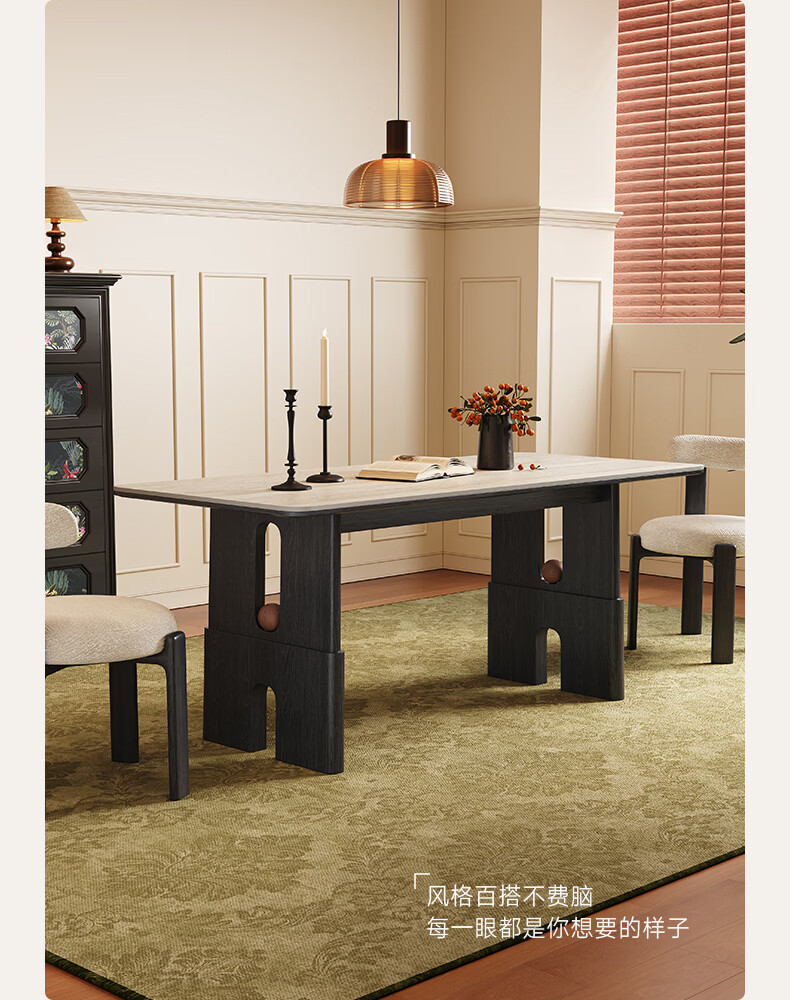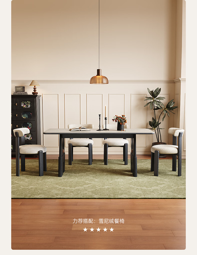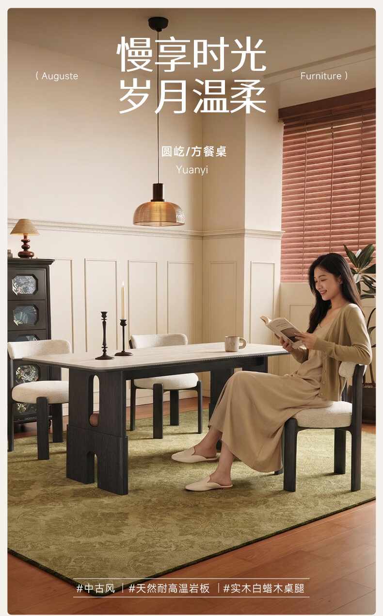 AUGUSTE奥古斯特实木餐桌长方形2026新款小户型复古中古风洞石岩板餐桌 1.6米+4椅(圆屹餐桌)