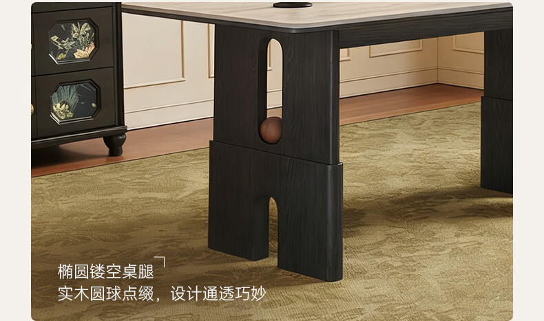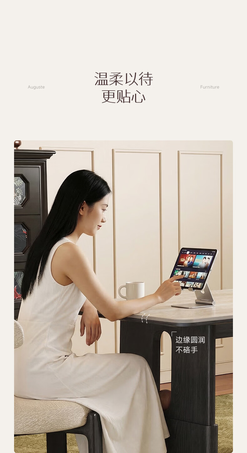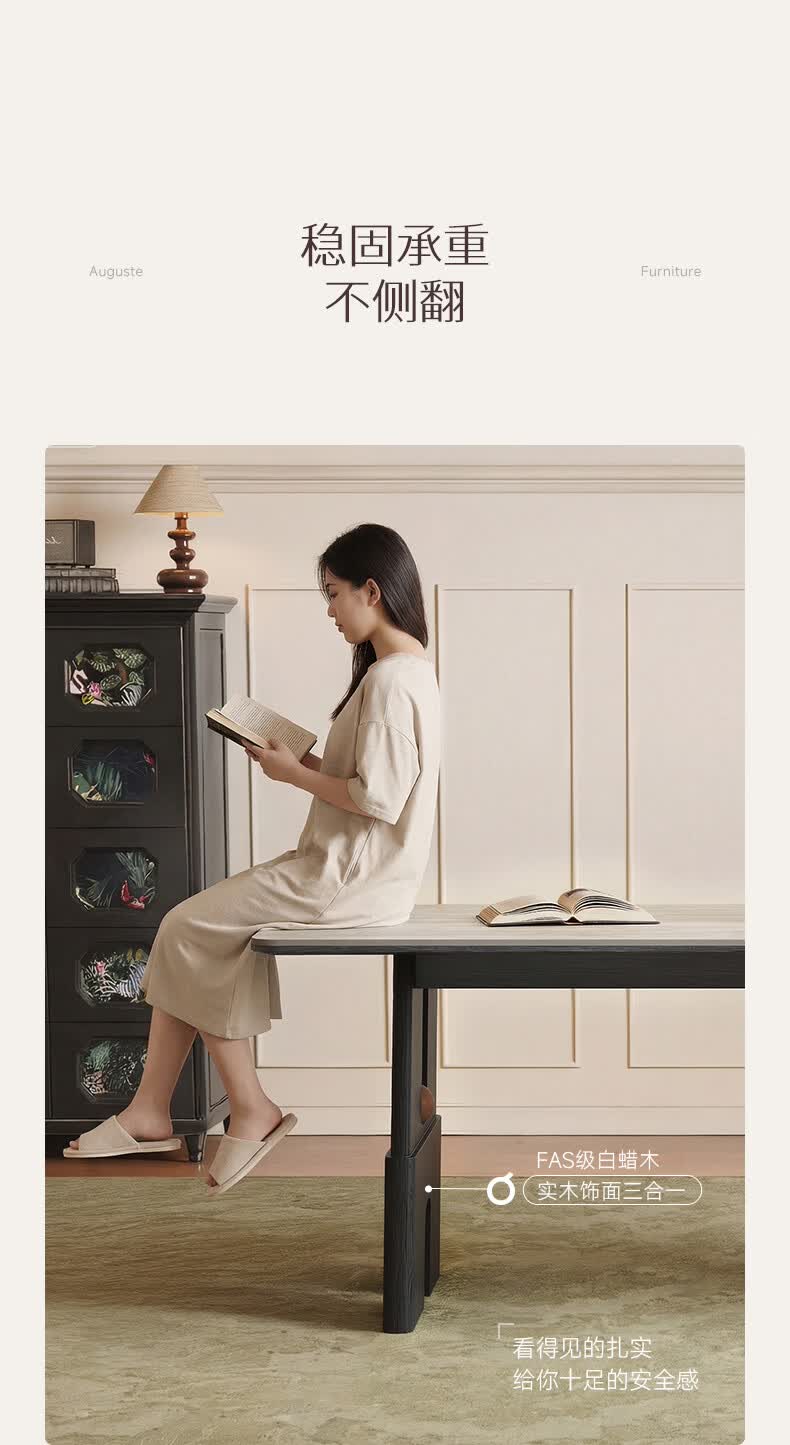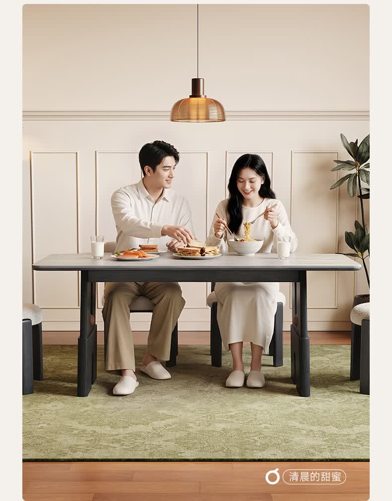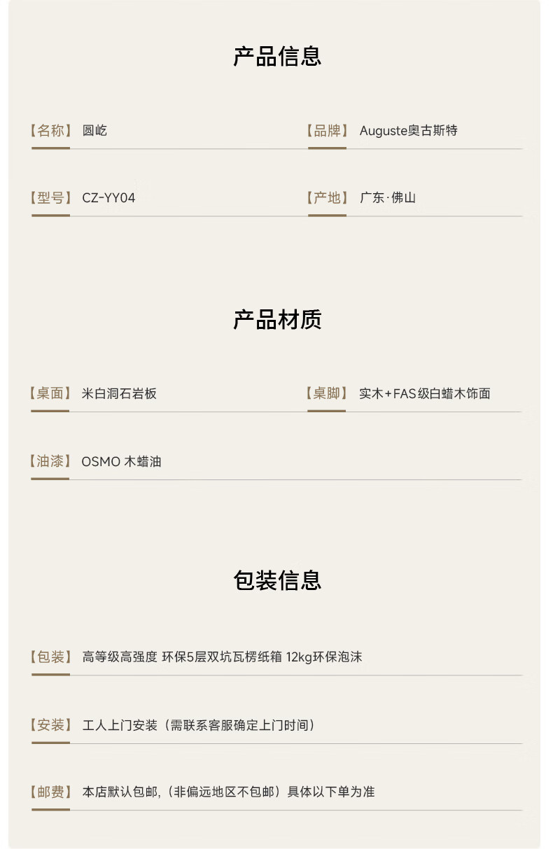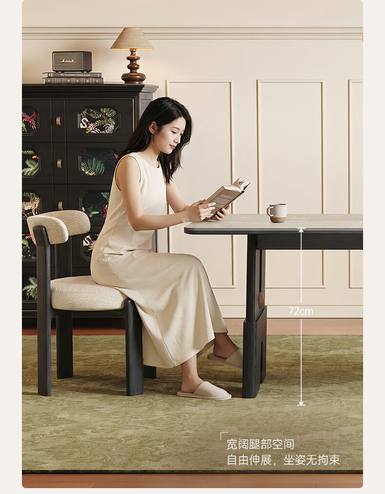 AUGUSTE奥古斯特实木餐桌长方形2026新款小户型复古中古风洞石岩板餐桌 1.6米+4椅(圆屹餐桌)