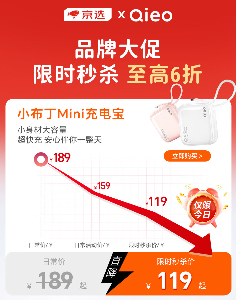 Qieo【3c认证丨可上飞机高铁】充电宝小巧便携20000毫安自带线轻薄迷你移动电源 超级快充华为苹果 1w毫安【超小巧+自带C线】标准版 云雾白