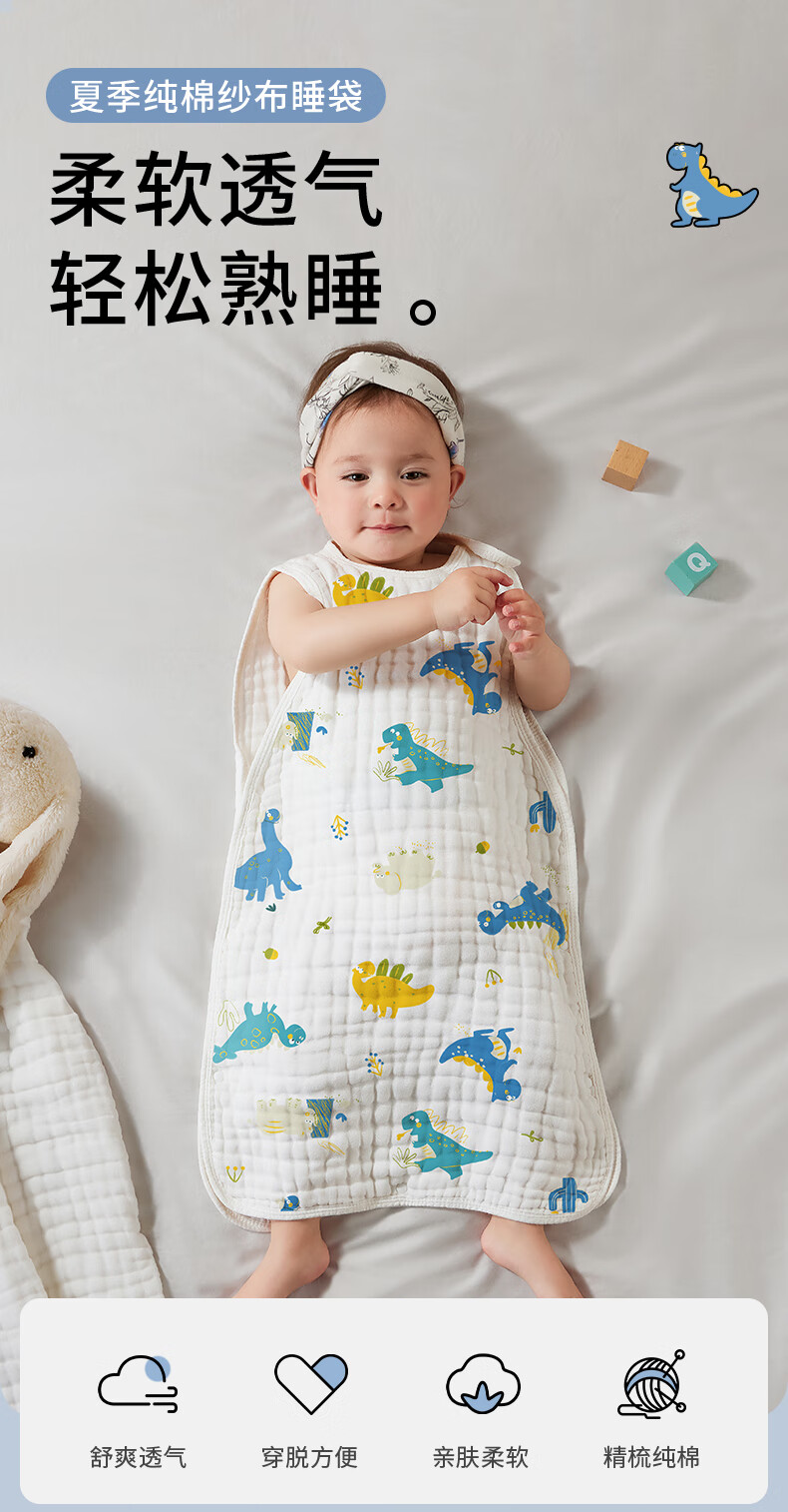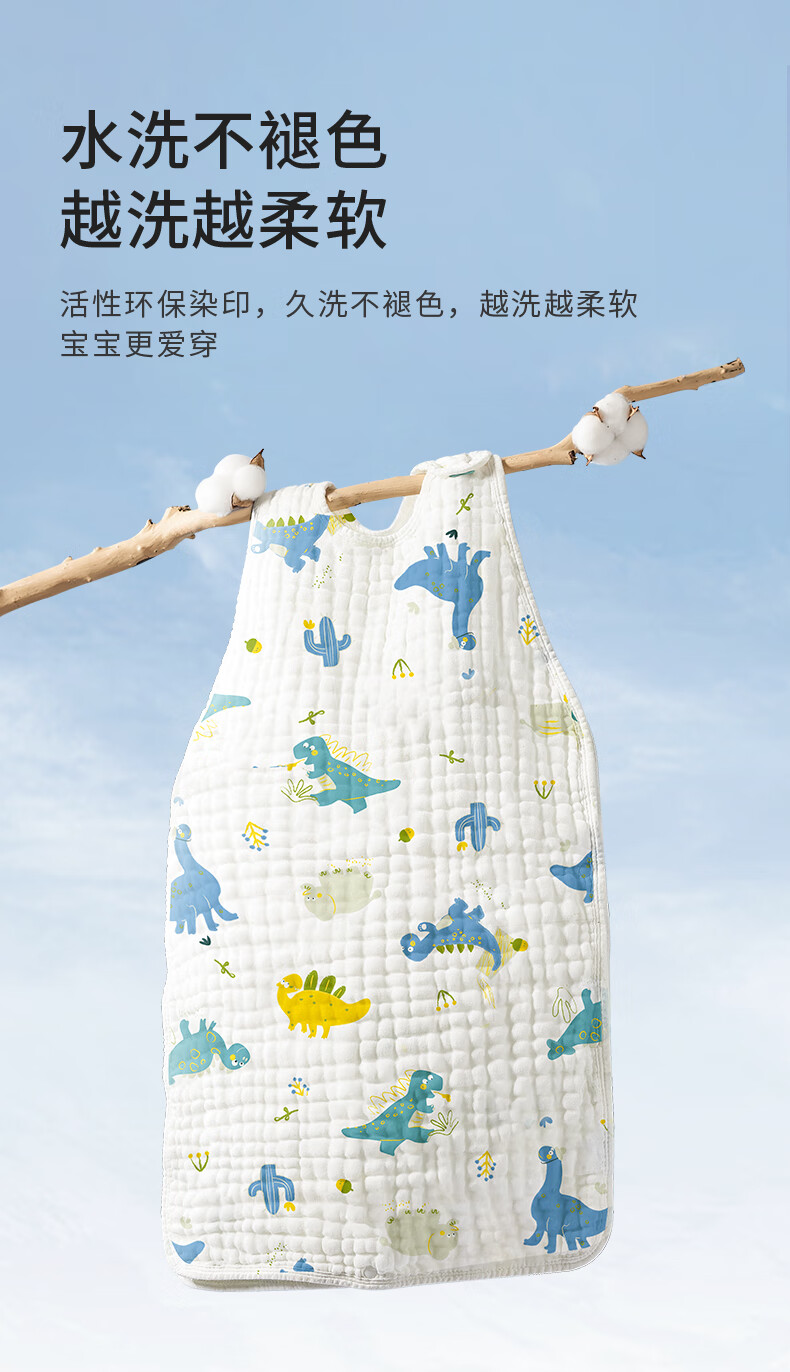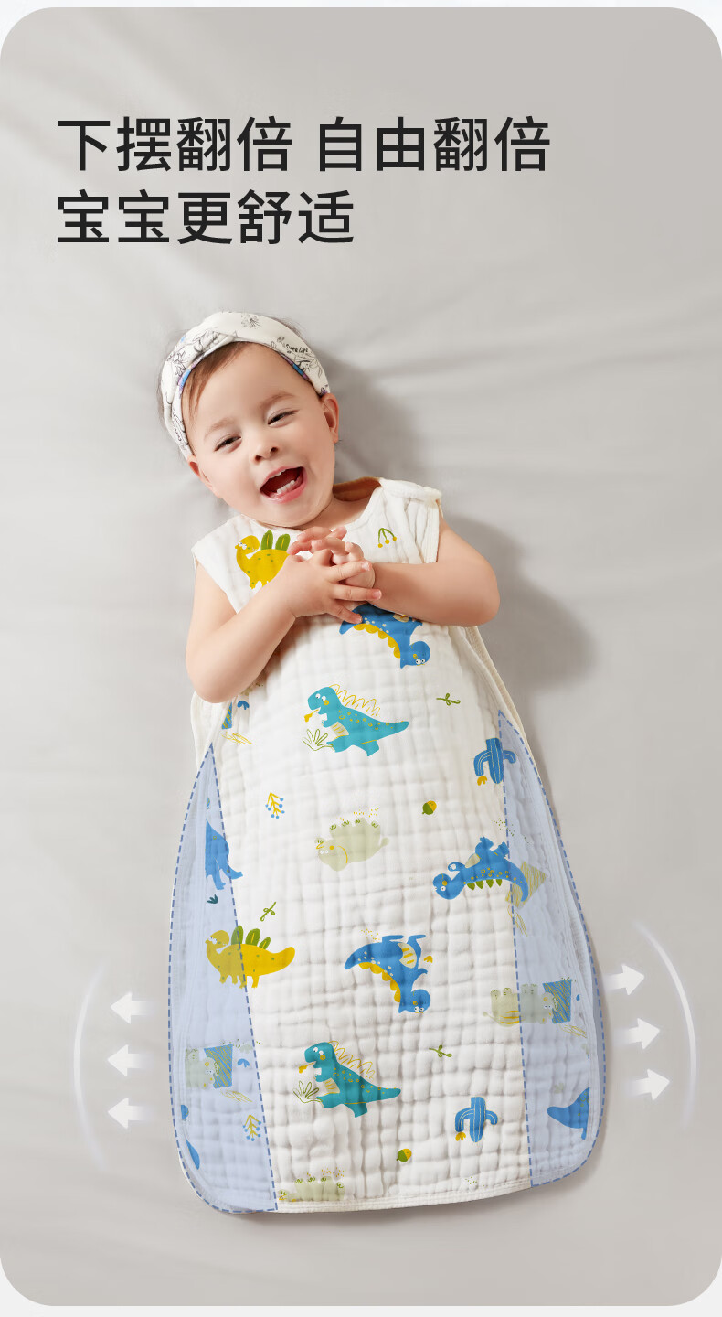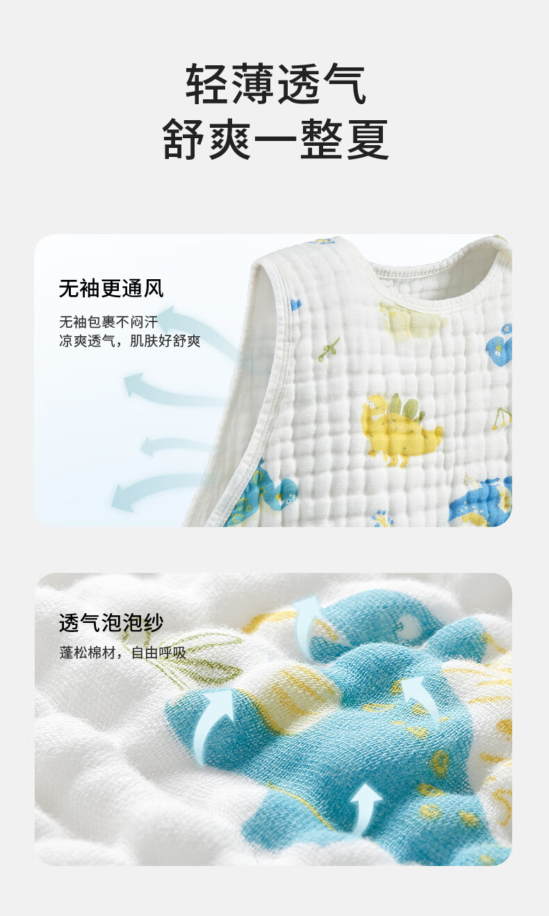 柯斯德尼(kidsneed)婴儿睡袋新生儿薄款纯棉纱布无袖背心睡袋宝宝空调房防踢被四层