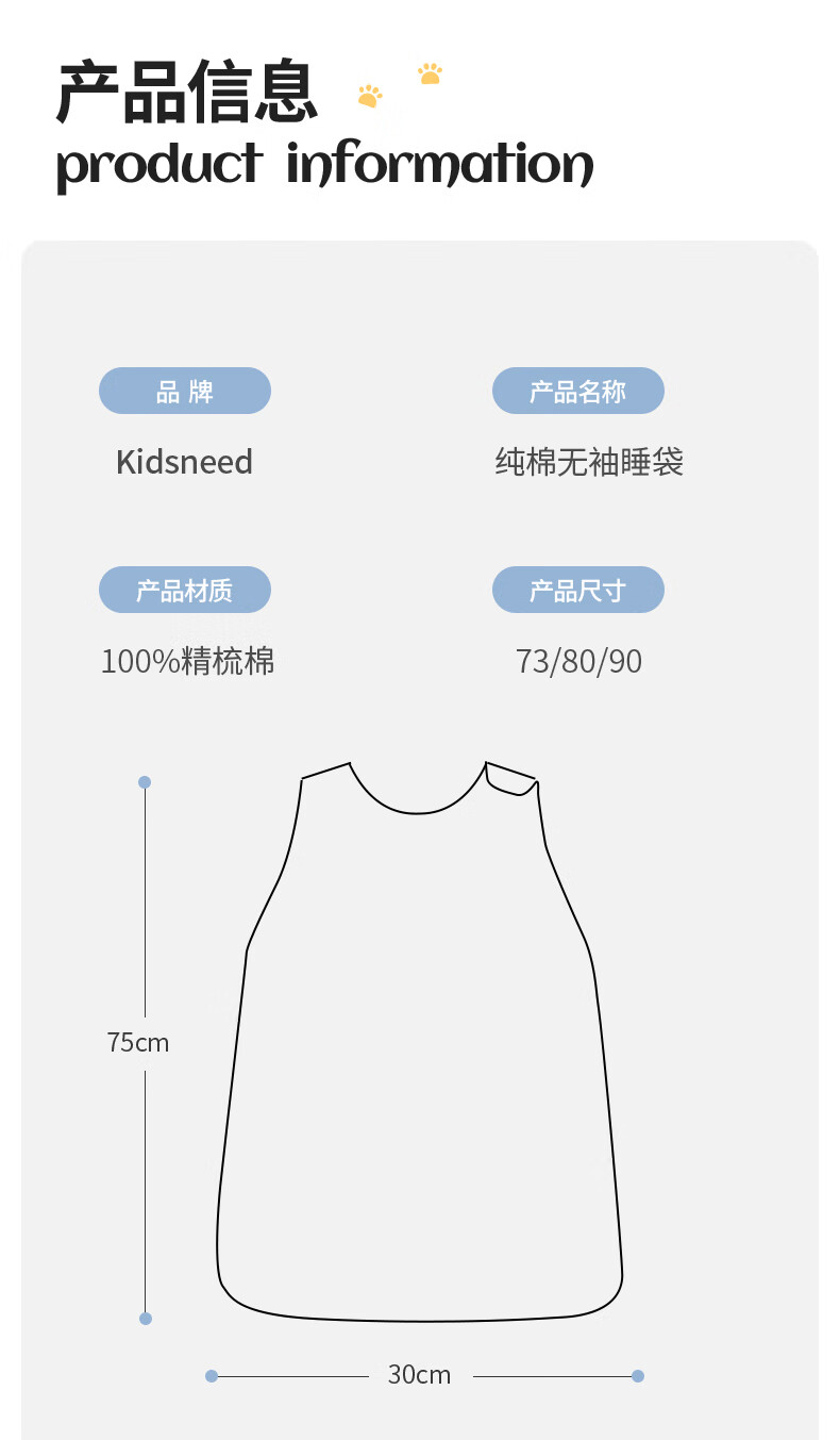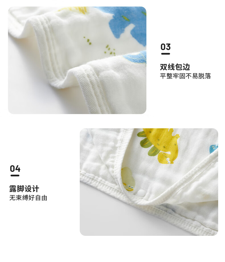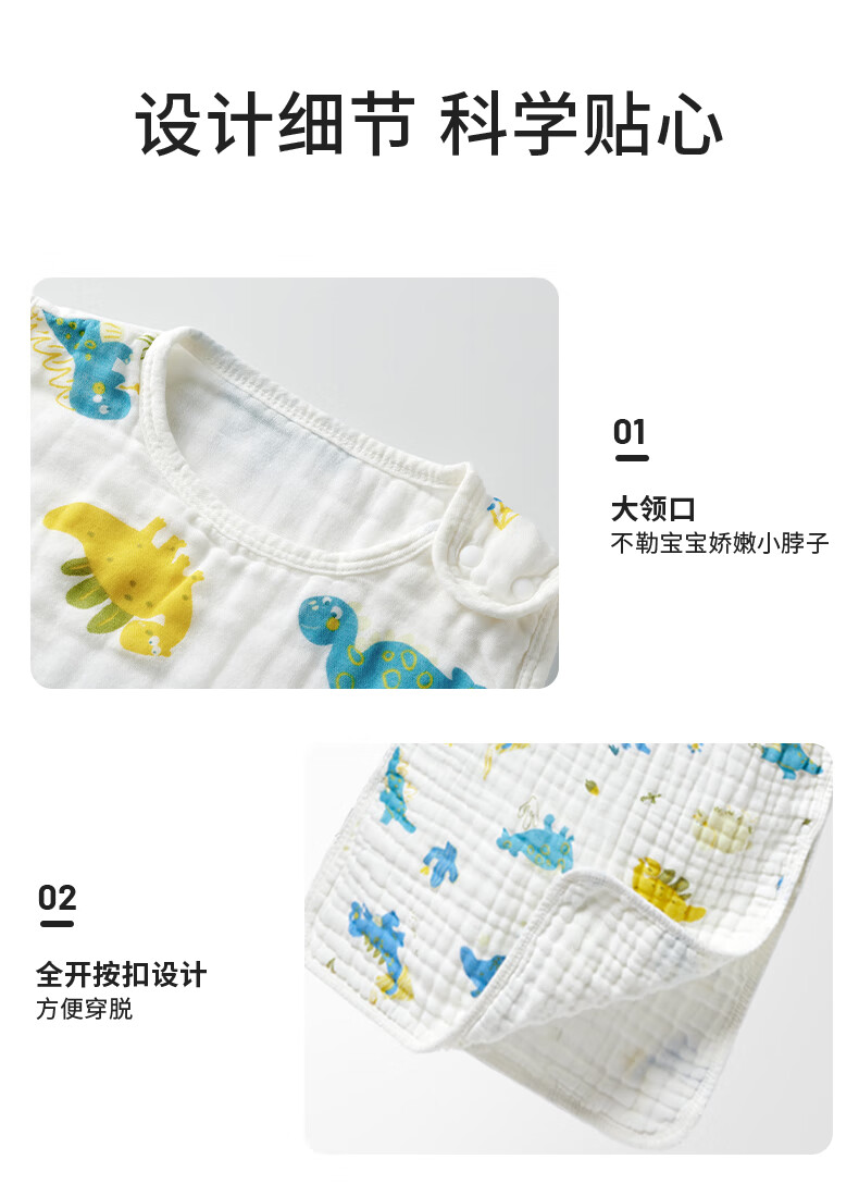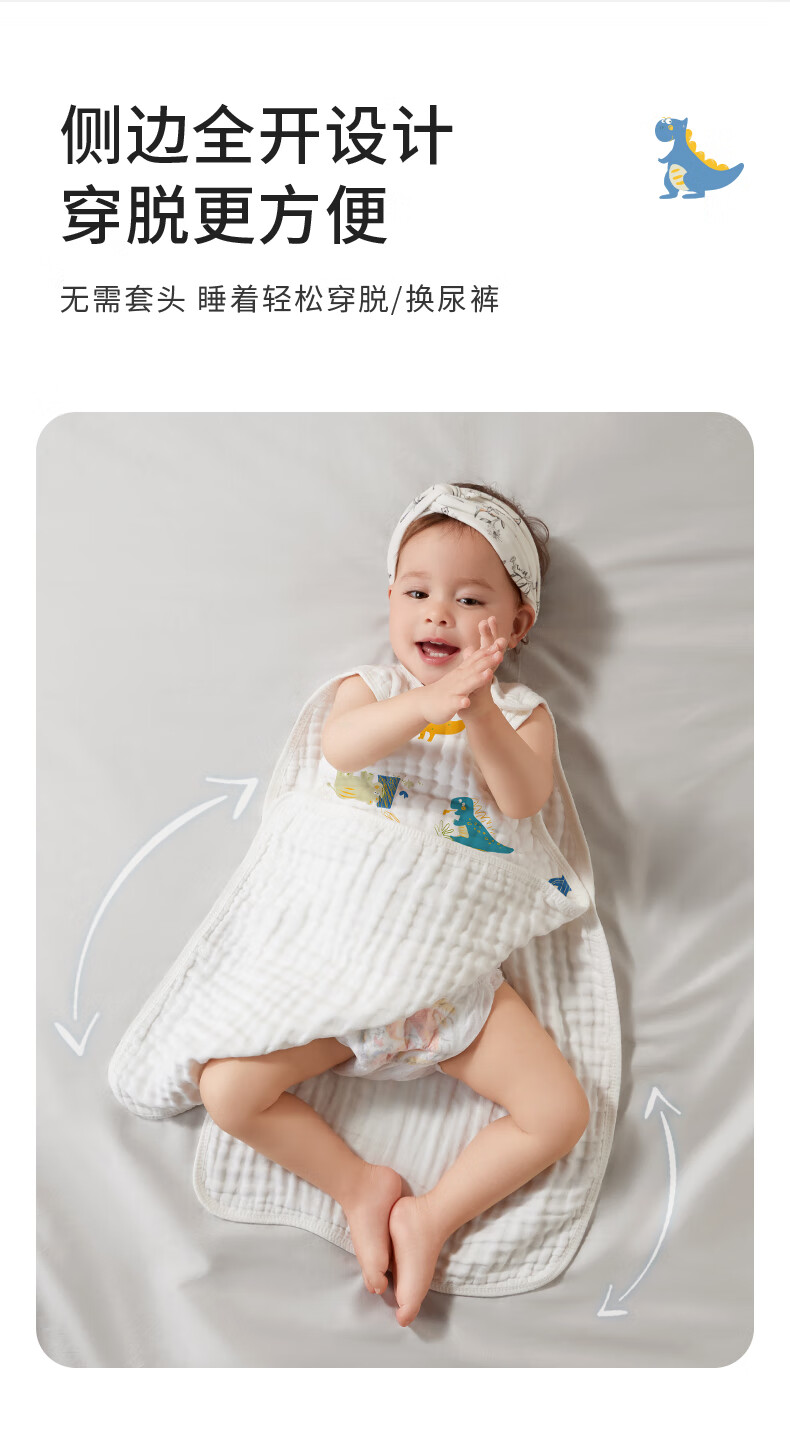 柯斯德尼(kidsneed)婴儿睡袋新生儿薄款纯棉纱布无袖背心睡袋宝宝空调房防踢被四层