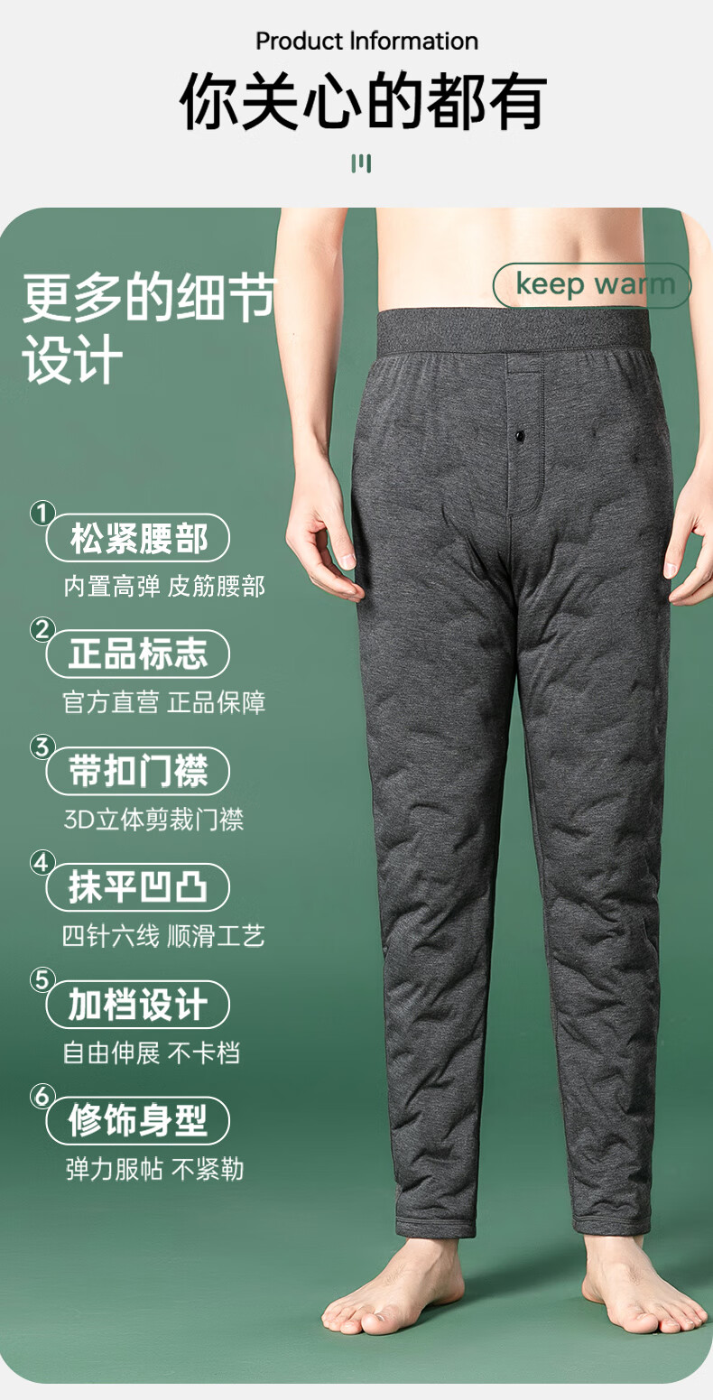 猫人(MiiOW)2025新款鹅绒裤男内穿冬季内胆零下50°中老年加厚保暖绒爸爸棉裤 【常规版 】 5XL