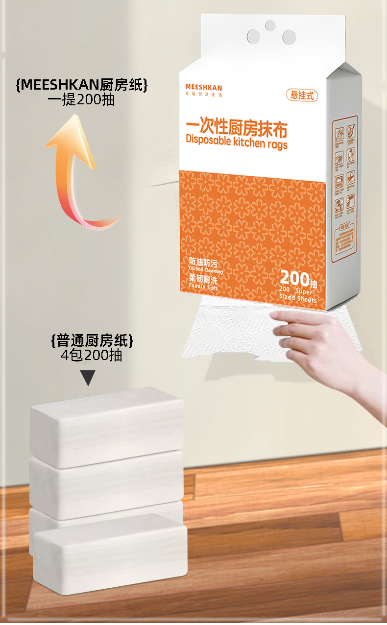 MEESHKAN一次性200抽可水洗抽取式厨房纸巾悬挂式洗碗布 悬挂式懒人抹布