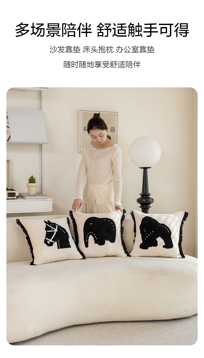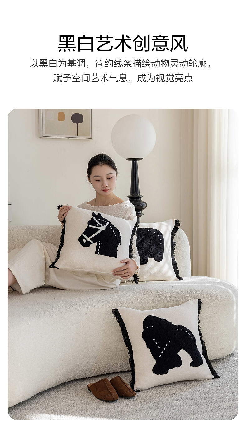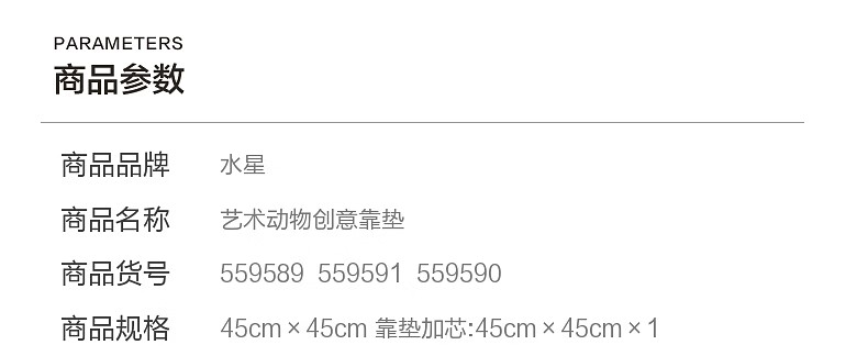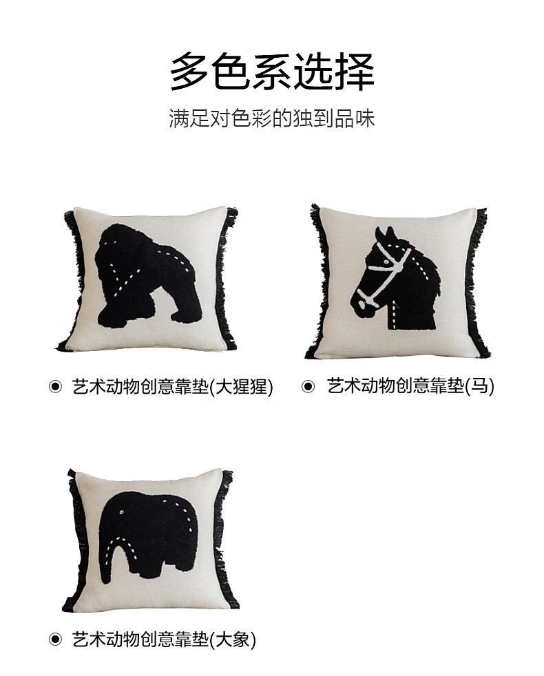水星家纺艺术动物创意靠垫 艺术动物创意靠垫(漂白色) 45cm*45cm*18cm 含枕芯