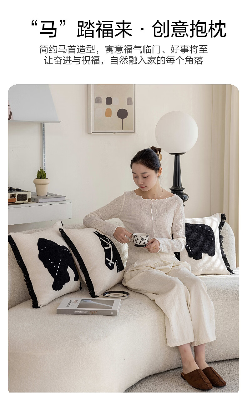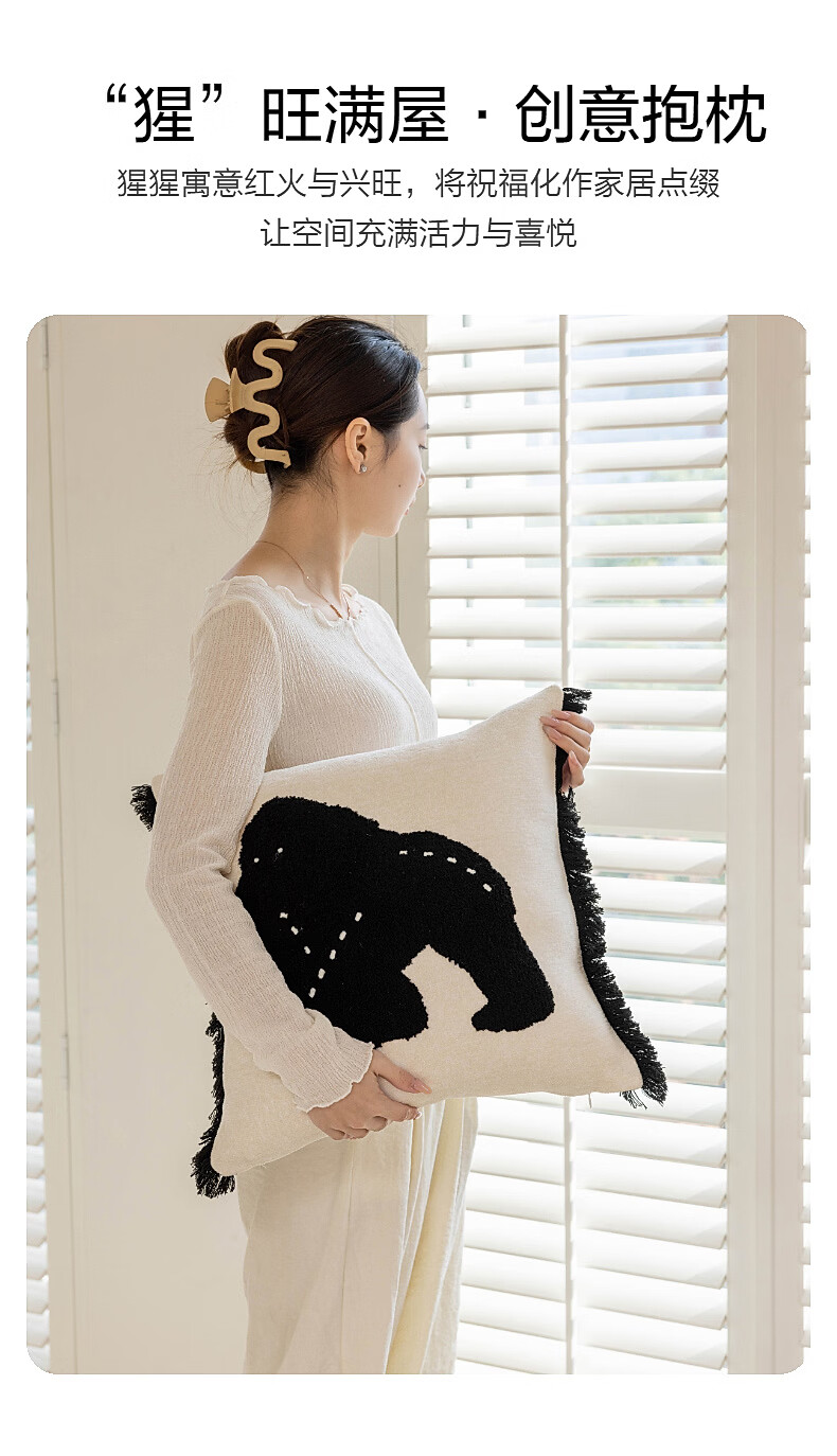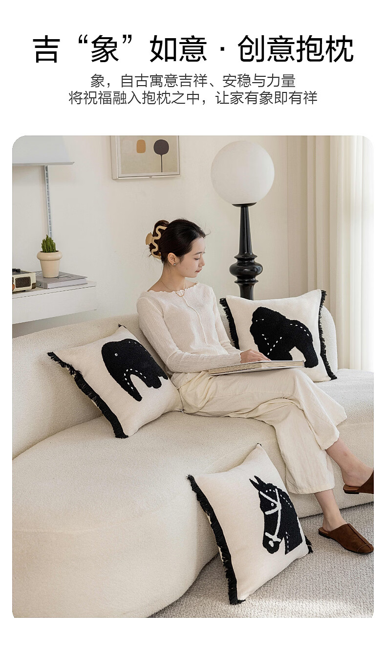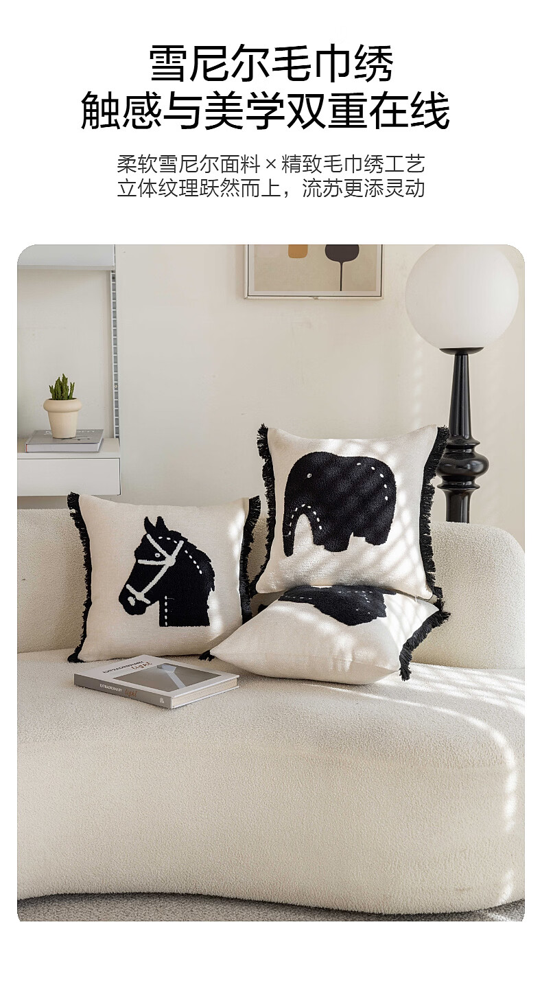 水星家纺艺术动物创意靠垫 艺术动物创意靠垫(漂白色) 45cm*45cm*18cm 含枕芯