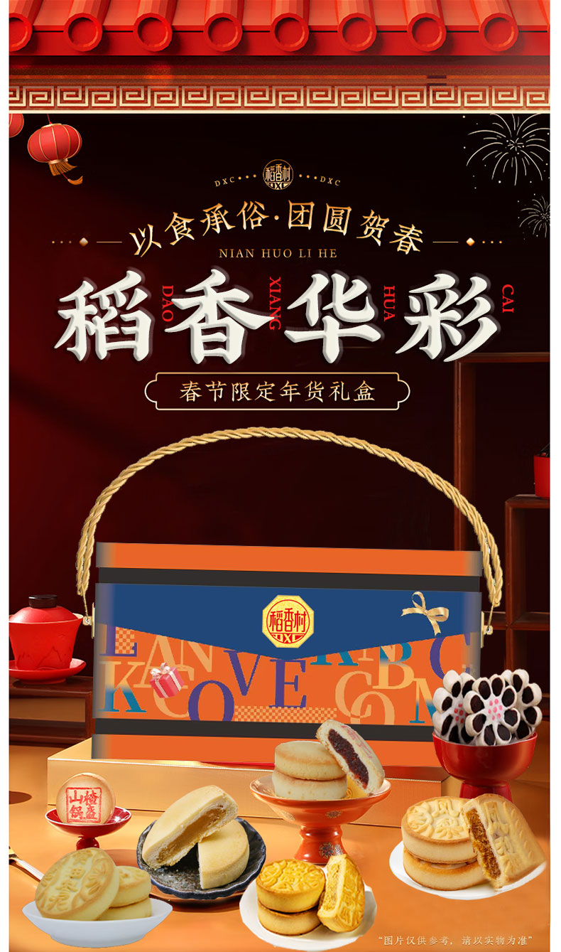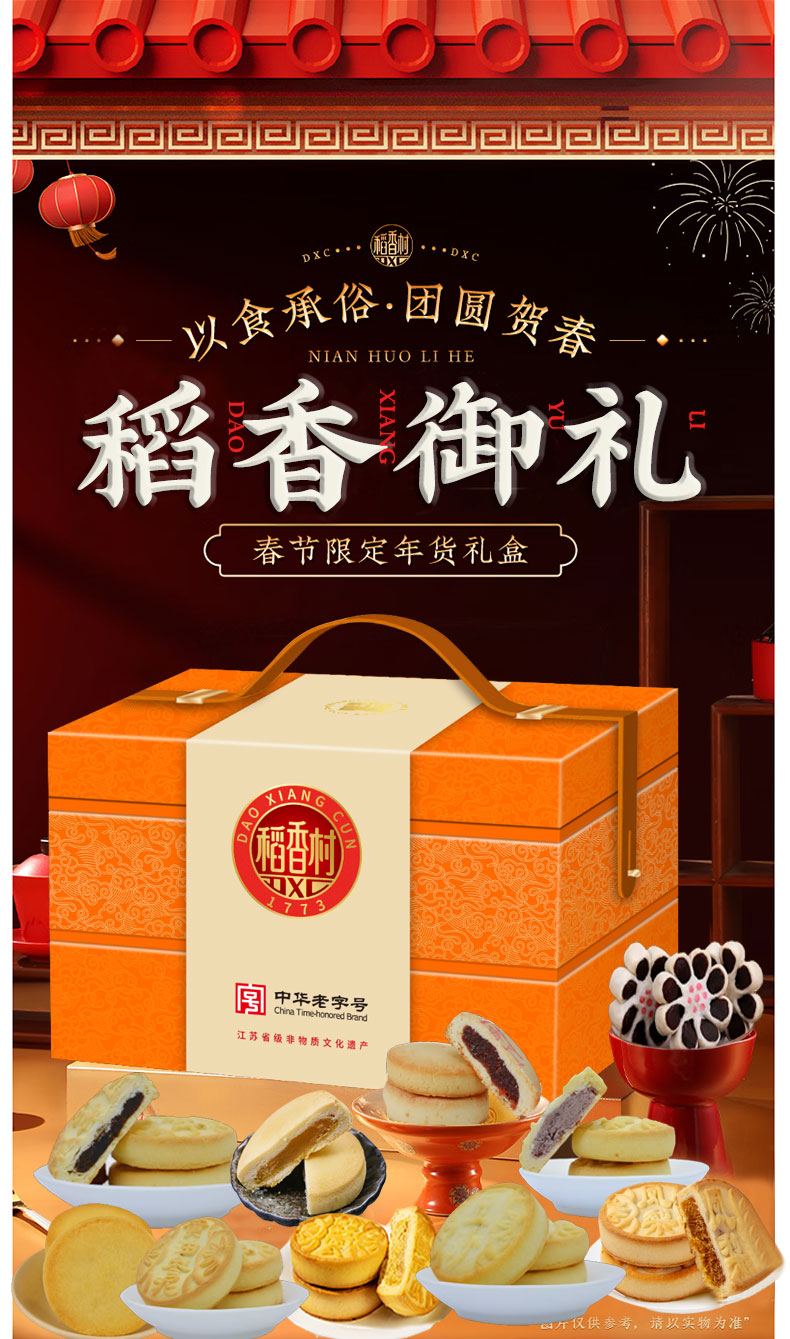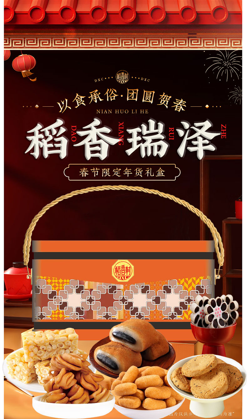 稻香村糕点礼盒年货节传统京八件点心多种口味礼盒 聚团圆450g礼盒