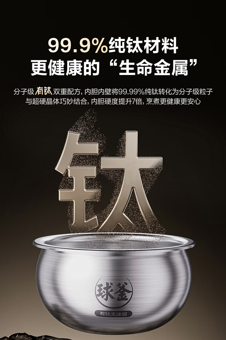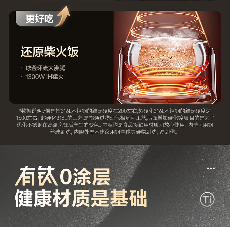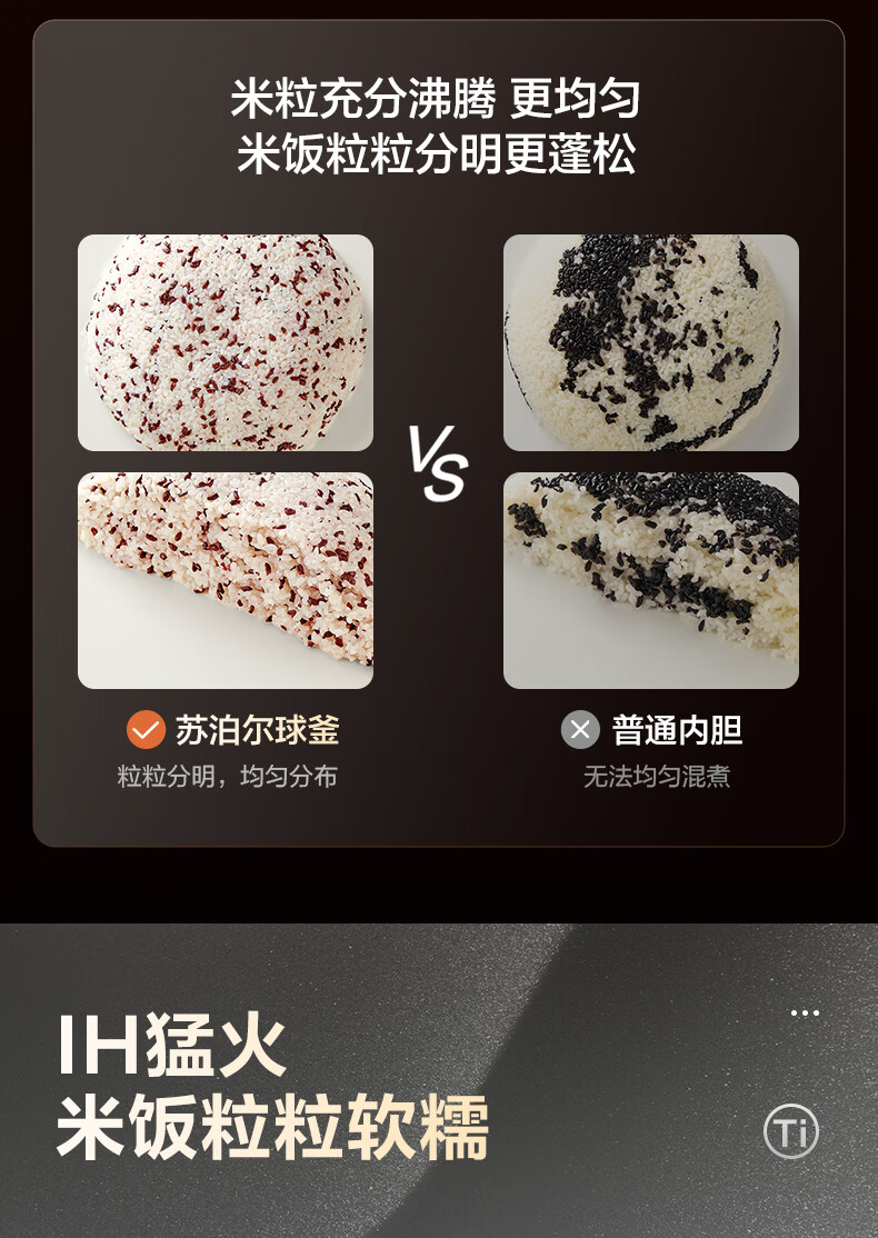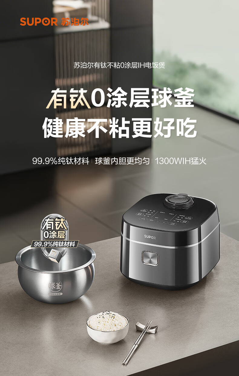 苏泊尔(SUPOR)电饭煲有钛0涂层IH加热家用4升大容量3-8人多功能316L无涂层电饭锅 有钛0涂层内胆 4L