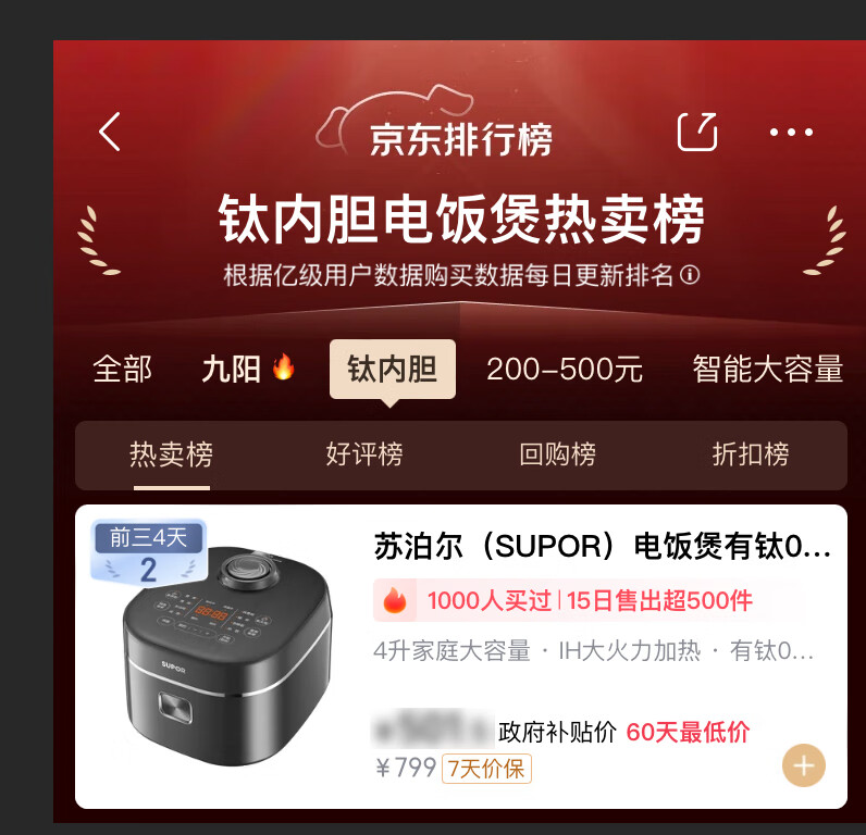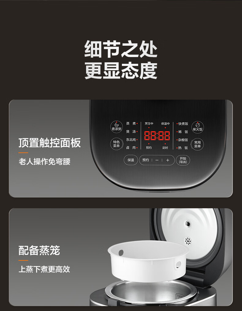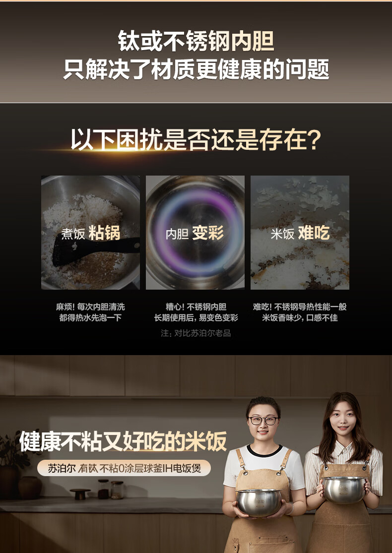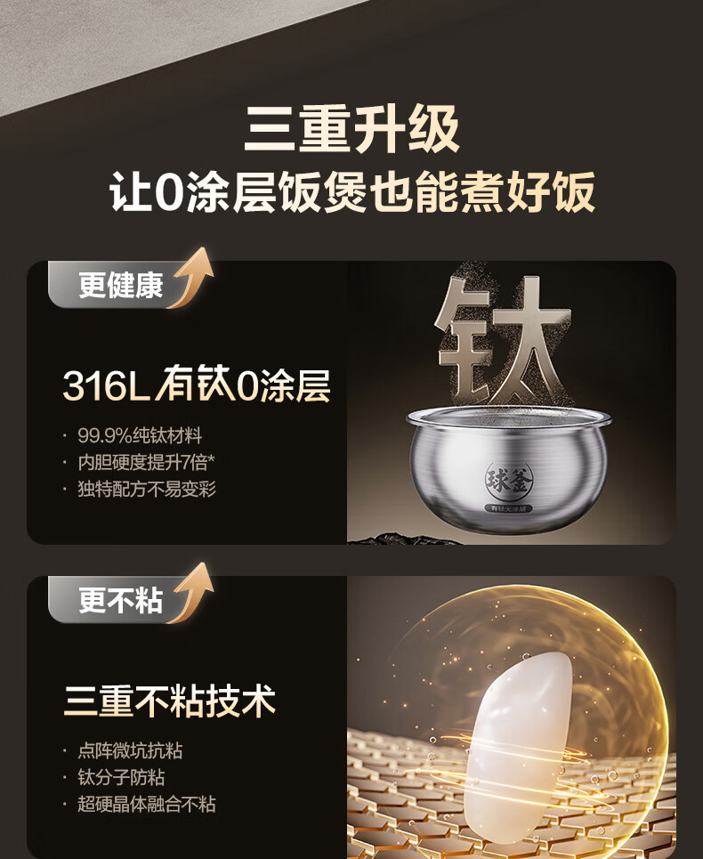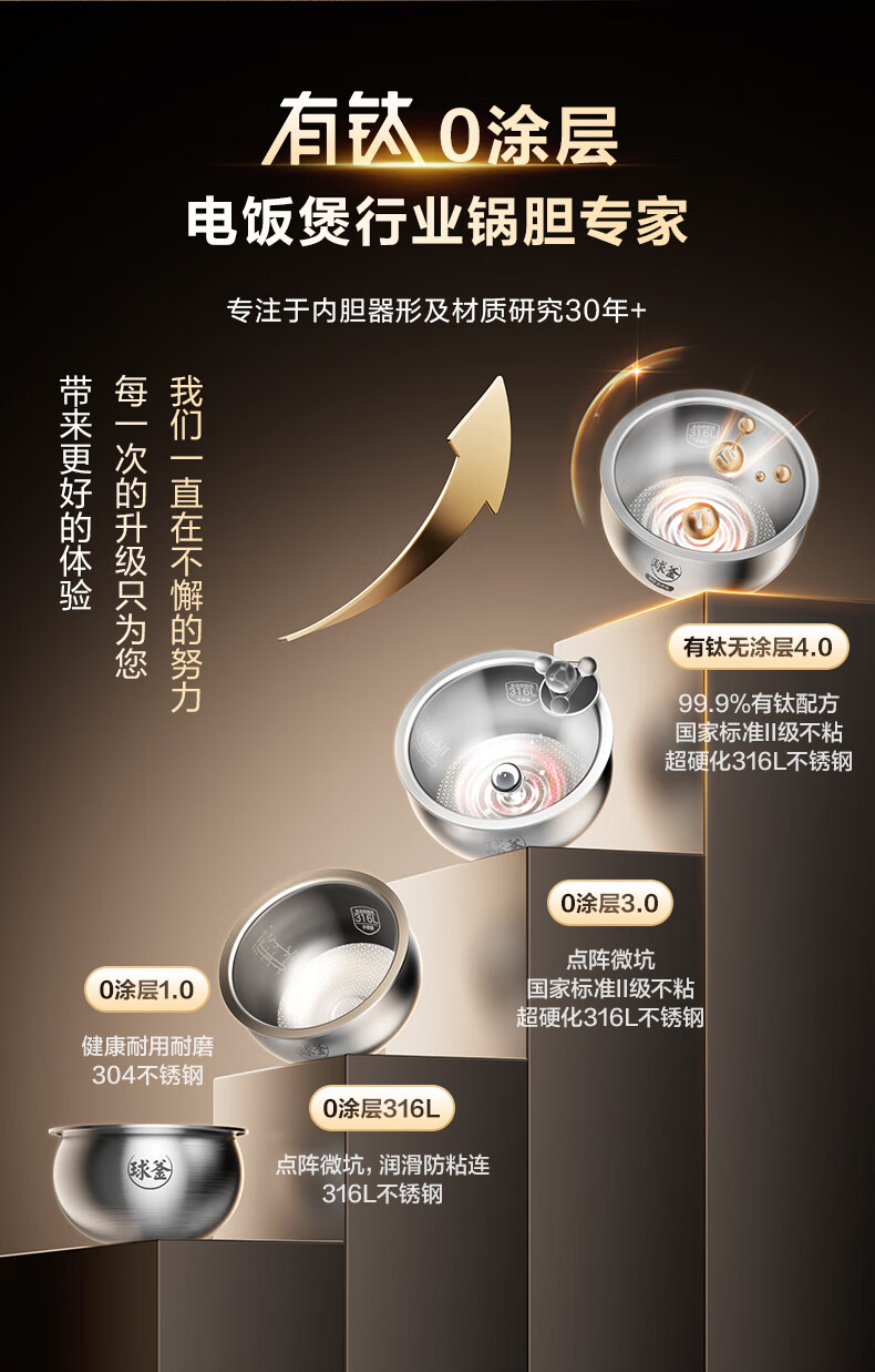 苏泊尔(SUPOR)电饭煲有钛0涂层IH加热家用4升大容量3-8人多功能316L无涂层电饭锅 有钛0涂层内胆 4L