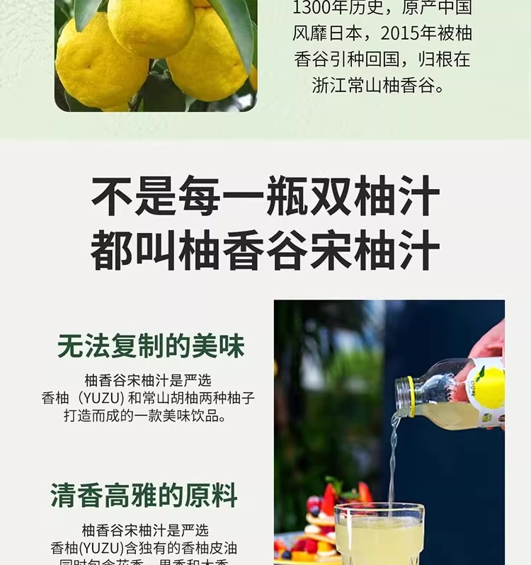 柚香谷宋柚汁双柚汁复合果汁饮料300g*10瓶 果汁柚子汁果蔬汁整箱