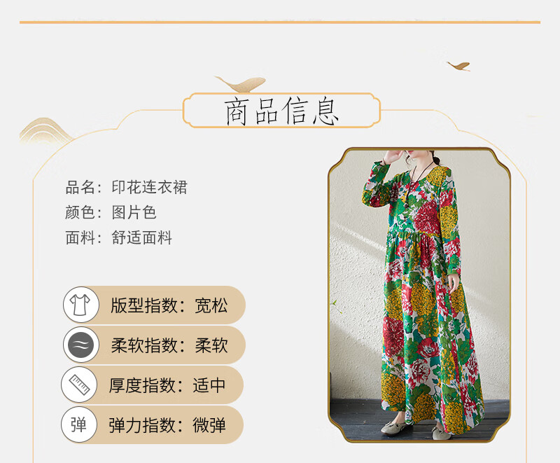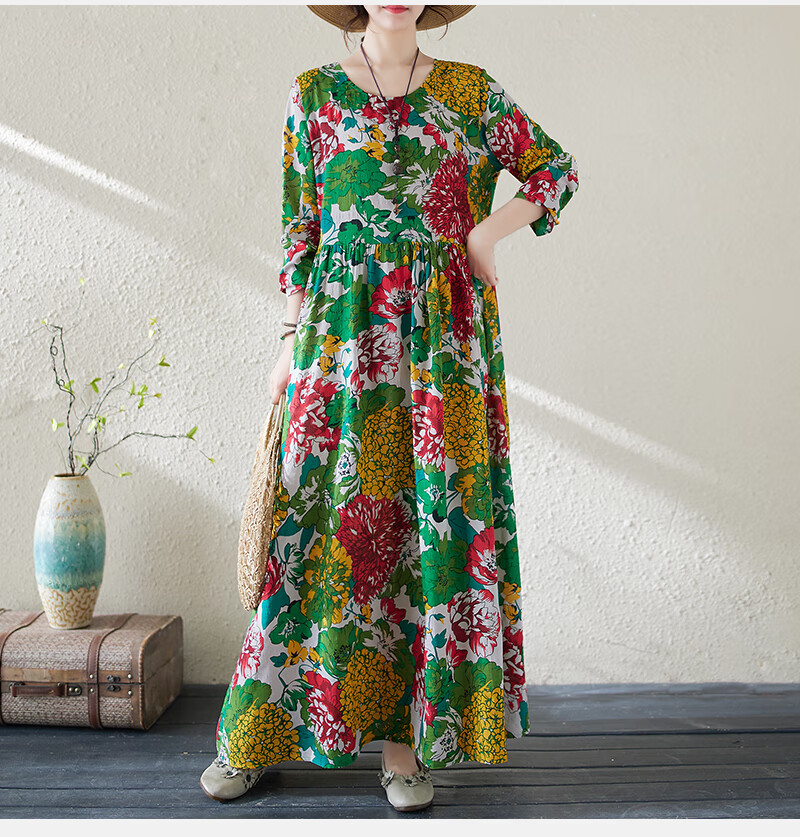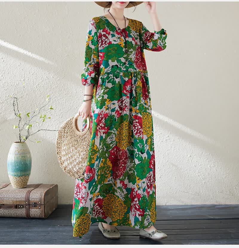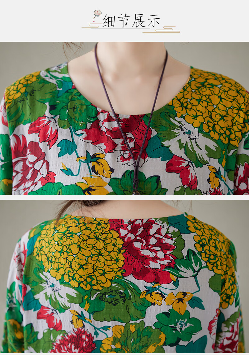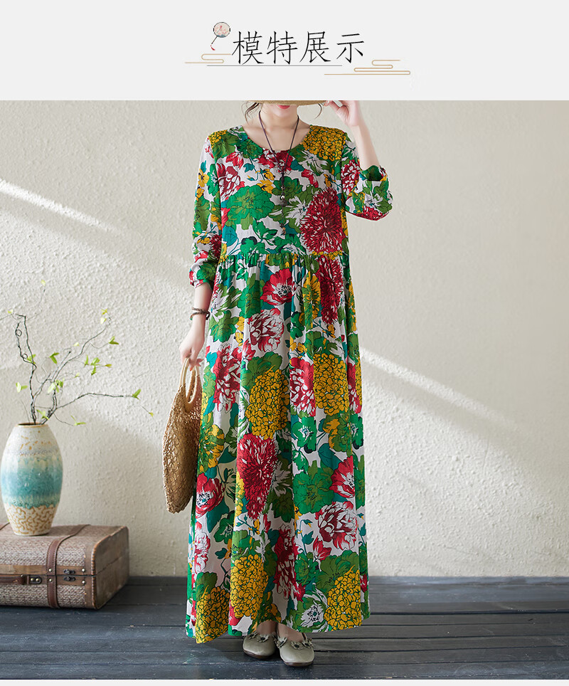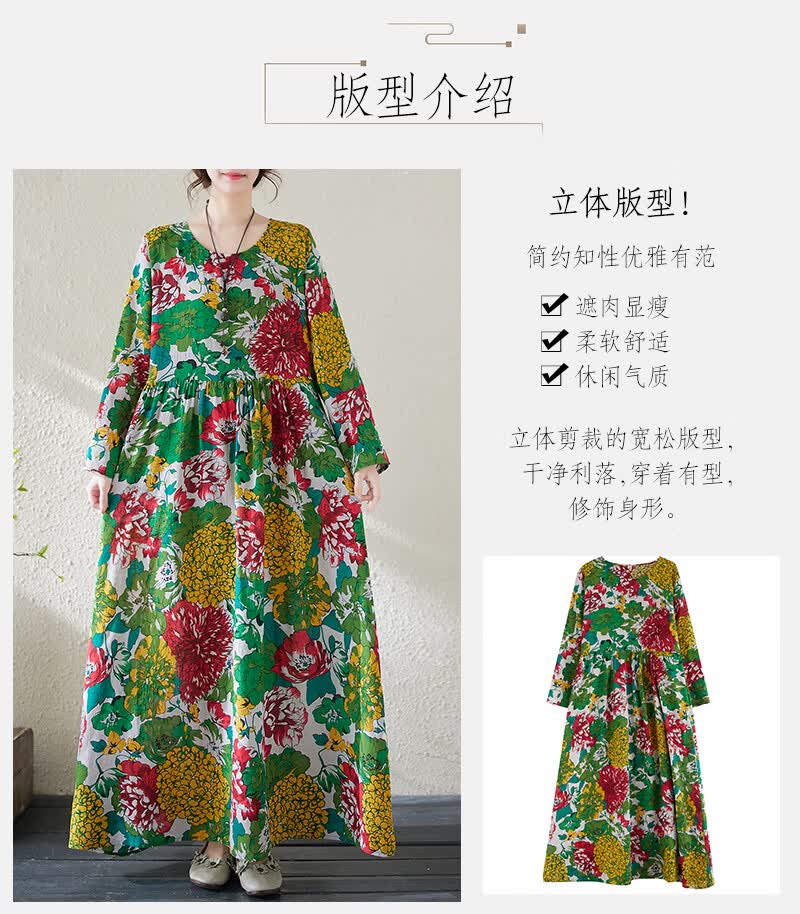 简当(JIANDANG)大码女装春季胖MM花色度假风旅游圆领复古气质长裙遮肉连衣裙1018 绿色大花-1018 L 【120-140斤】
