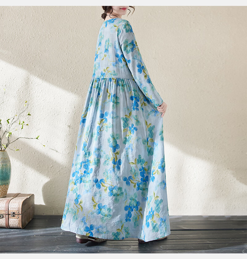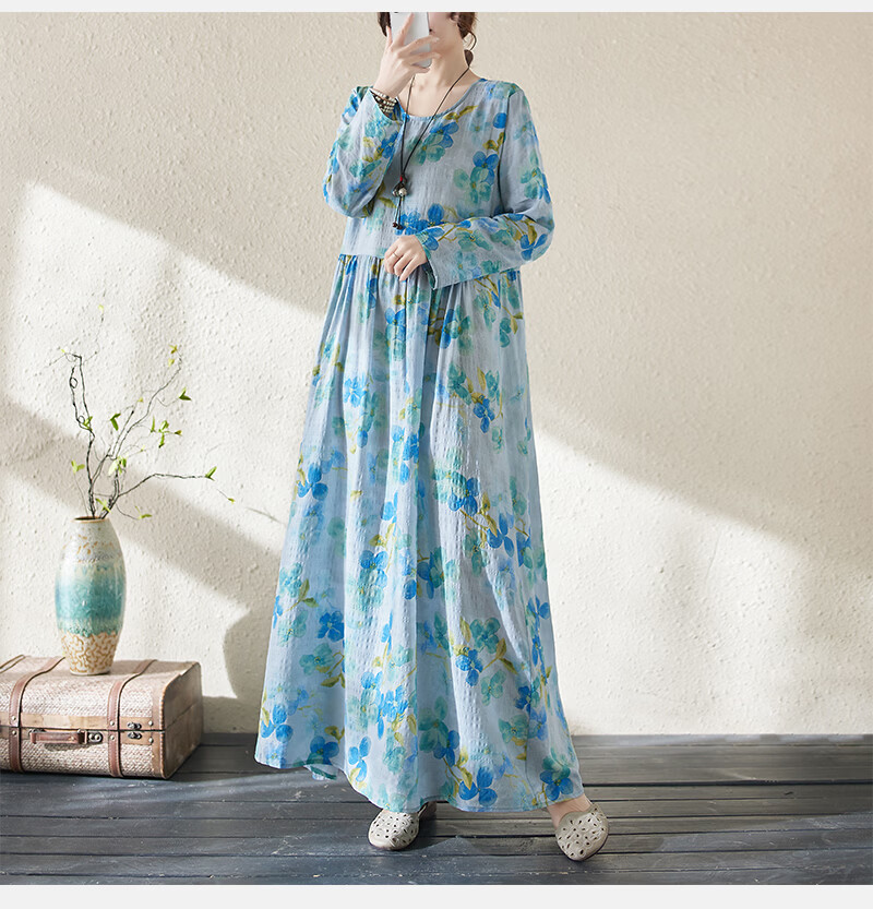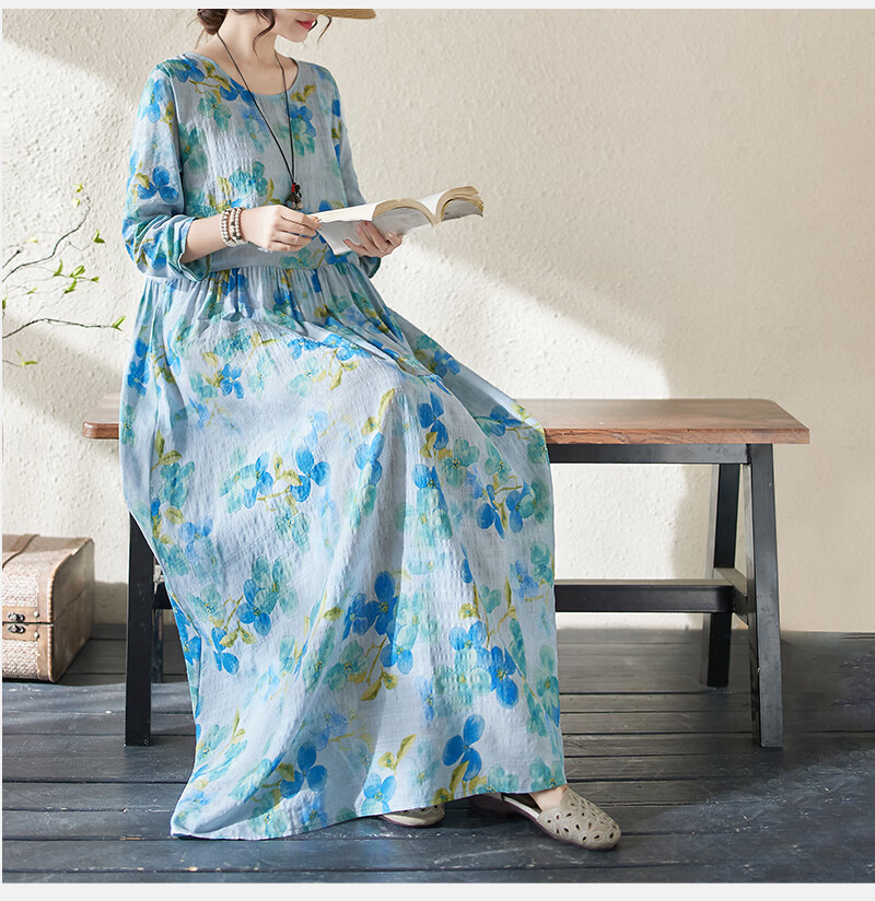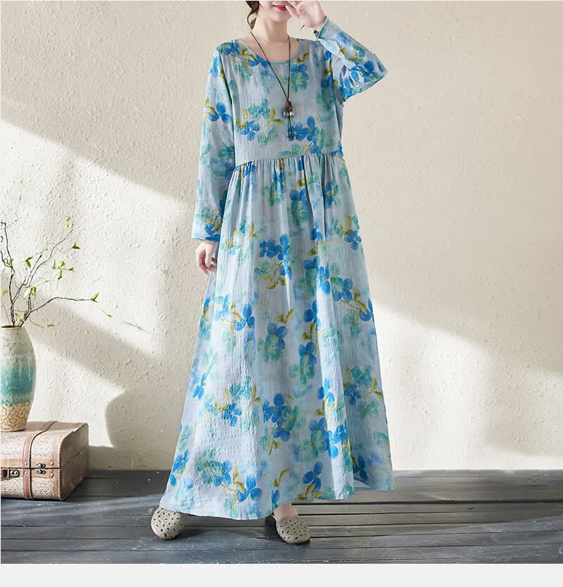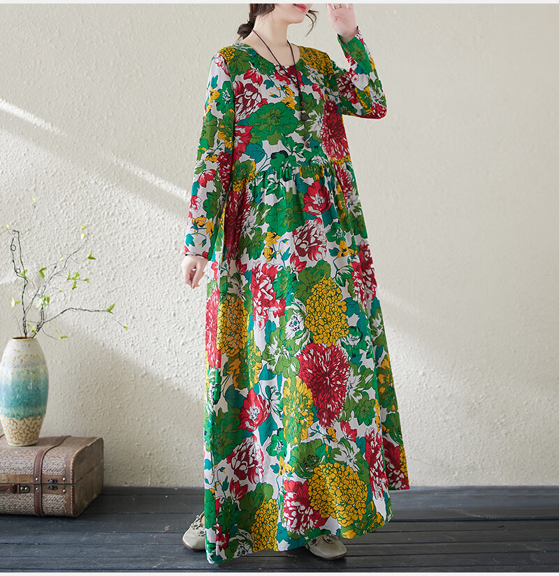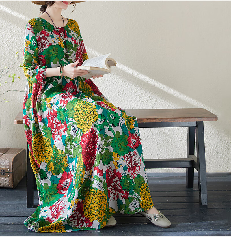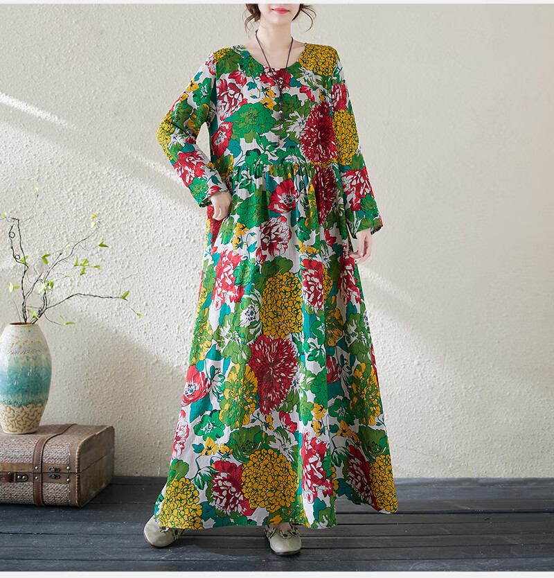 简当(JIANDANG)大码女装春季胖MM花色度假风旅游圆领复古气质长裙遮肉连衣裙1018 绿色大花-1018 L 【120-140斤】